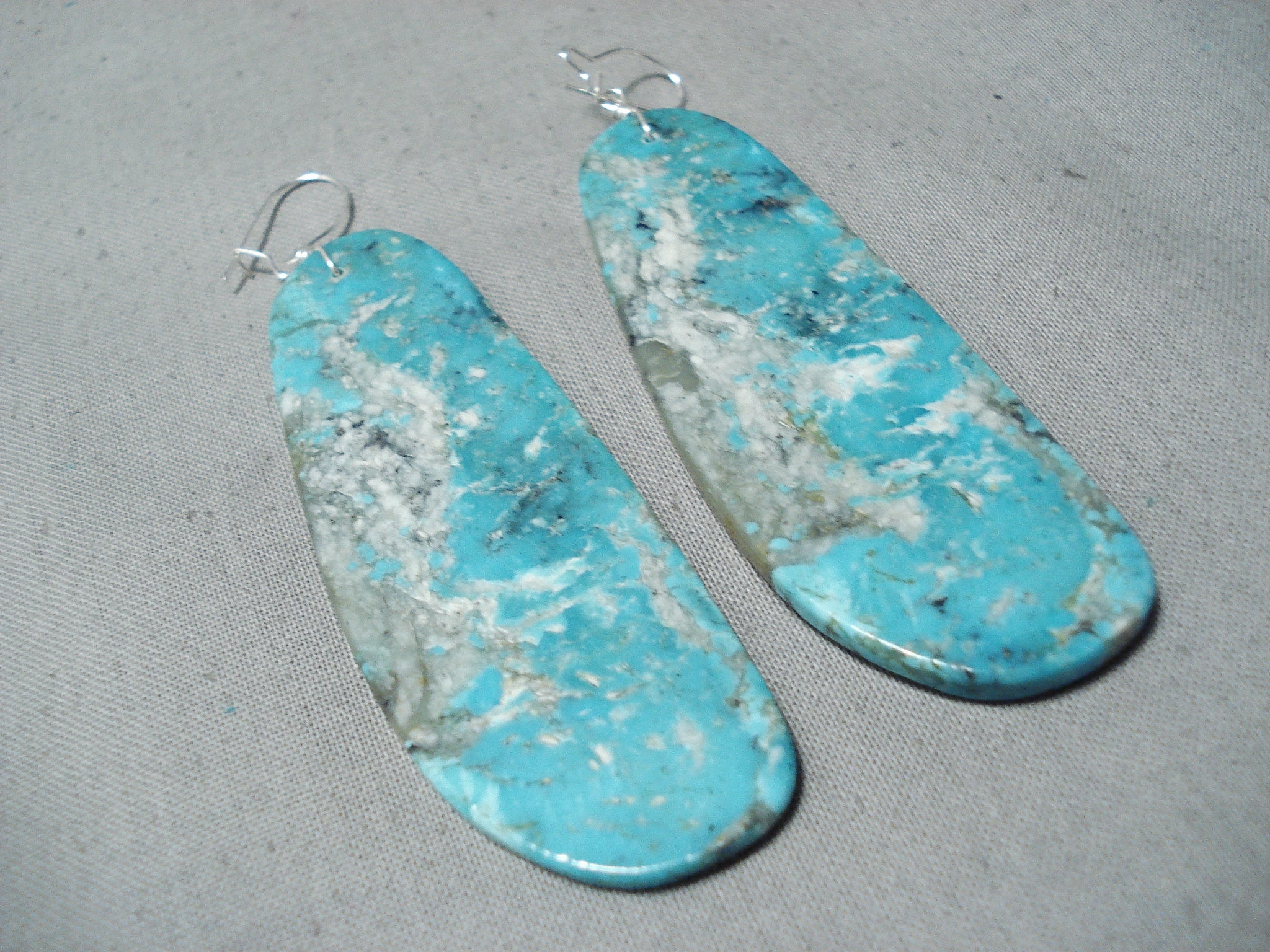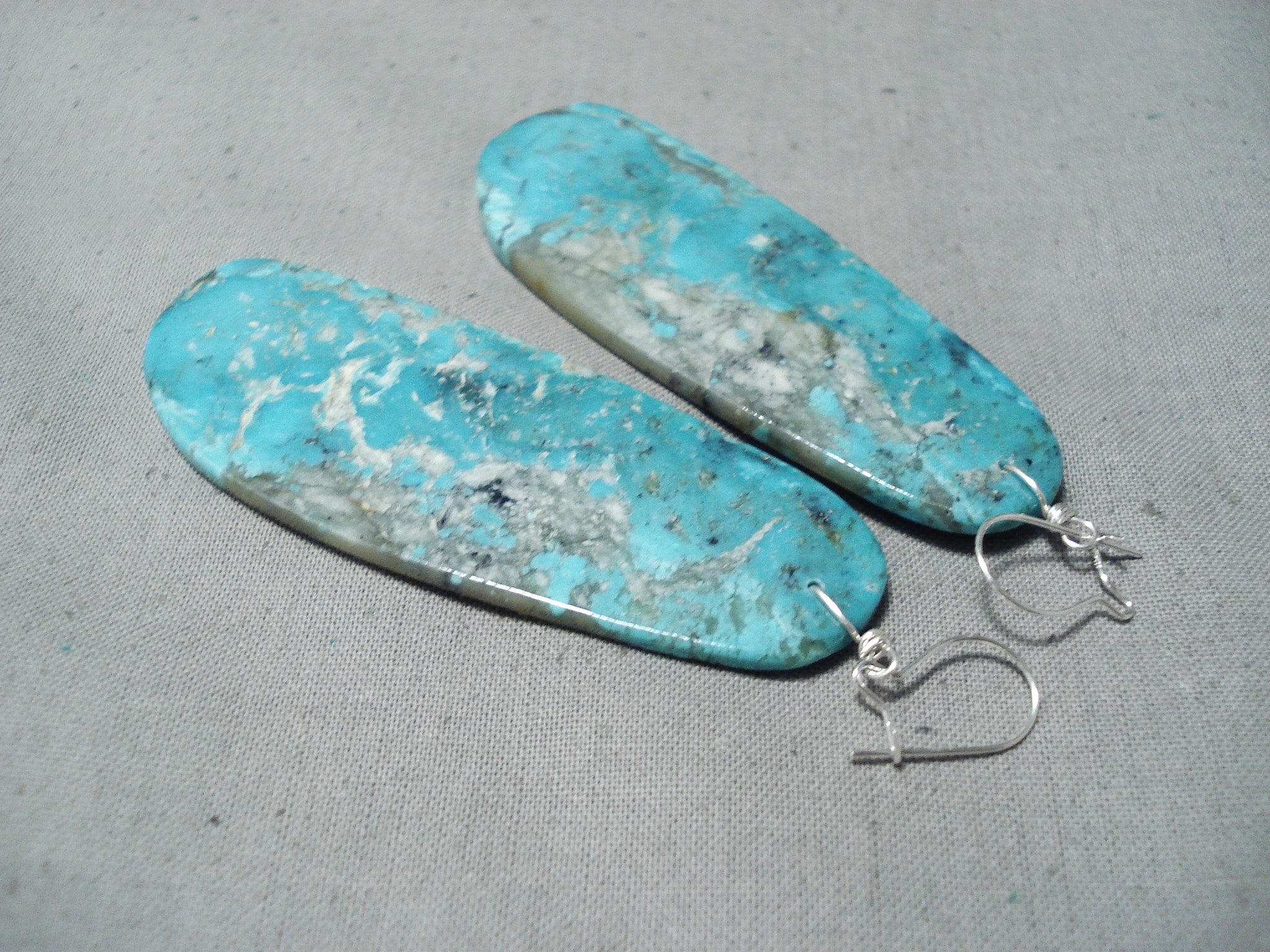 Huge Slab Turquoise Native American Sterling Silver Earrings