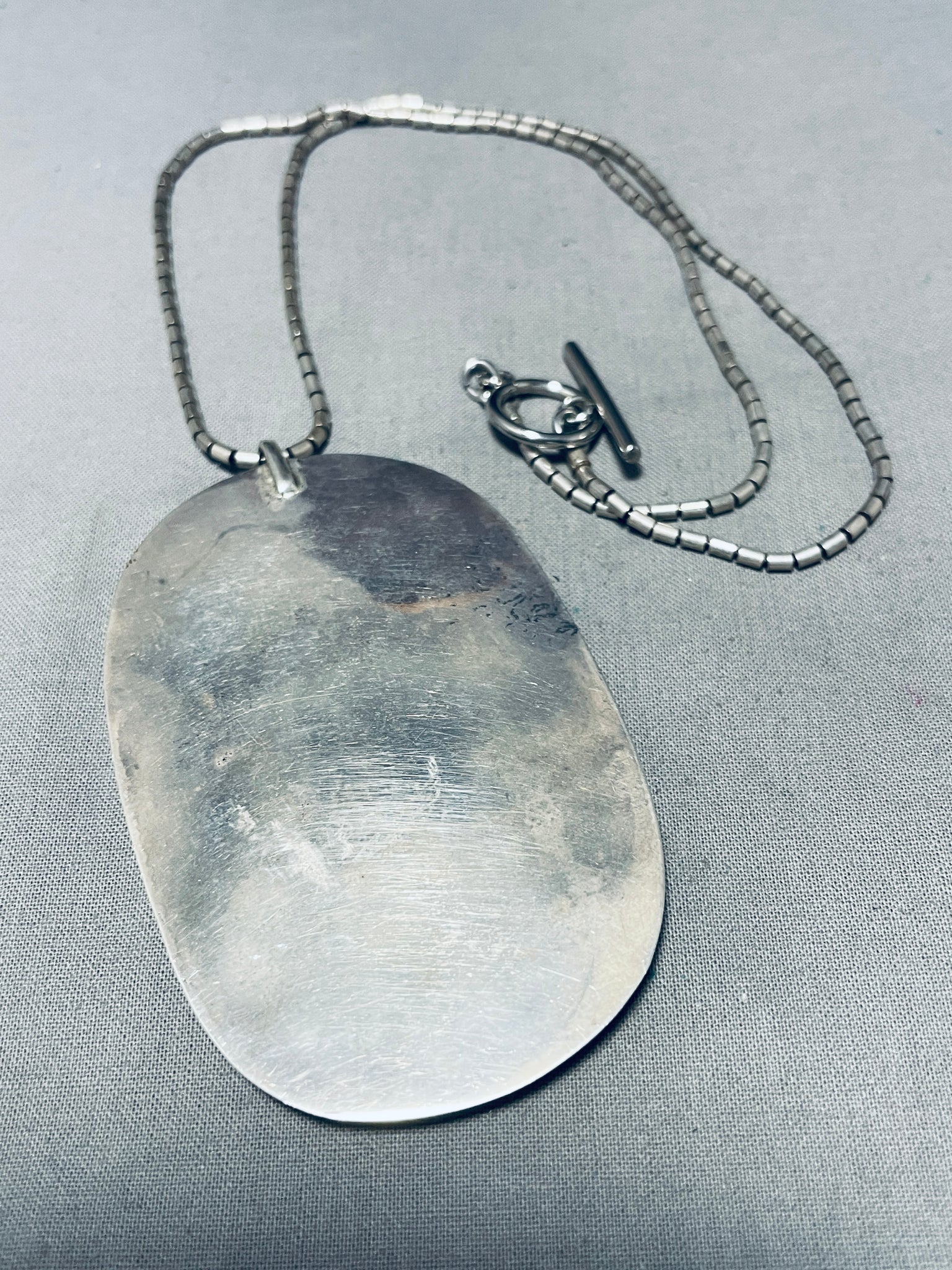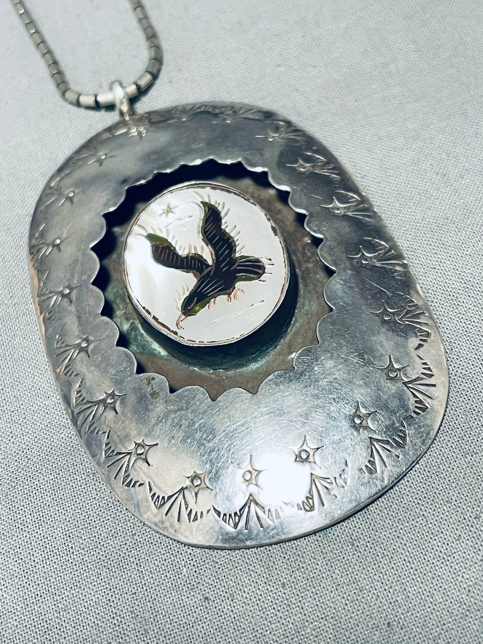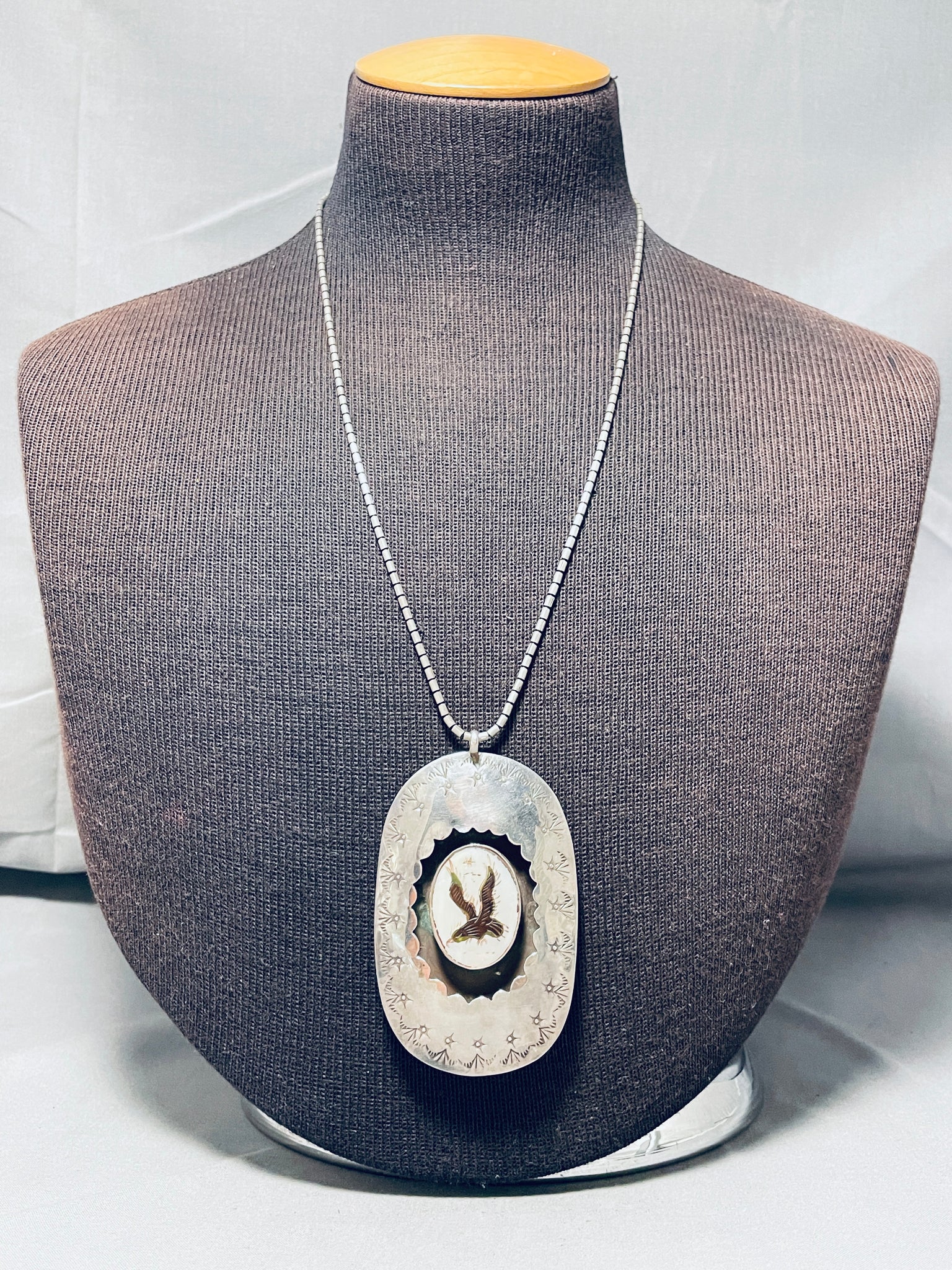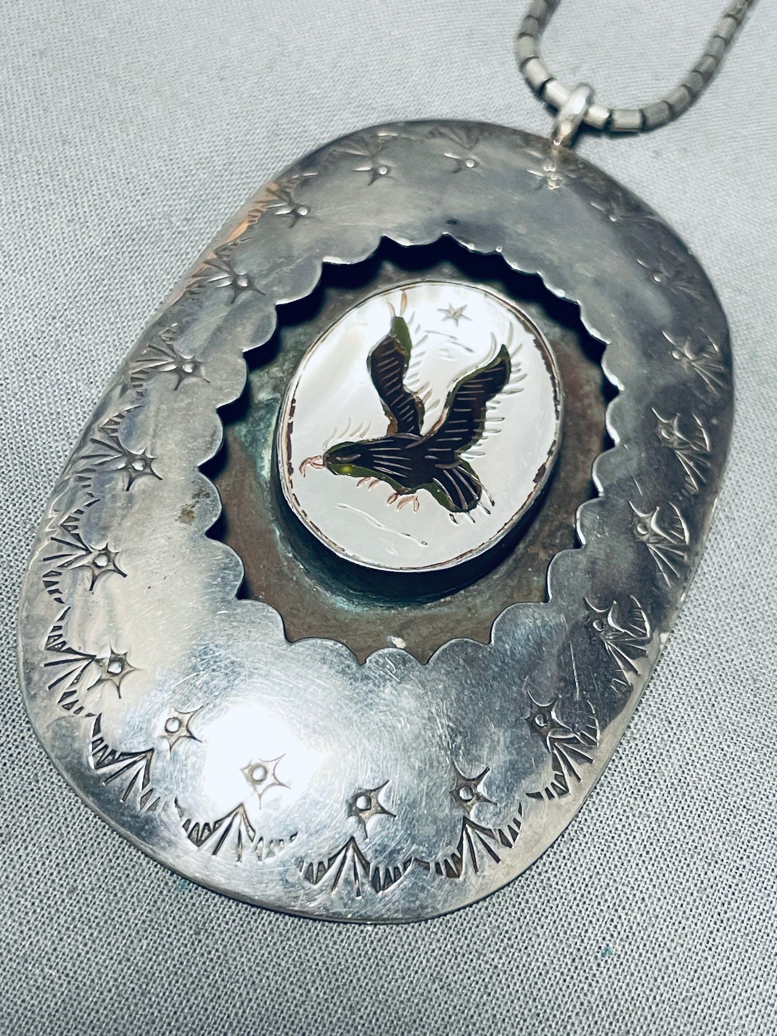 Huge Soaring Bird Vintage Native American Navajo Sterling Silver Necklace Old
