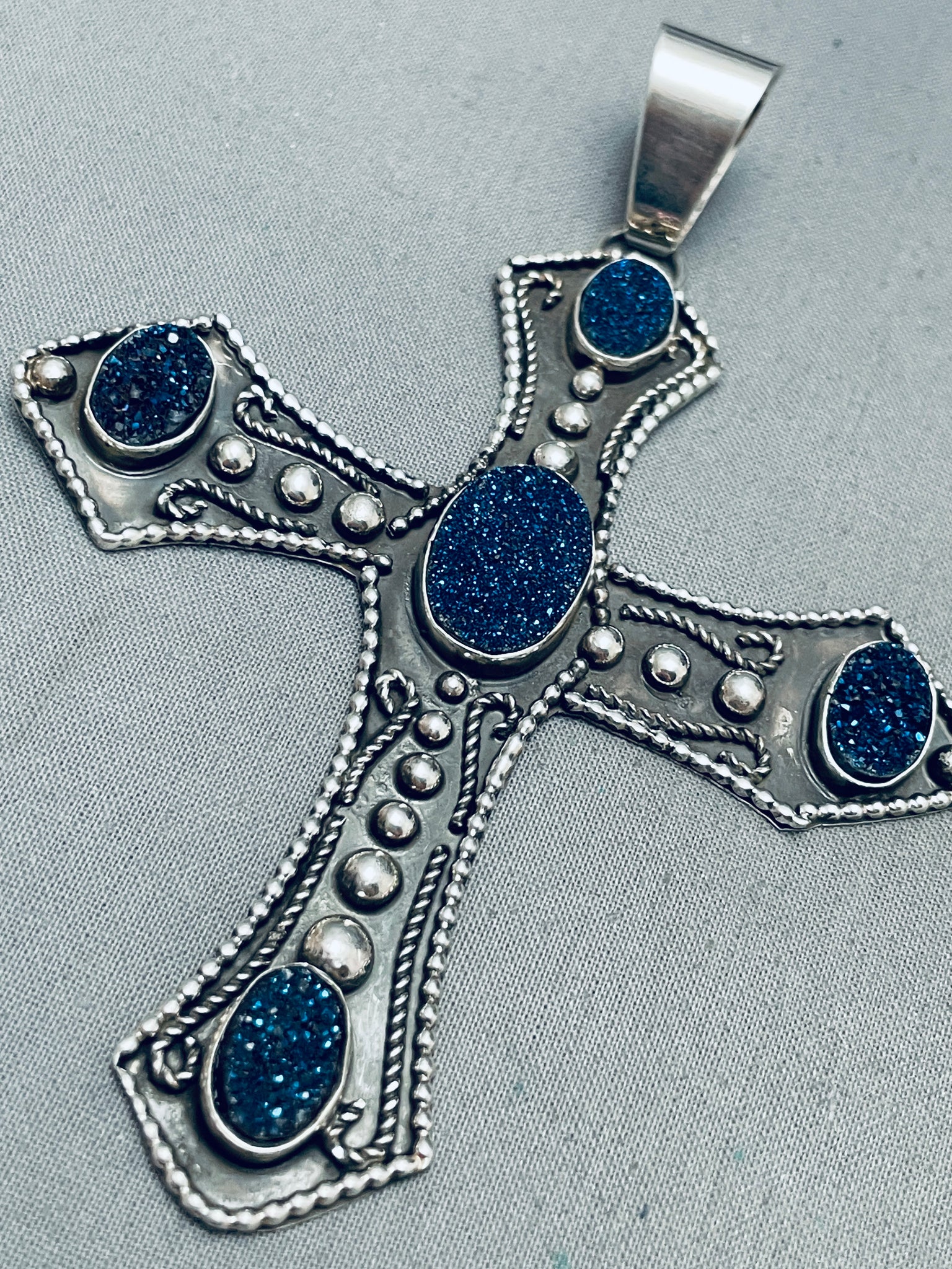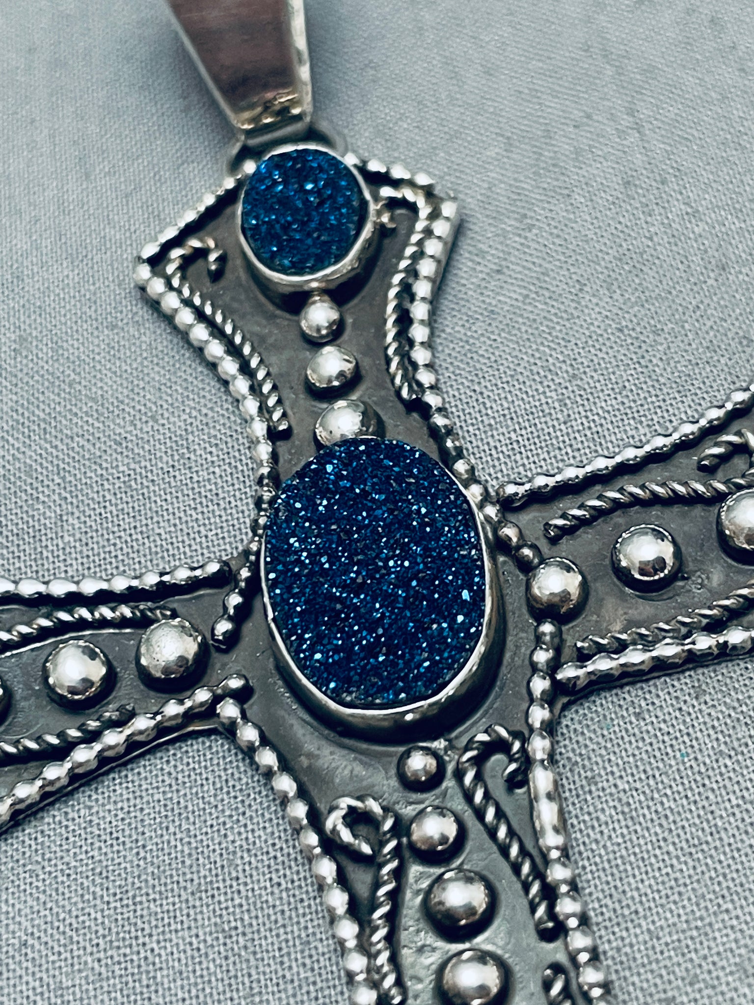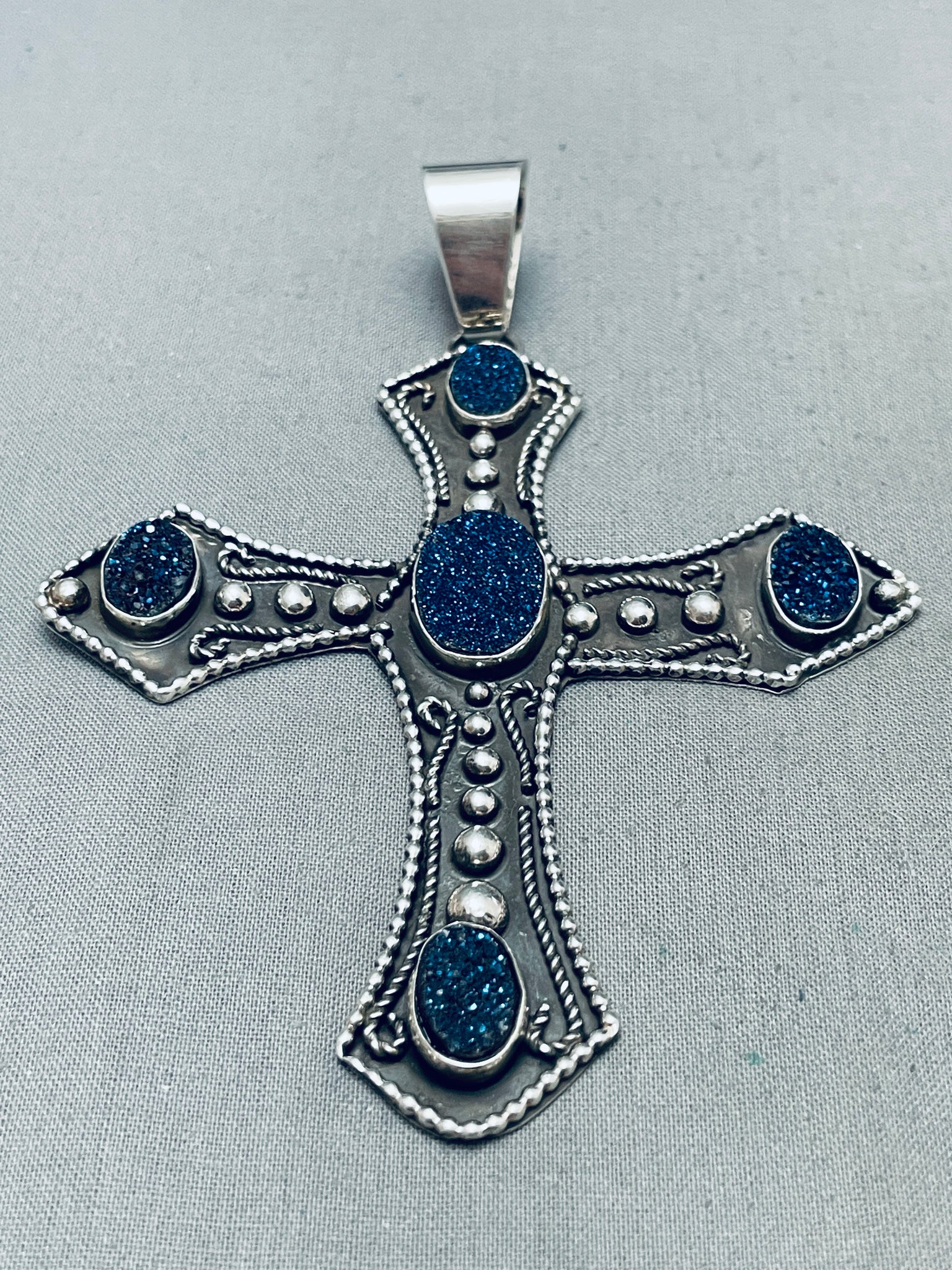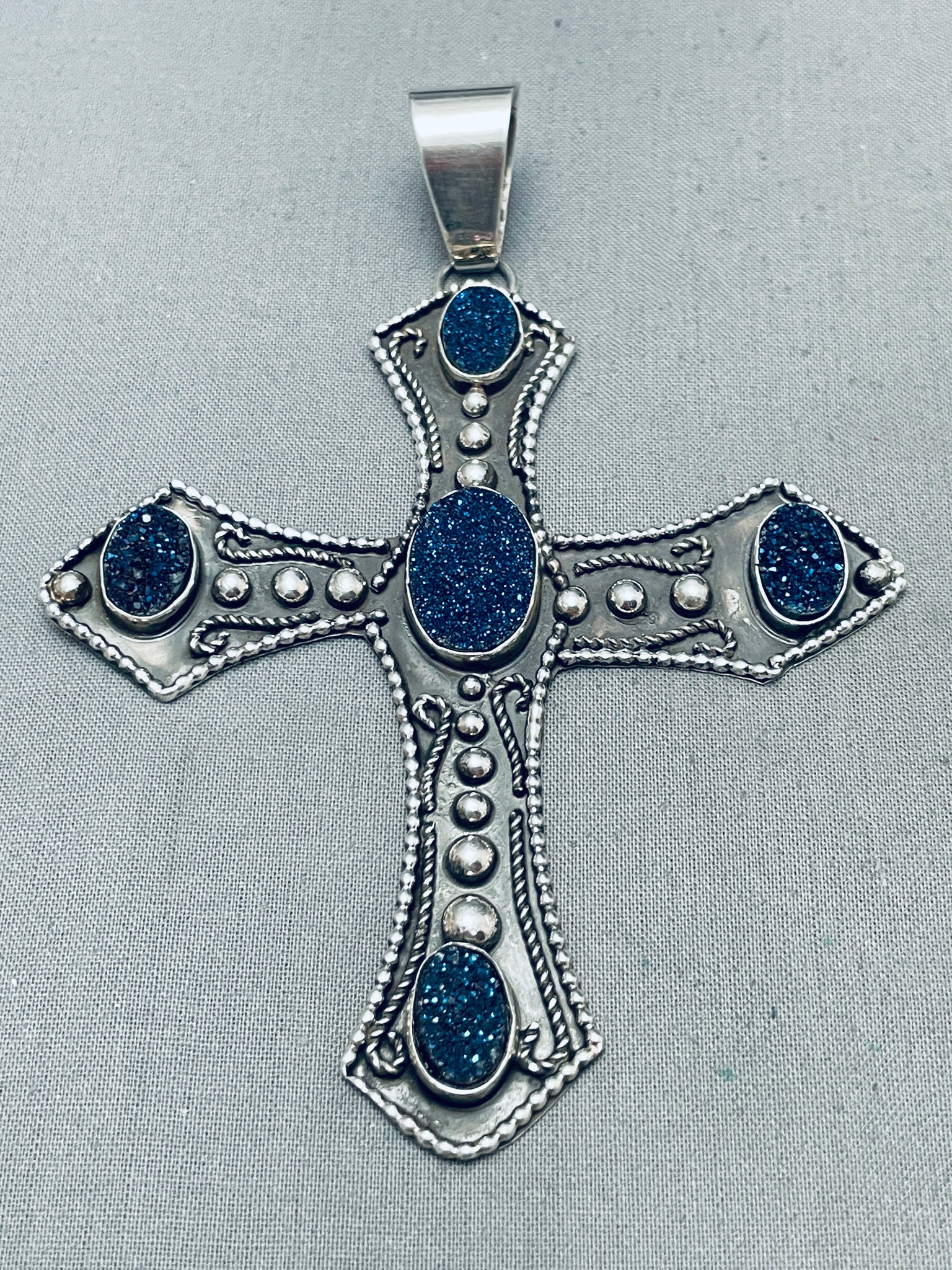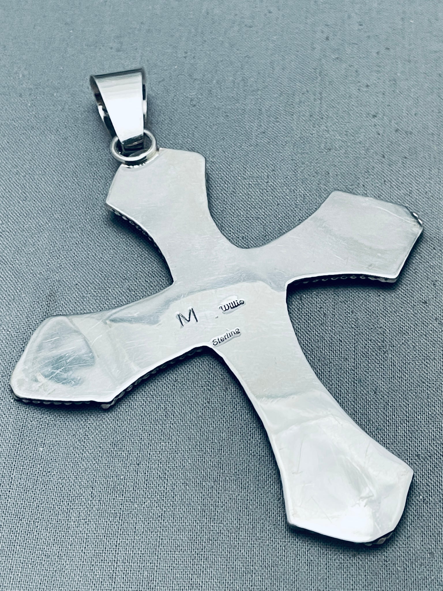 Huge Spiderweb Native American Navajo Sterling Silver Cross Pendant