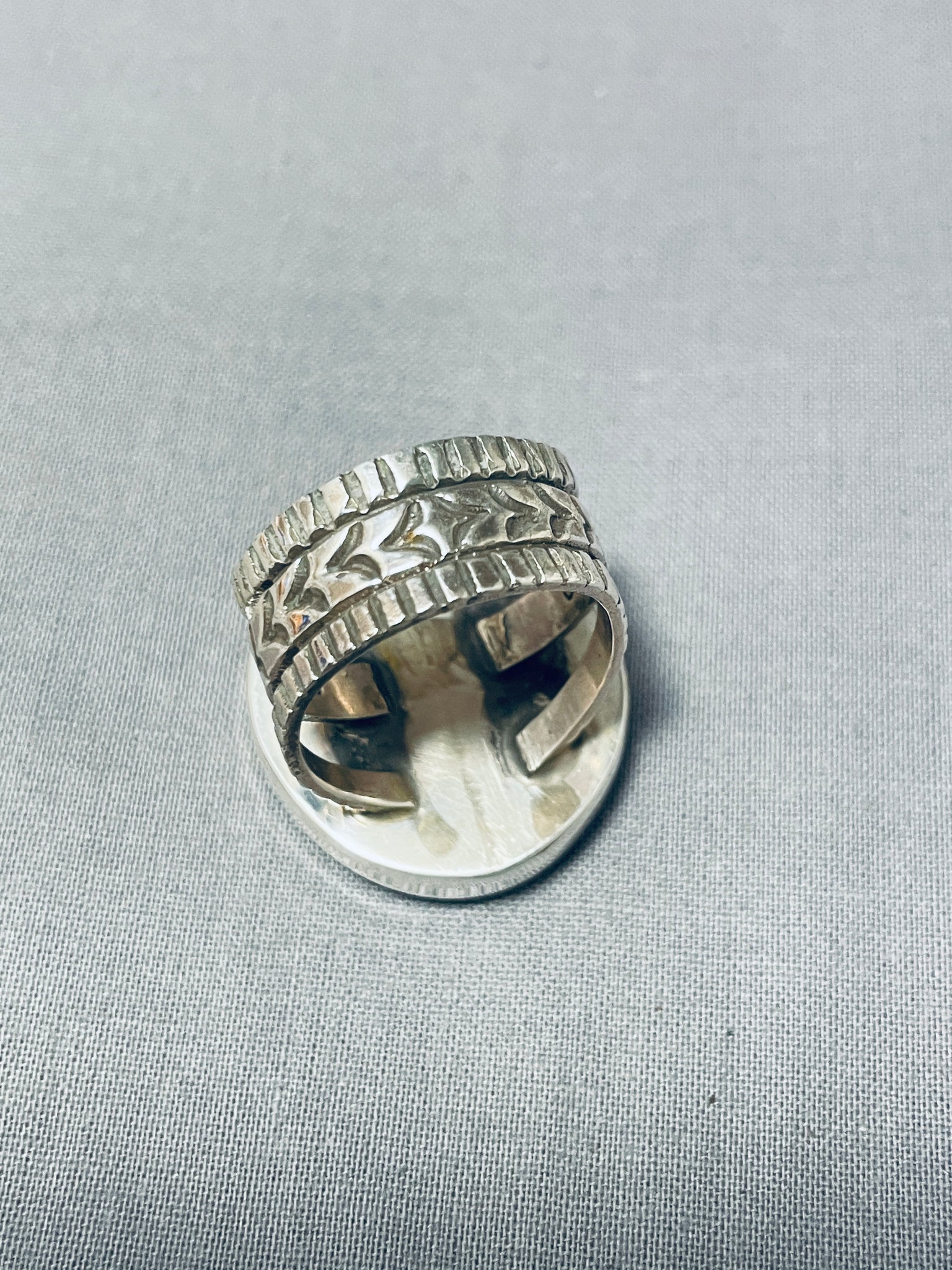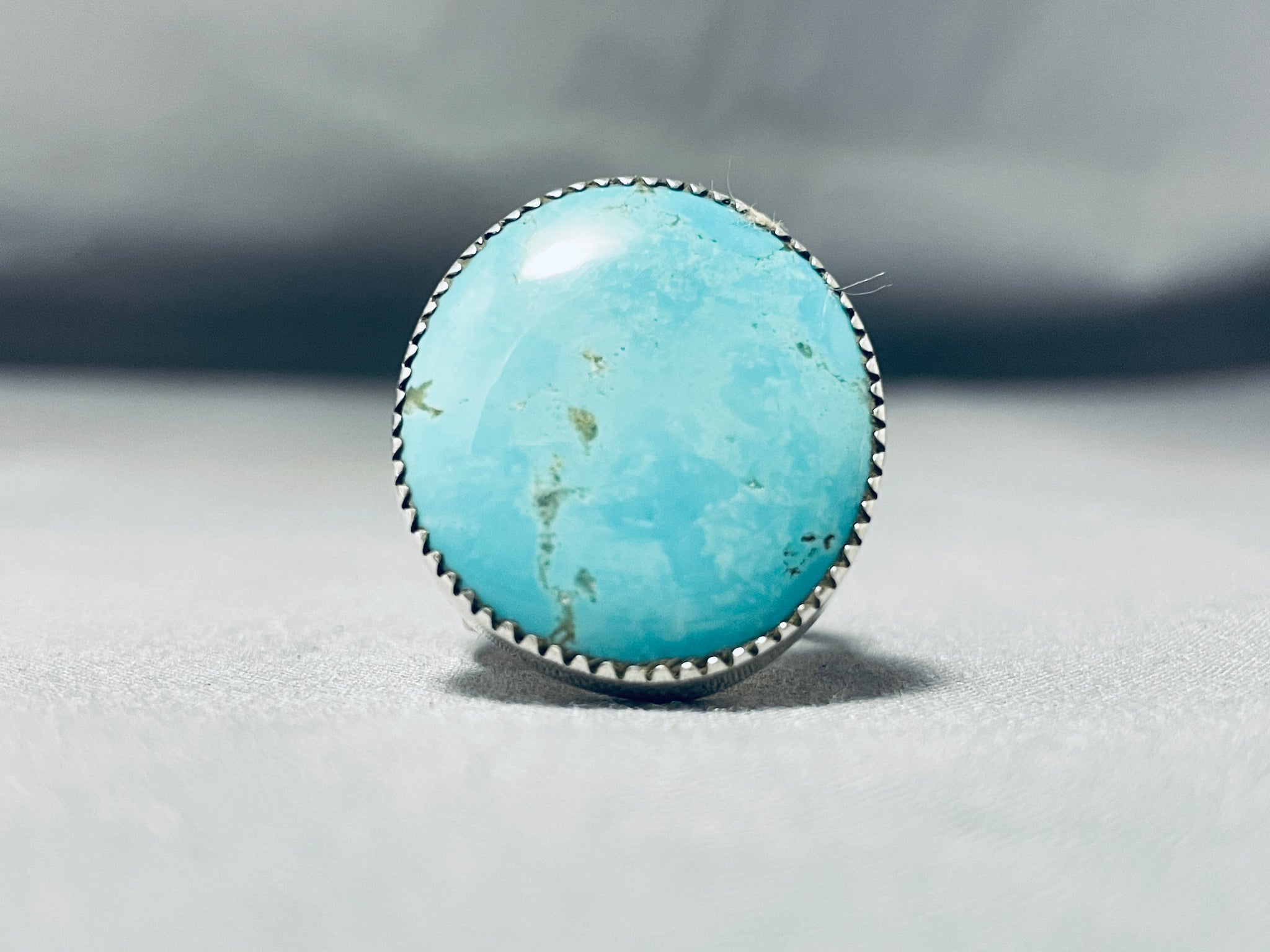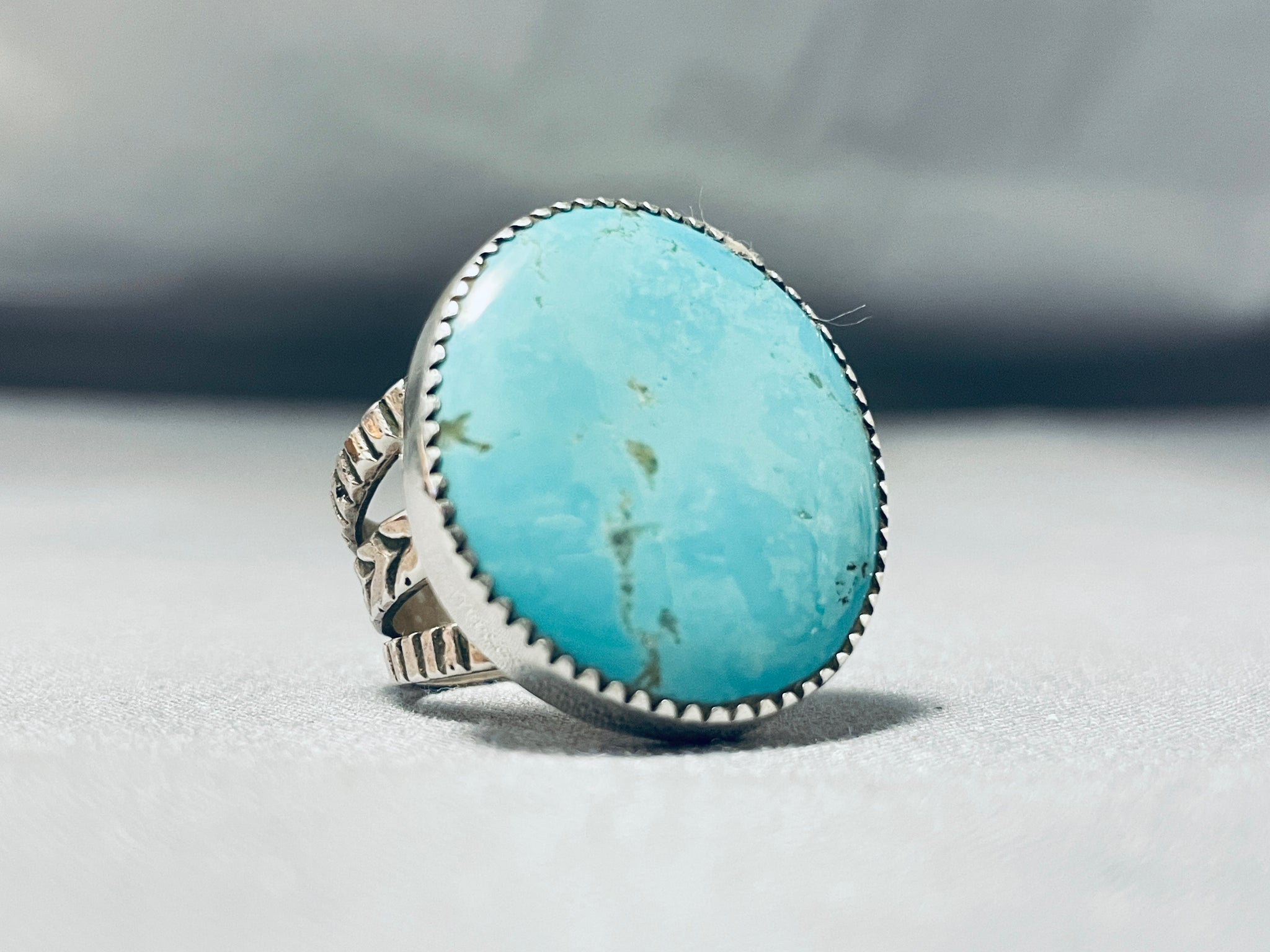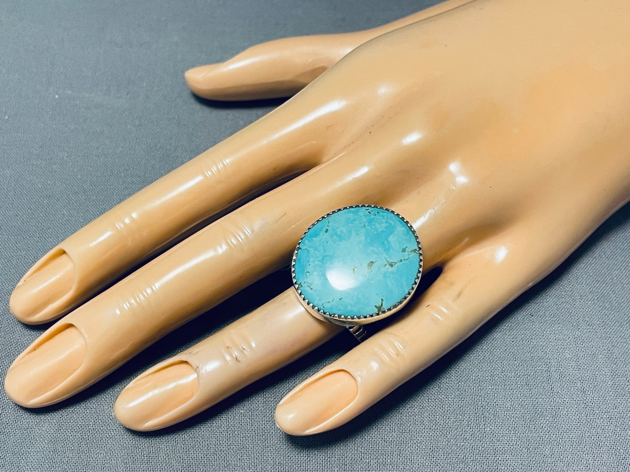 Huge Tsosie Native American Navajo Signed Blue Gem Turquoise Sterling Silver Ring