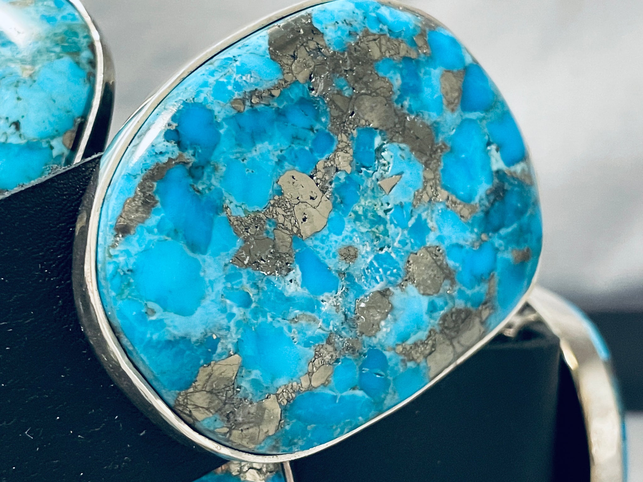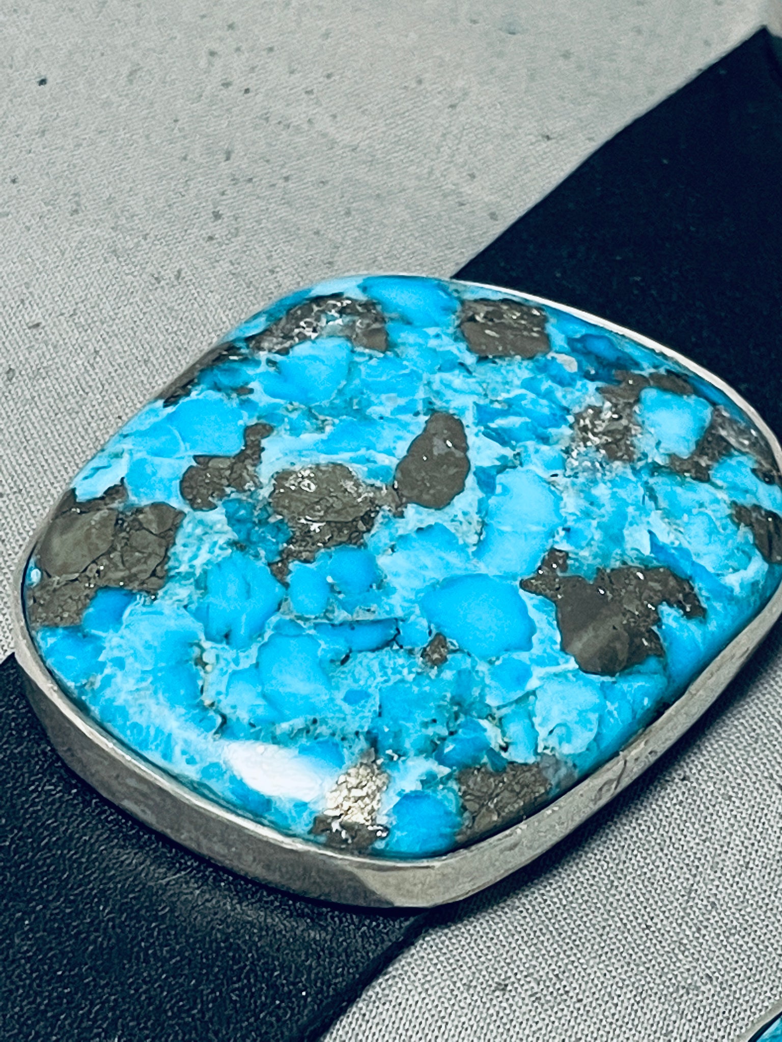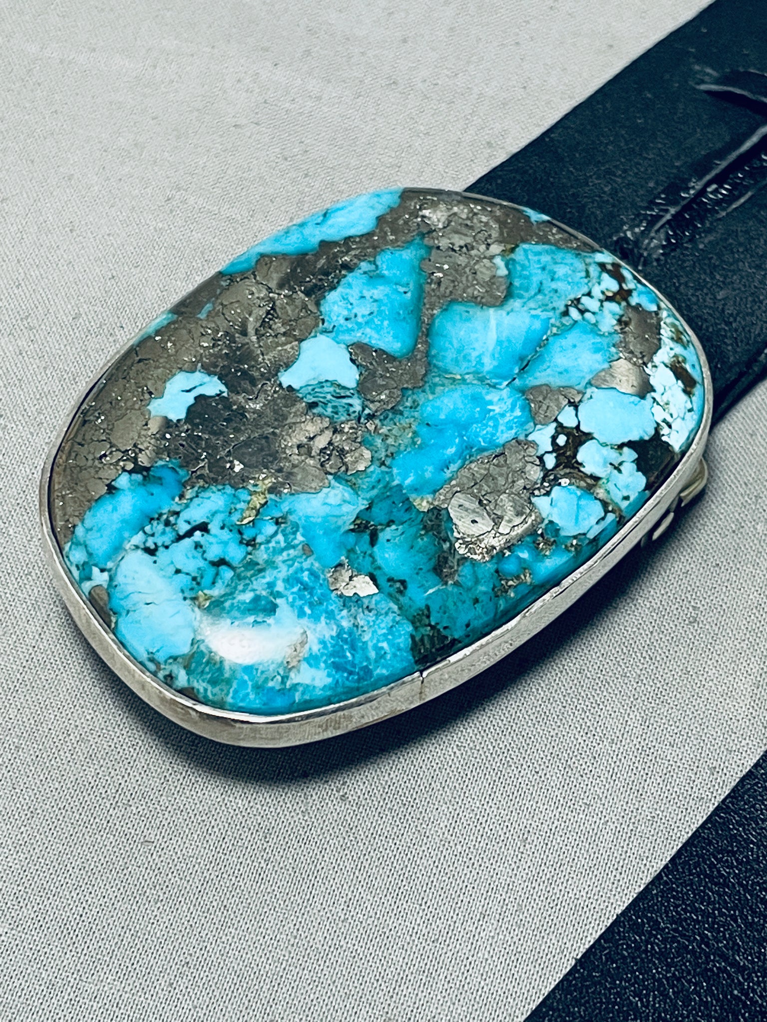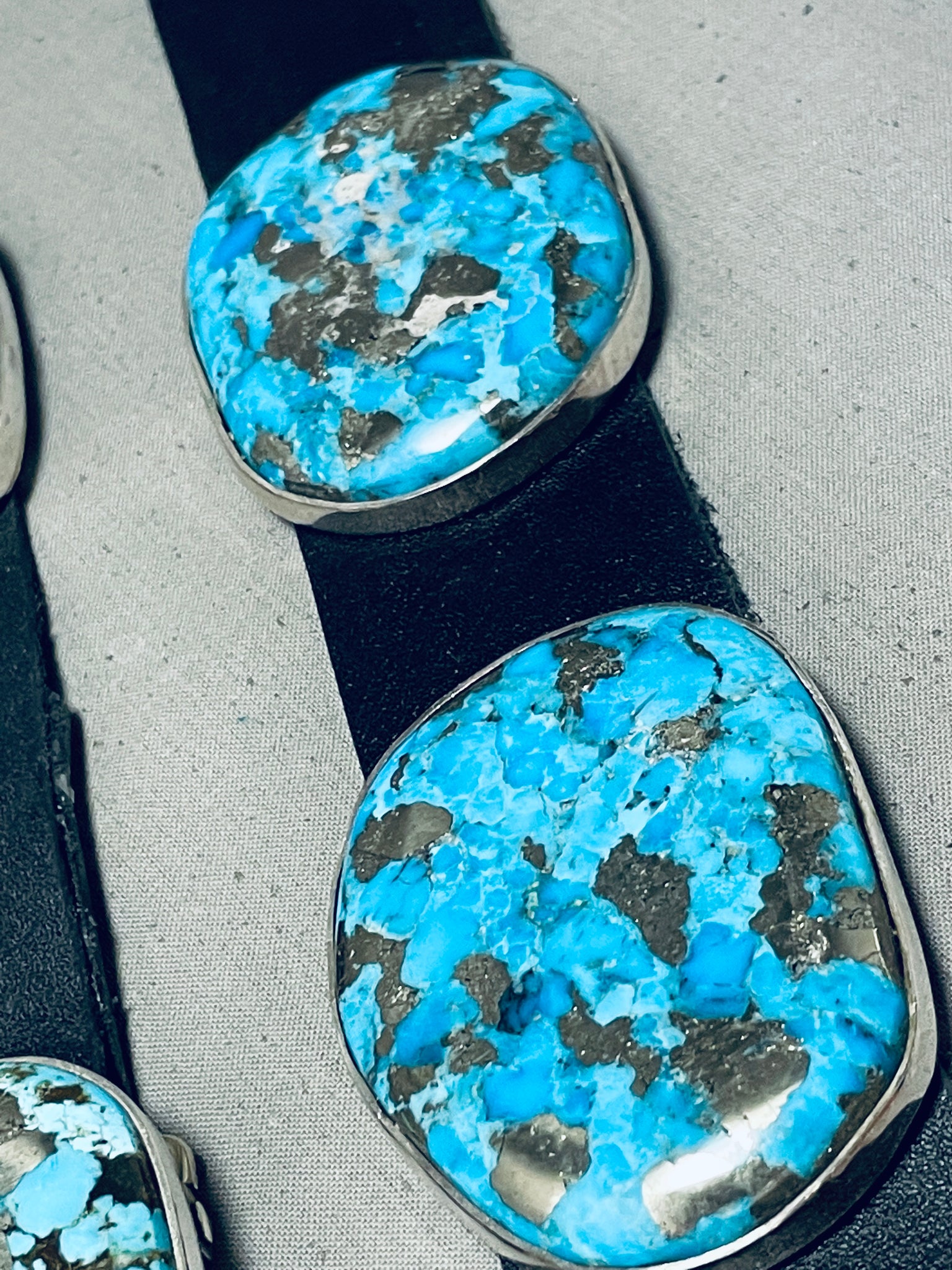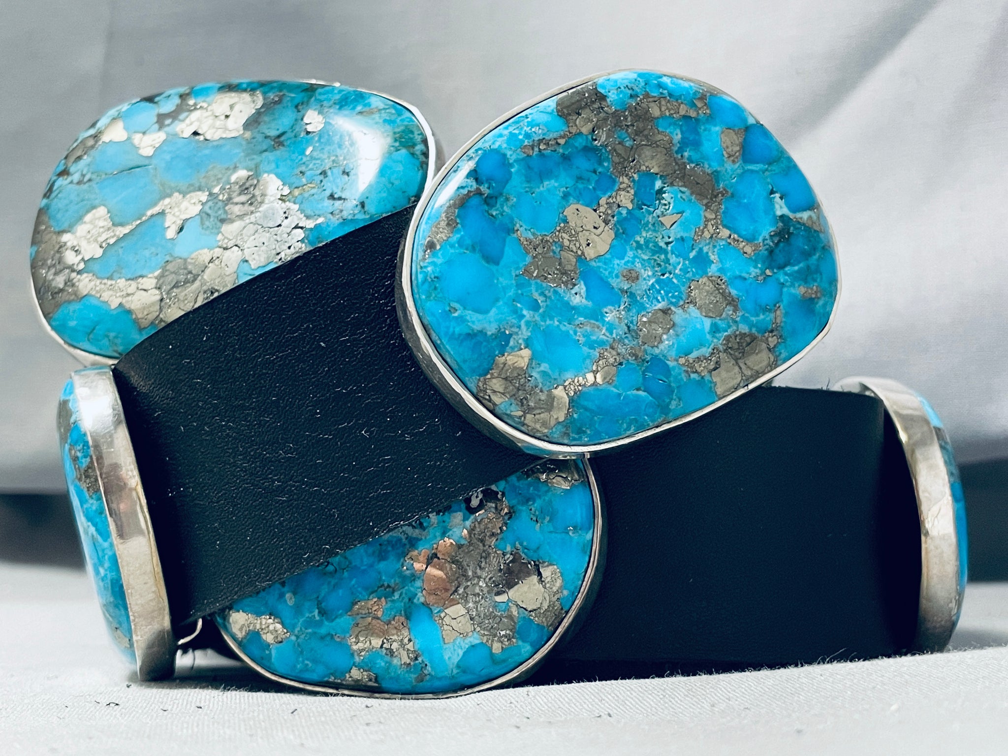 Huge Turquoise Chunk Native American Navajo Sterling Silver Concho Belt Rare!