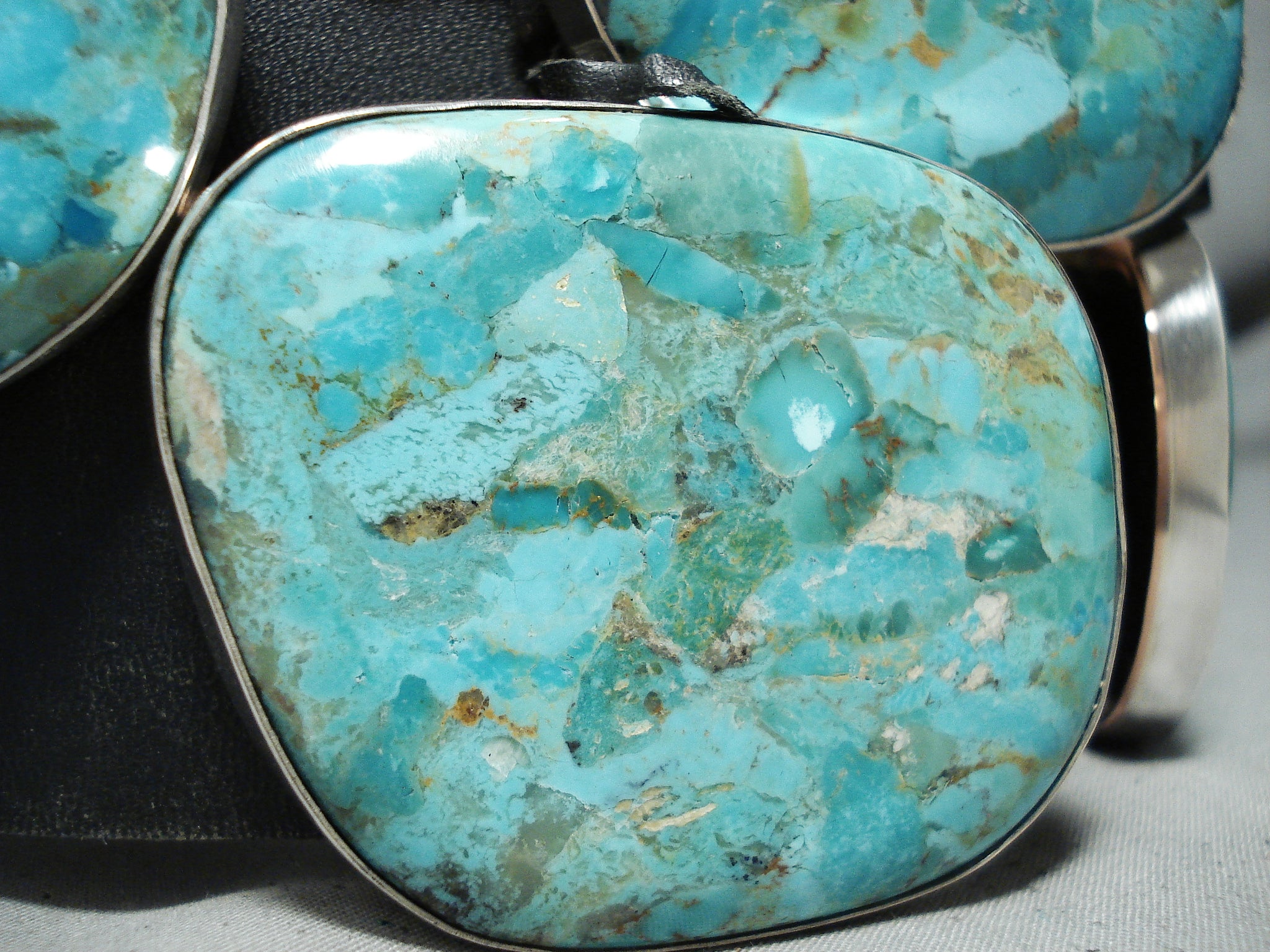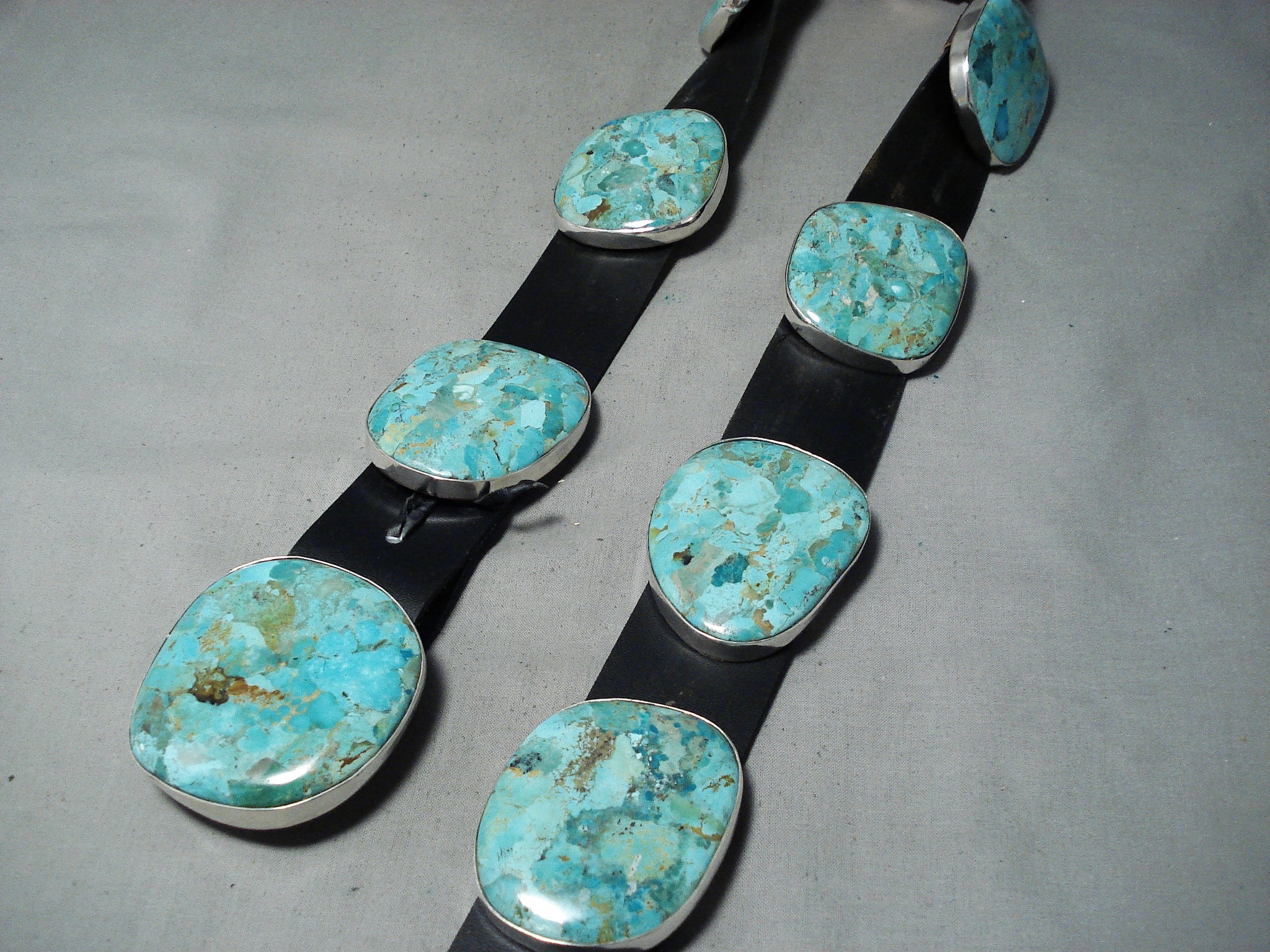 Huge Turquoise Slab Native American Navajo Sterling Silver Heavy Concho Belt