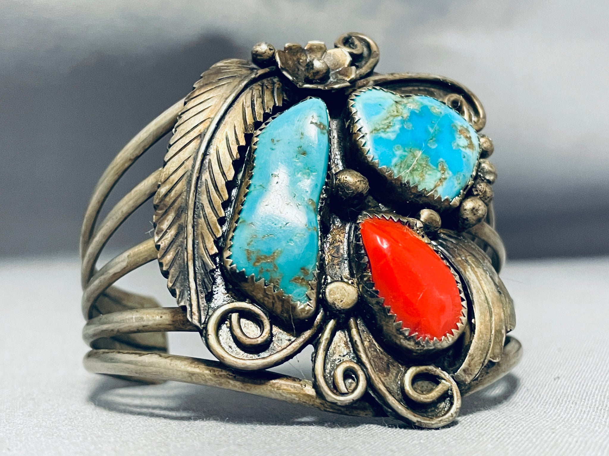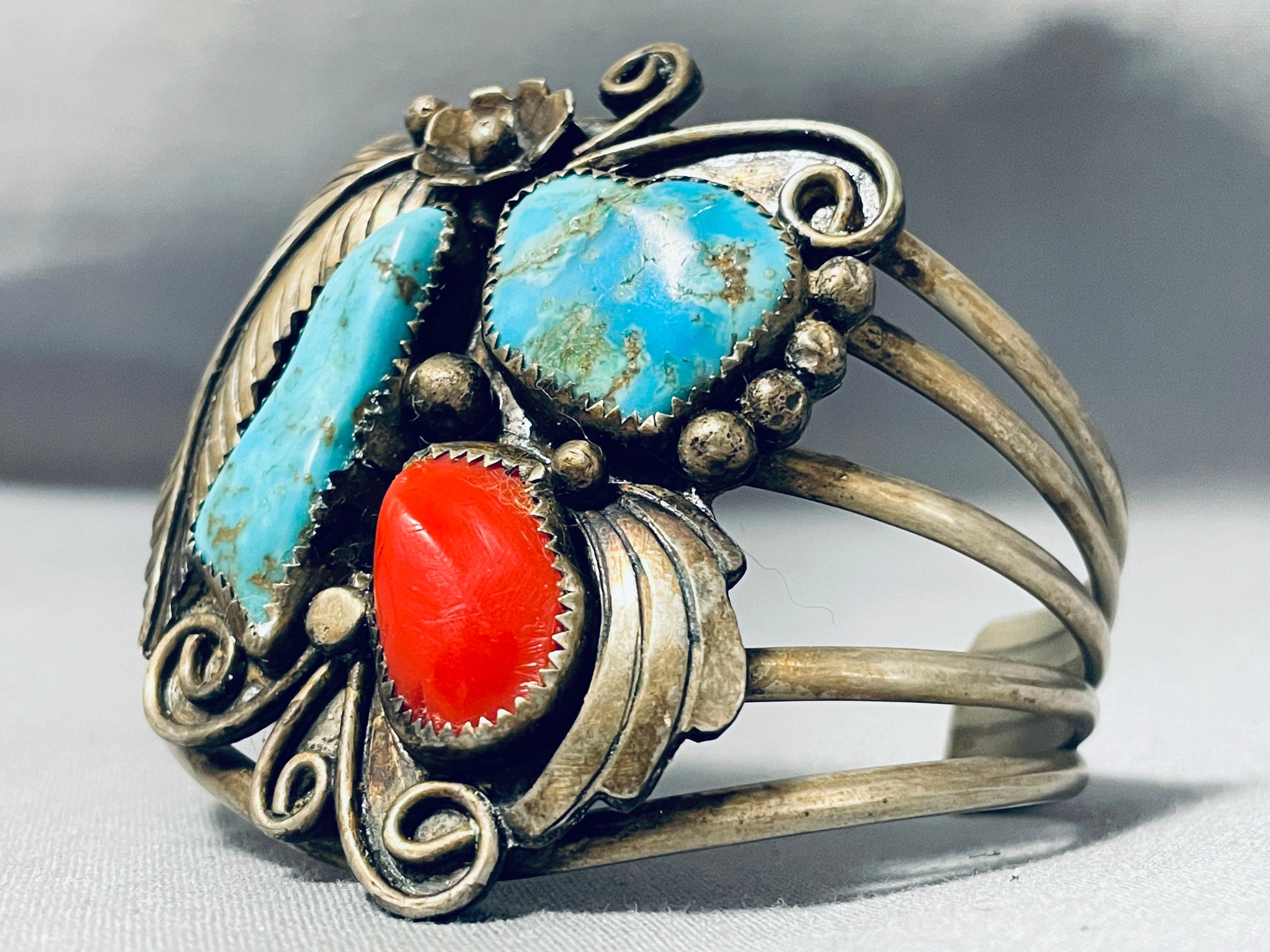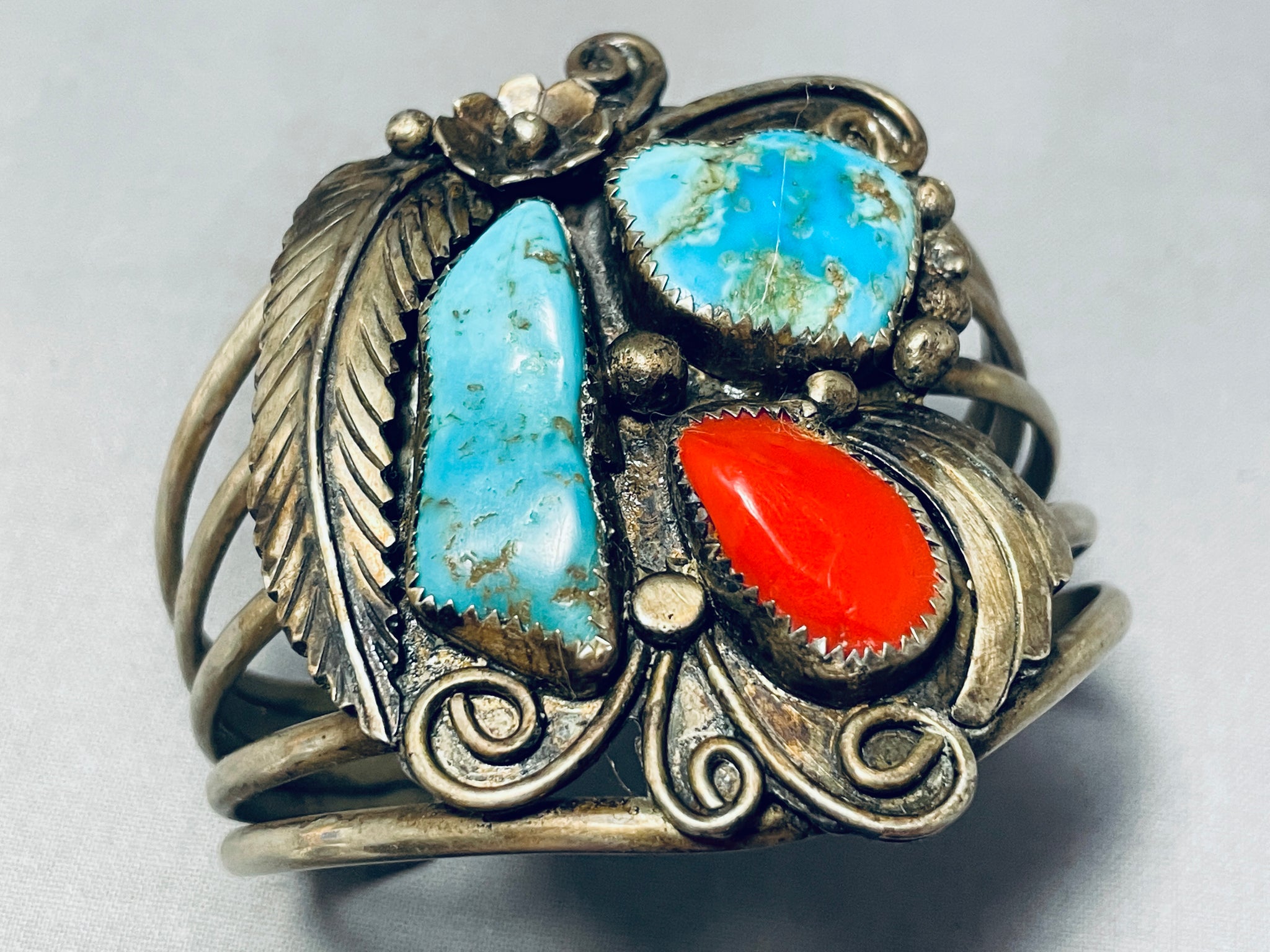 Huge Very Rare Eatser Blue Turquoise Vintage Native American Navajo Sterling Silver Bracelet