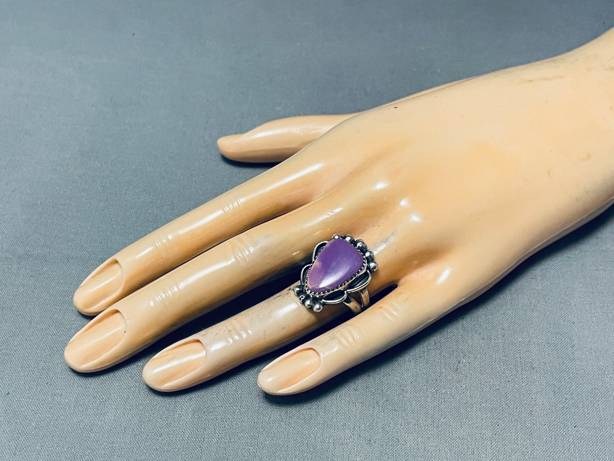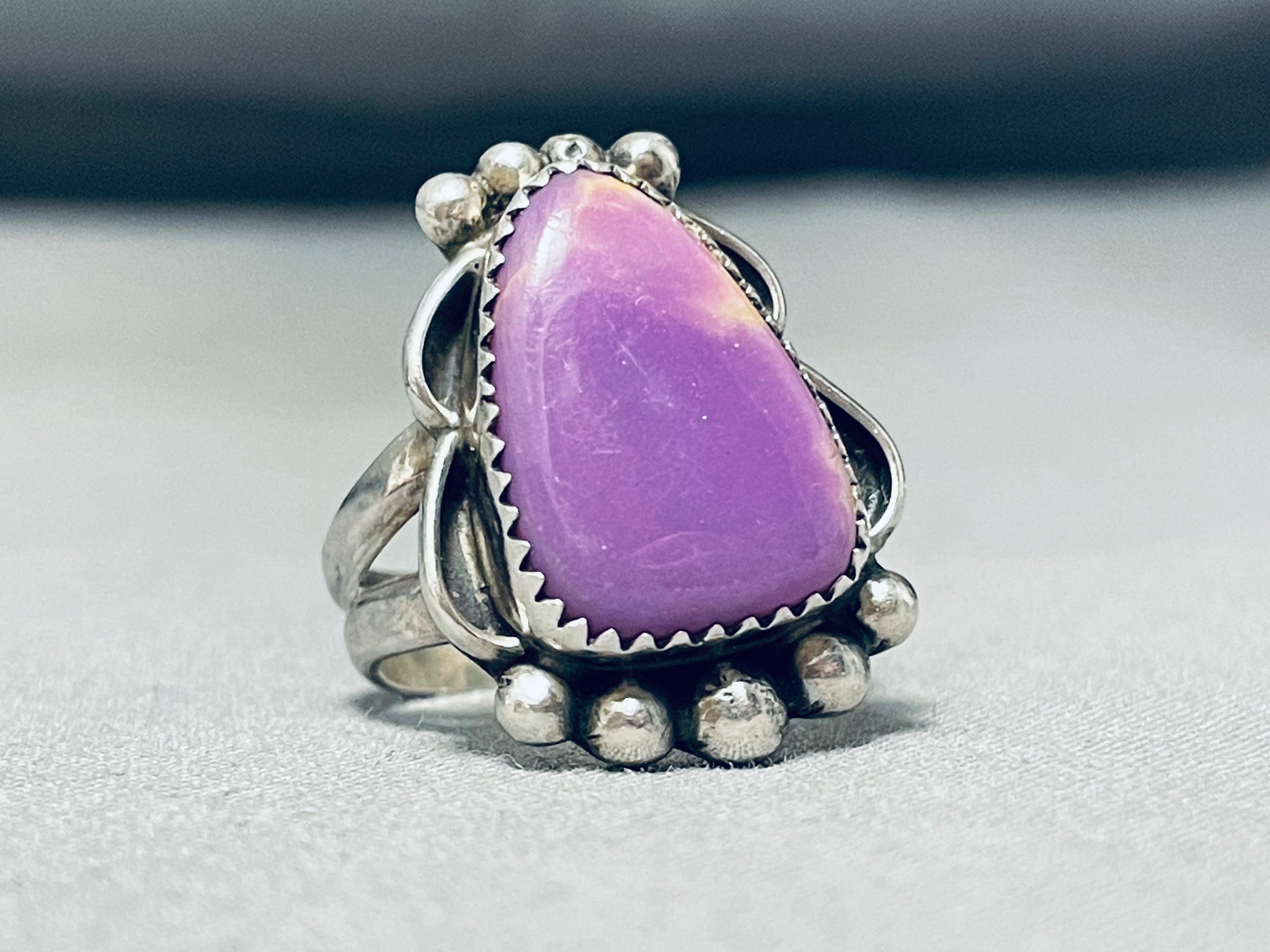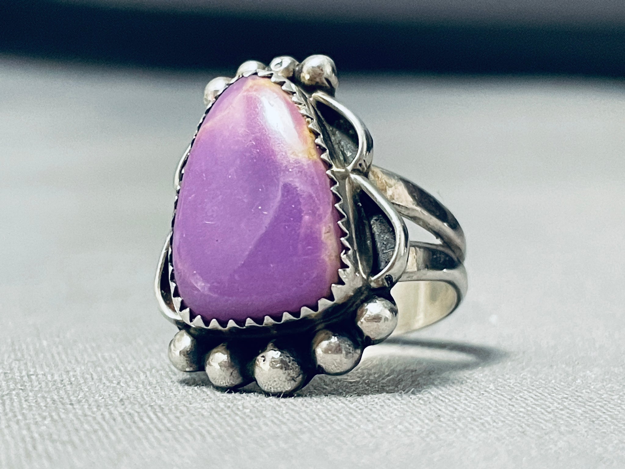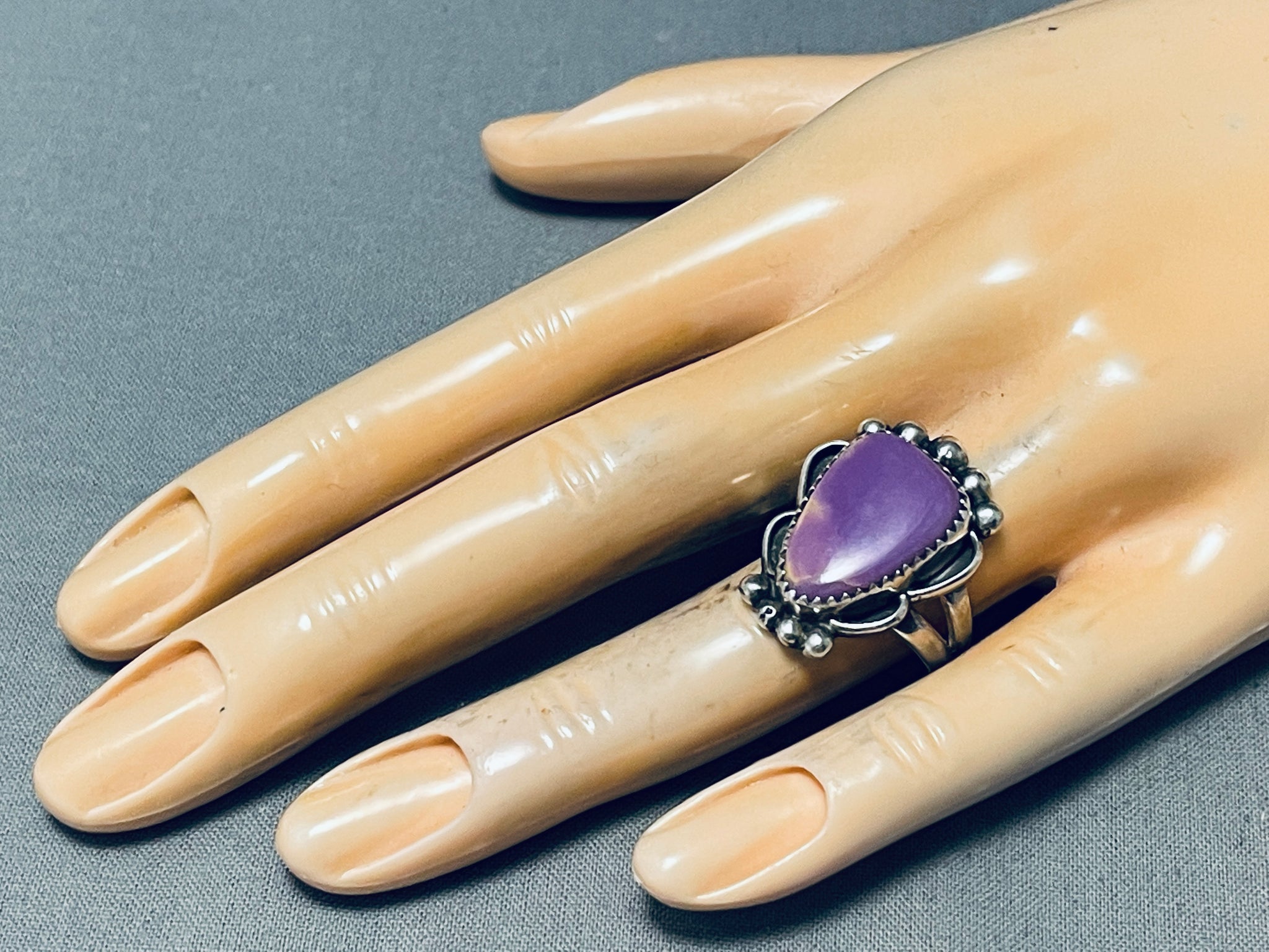 Huge Very Rare Vintage Native American Navajo Sugilite Sterling Silver Signed Ring Old