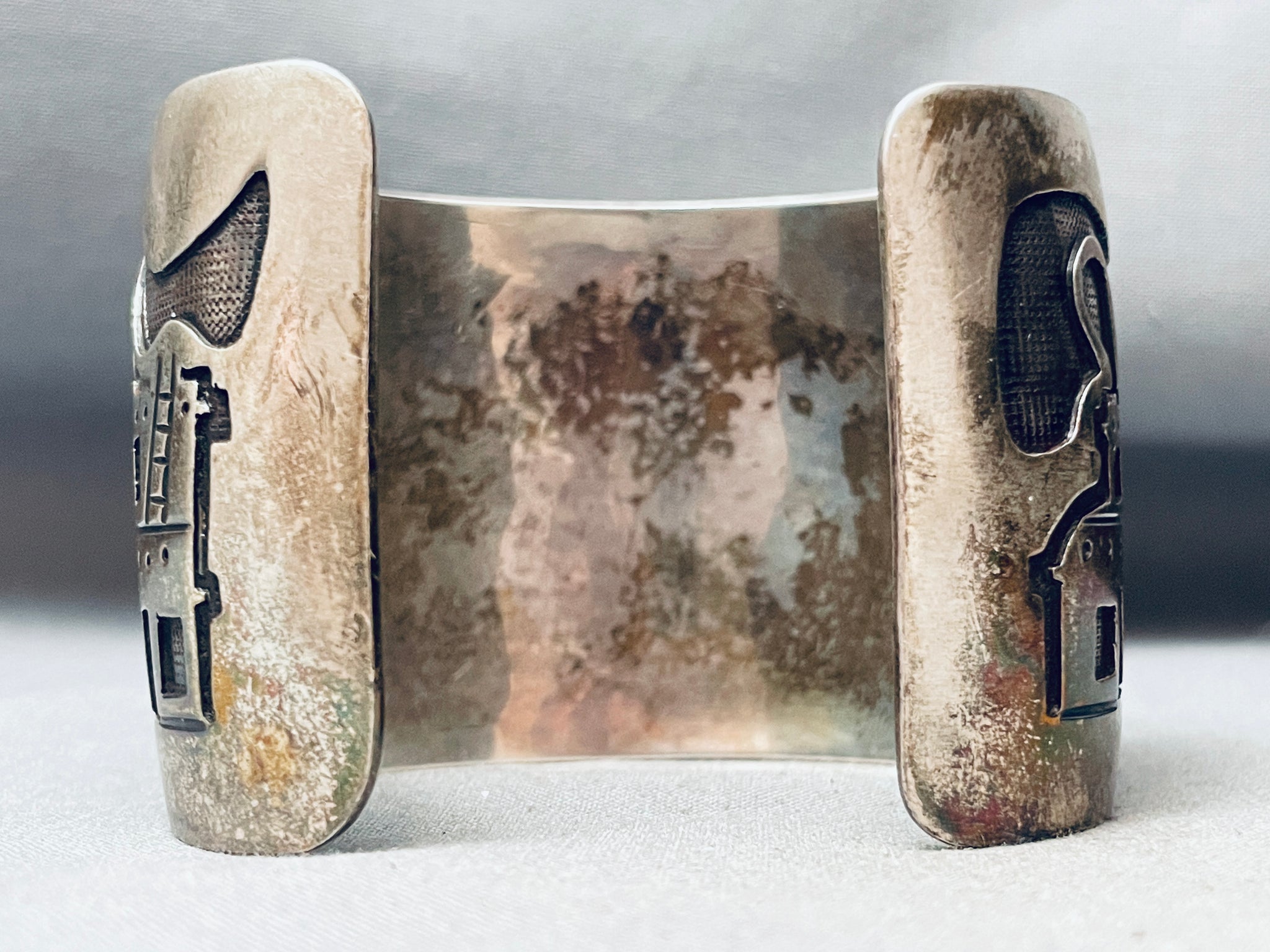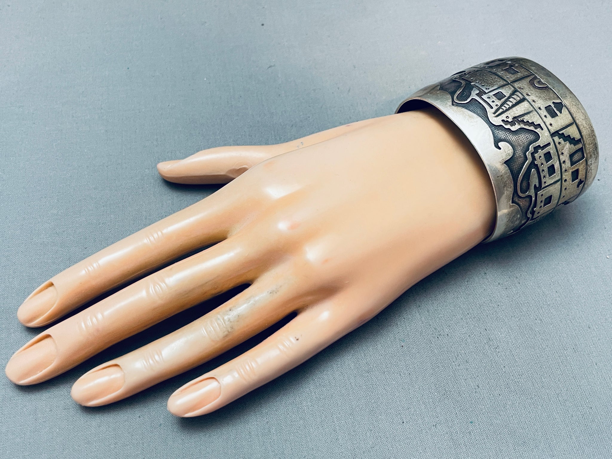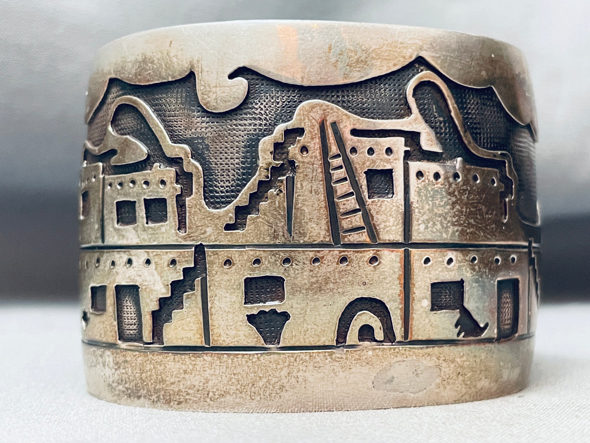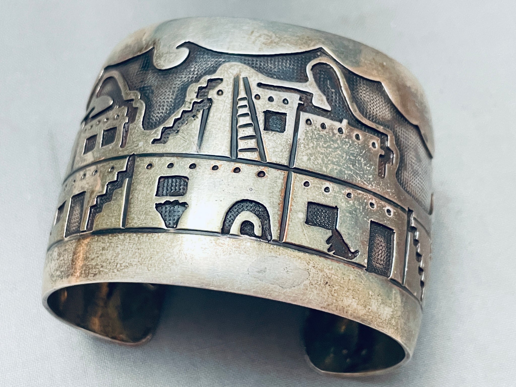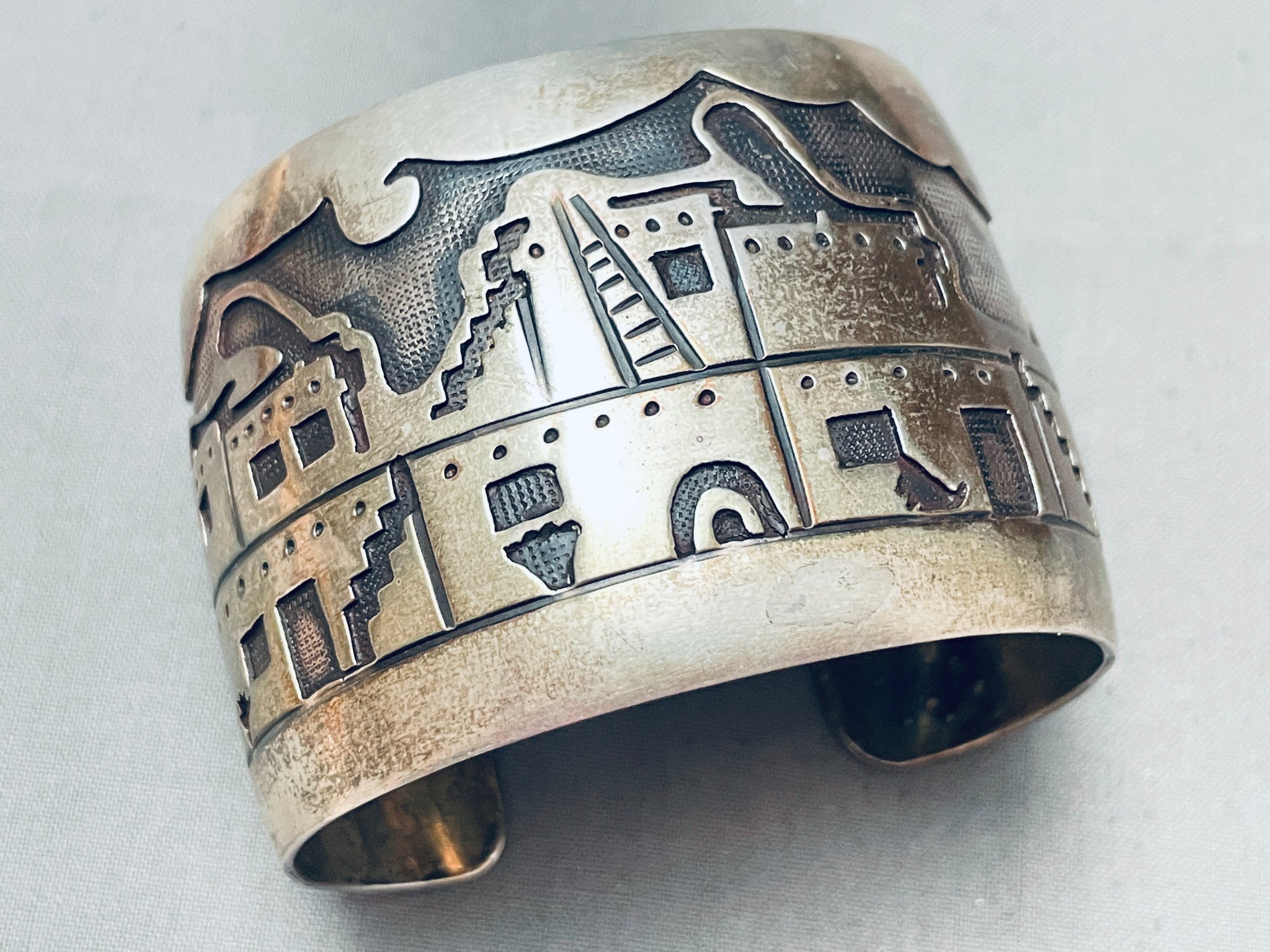 Huge Vintage Native American Hopi Sterling Silver Pueblo Bracelet Cuff Old