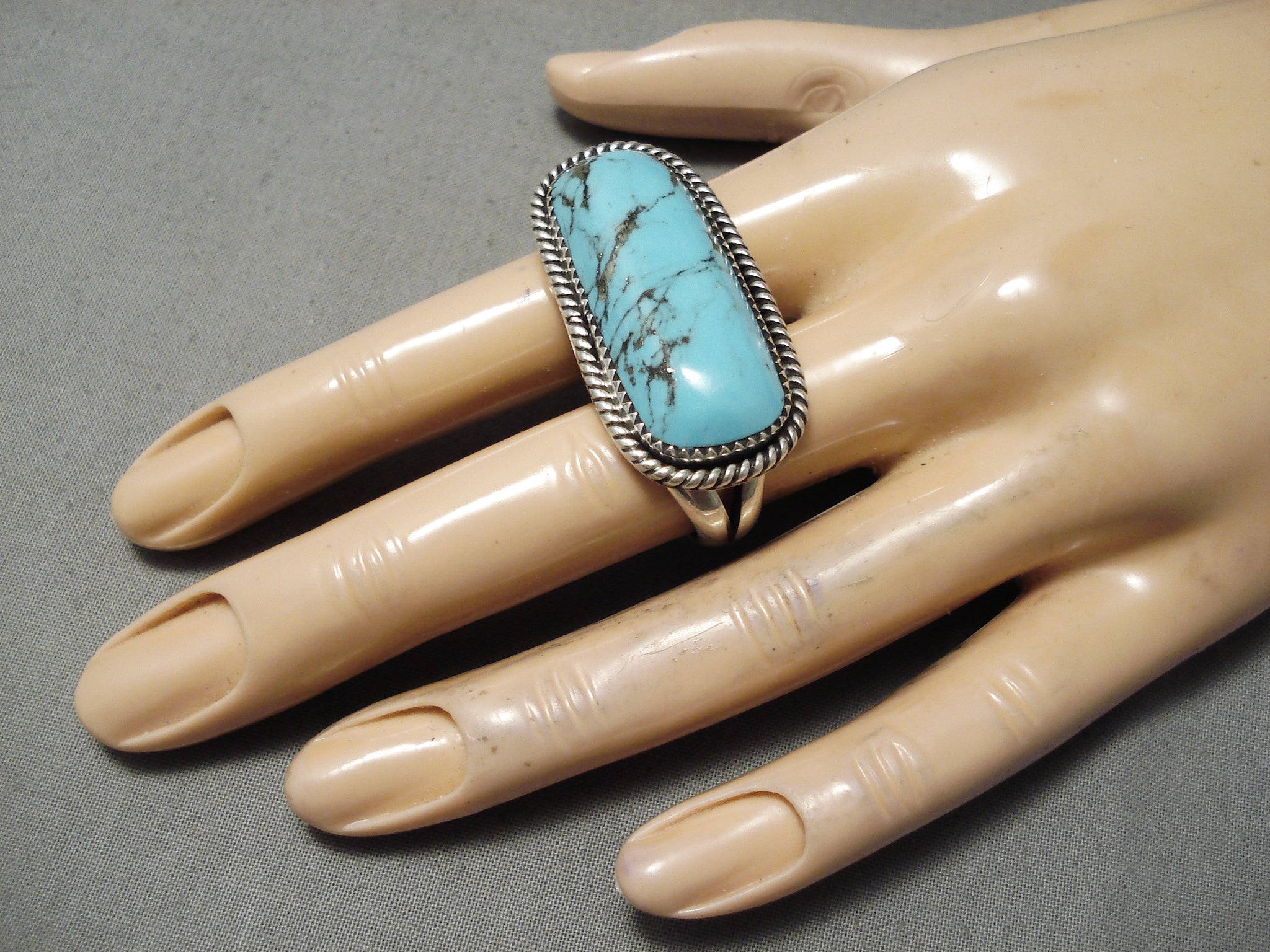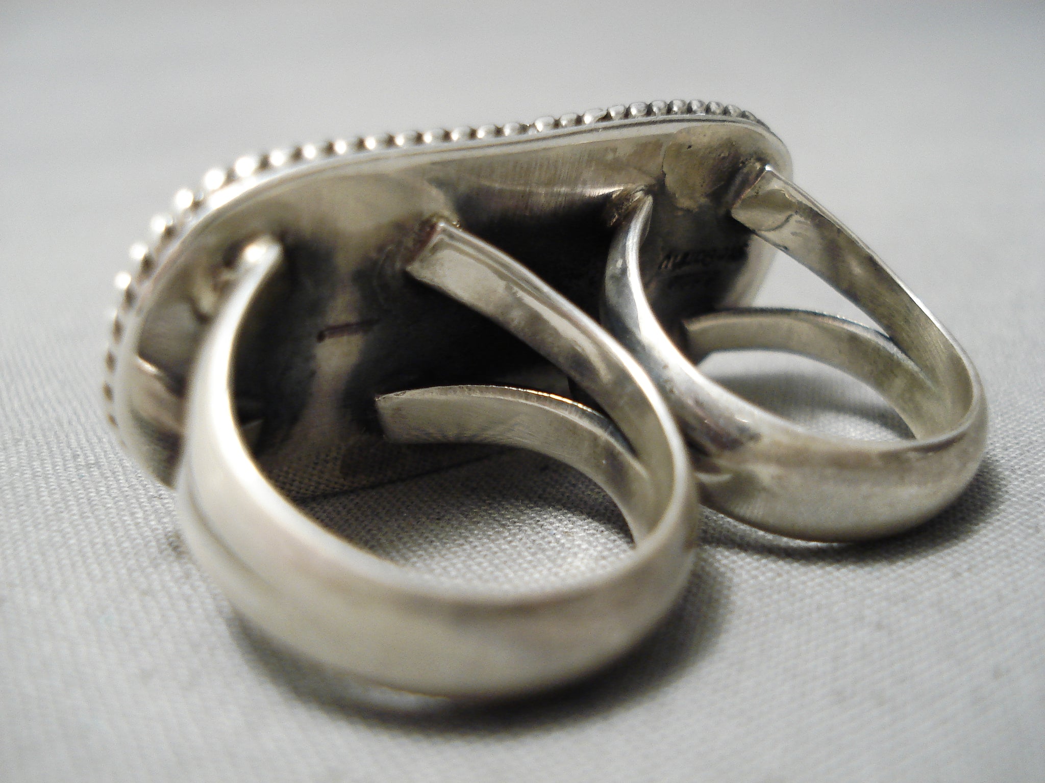 Huge Vintage Native American Navajo 2 Finger Blue Diamond Turquoise Sterling Silver Ring