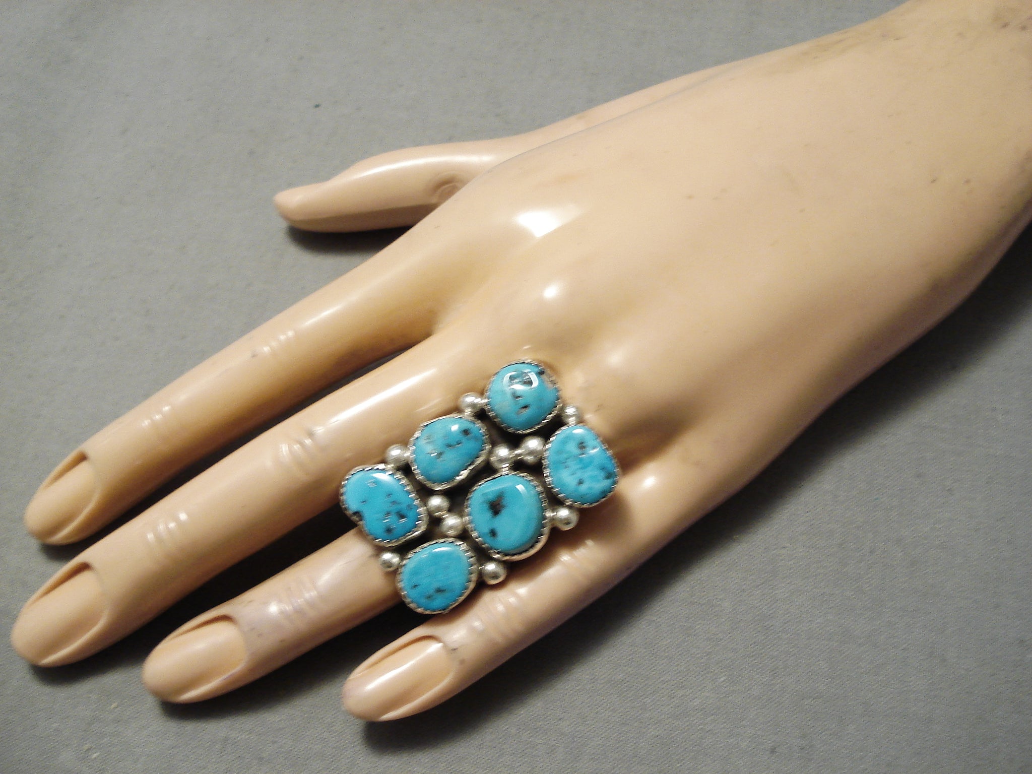 Huge Vintage Native American Navajo Big Snake Eyes Turquoise Sterling Silver Ring Old