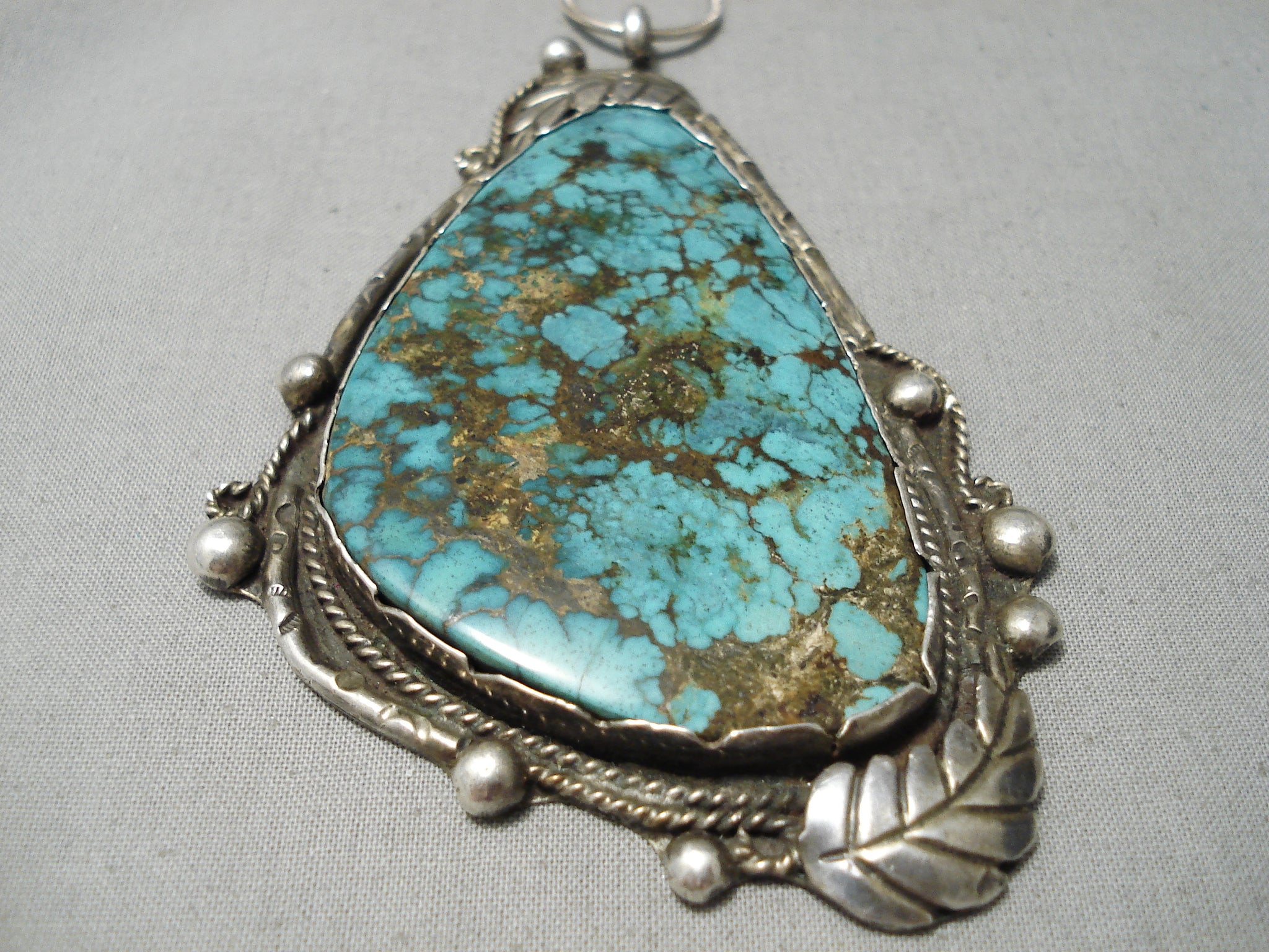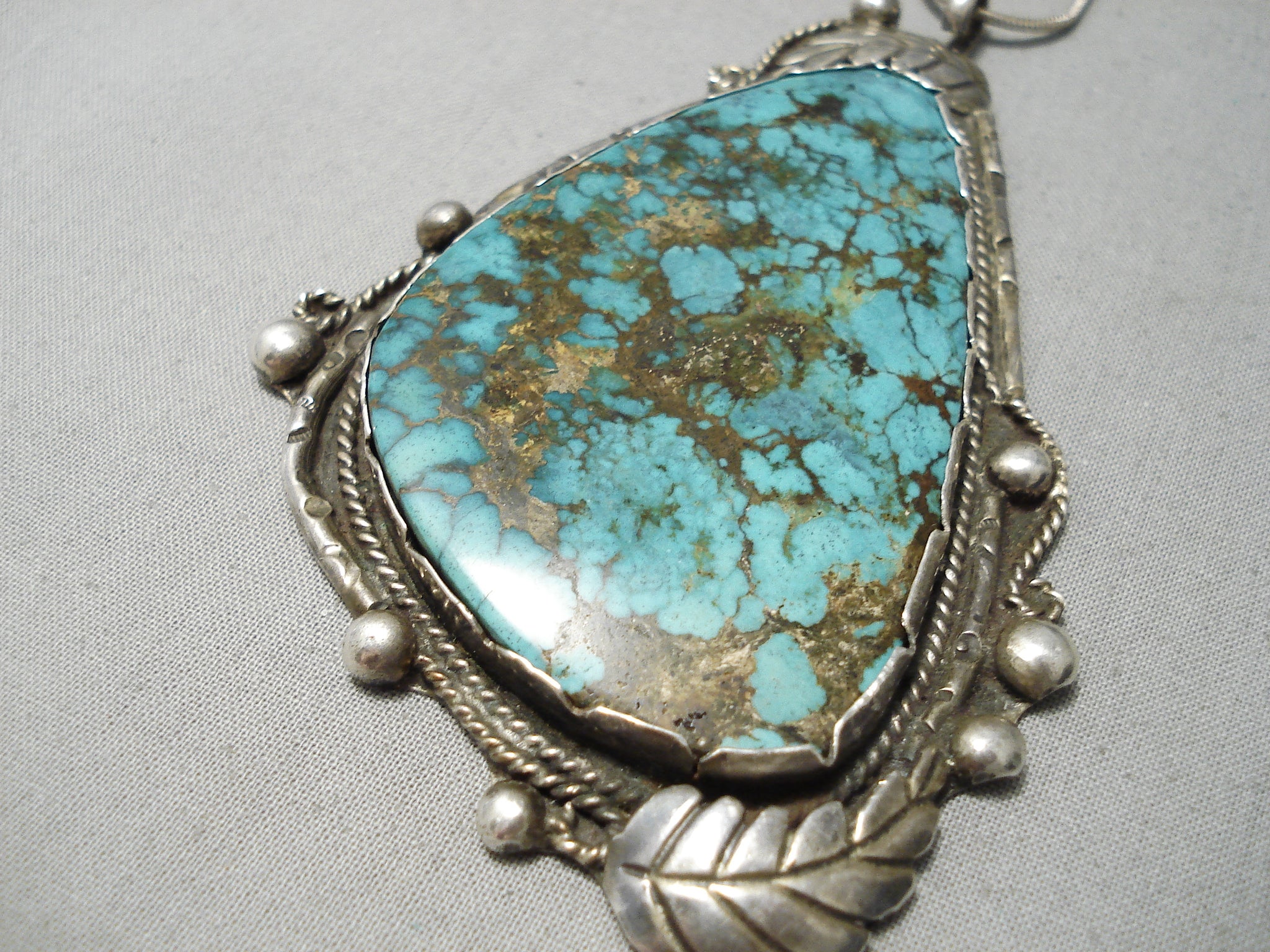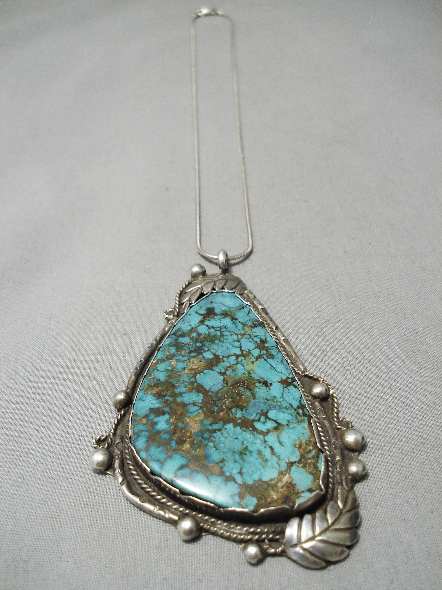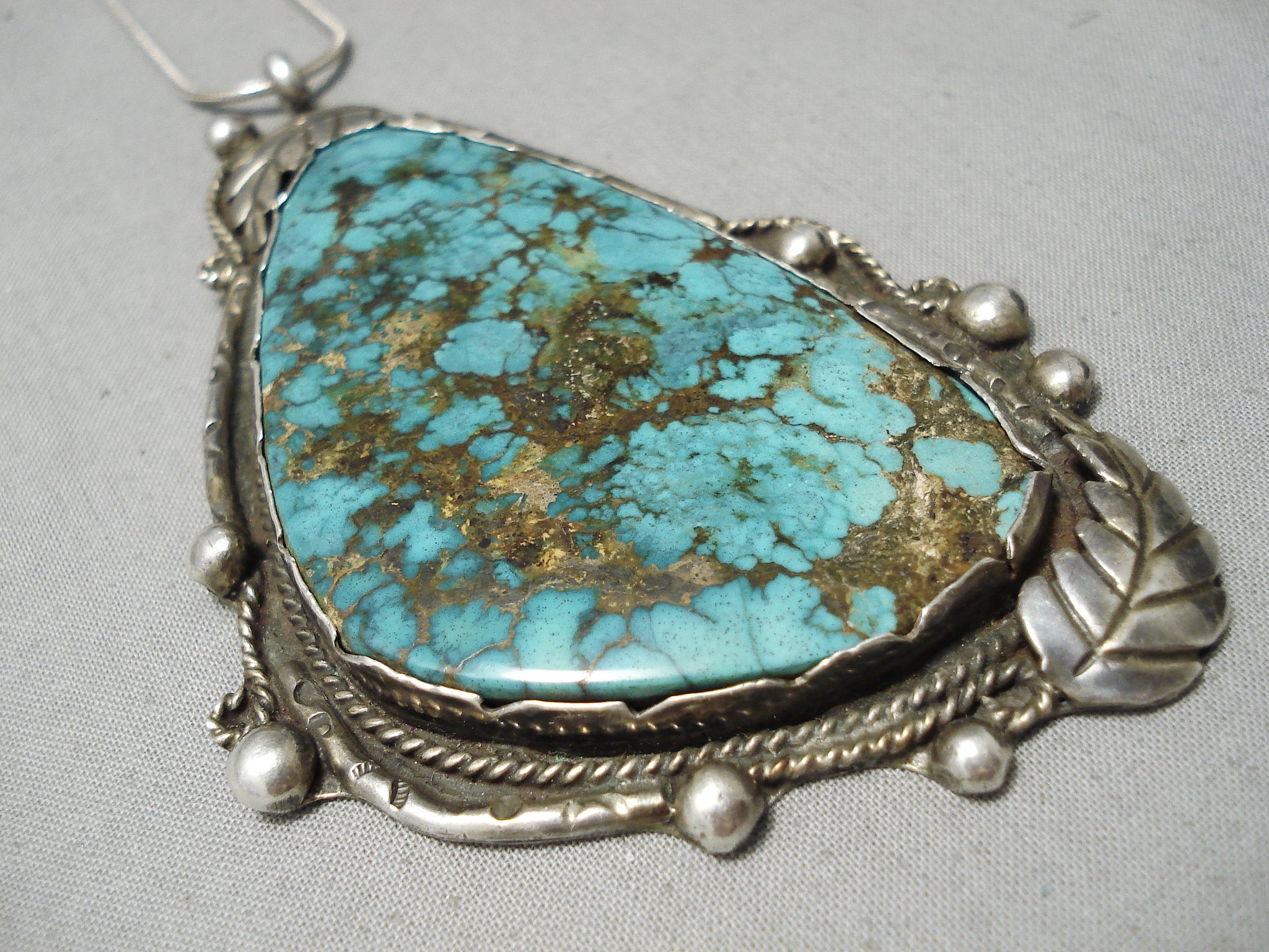Huge Vintage Native American Navajo Blue Thunder Turquoise Sterling Silver Necklace Old