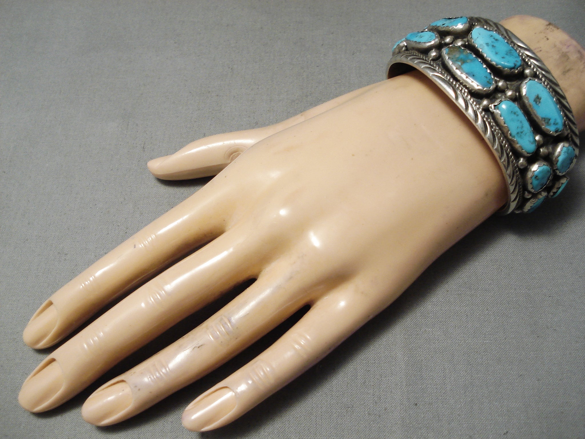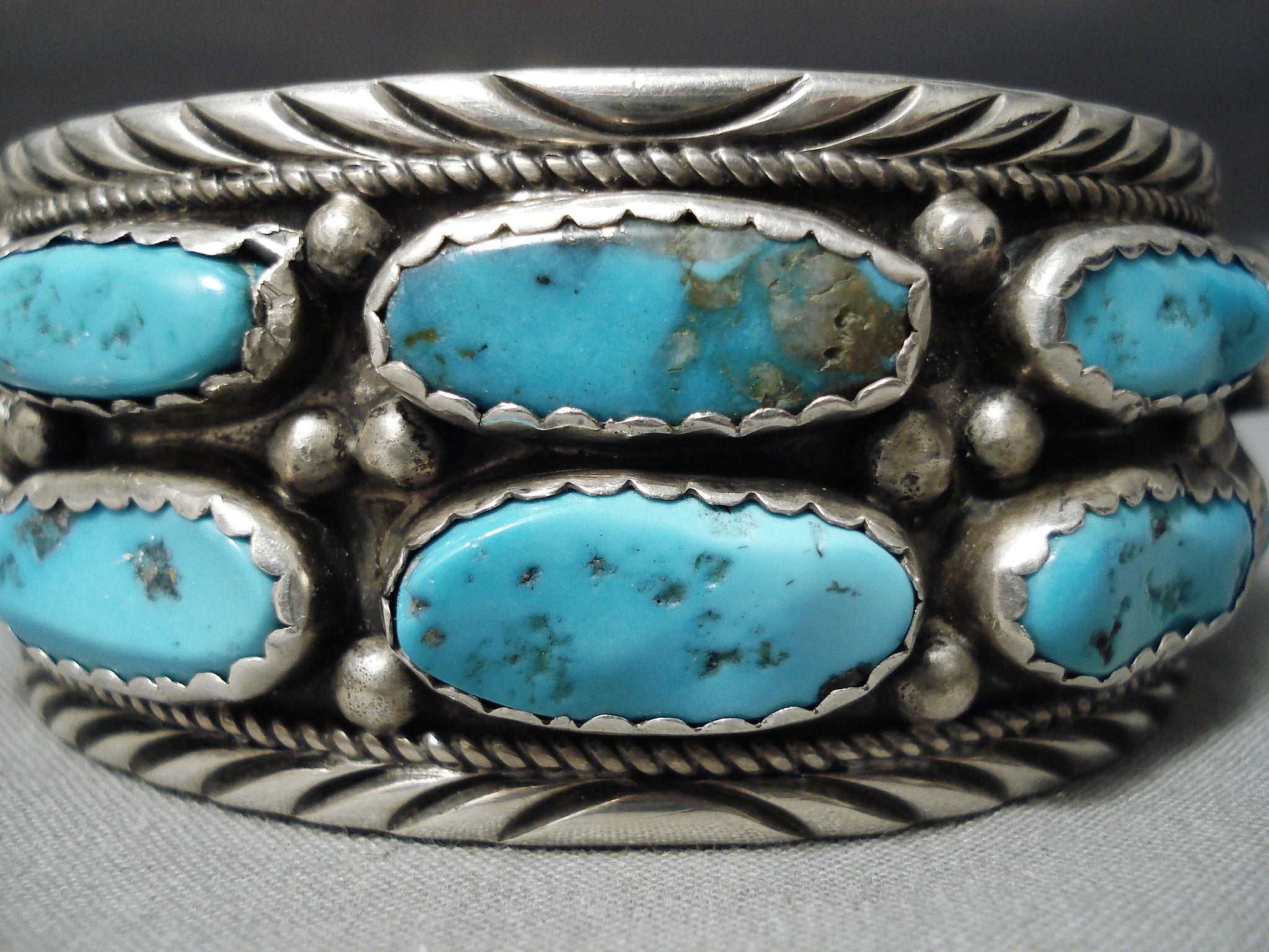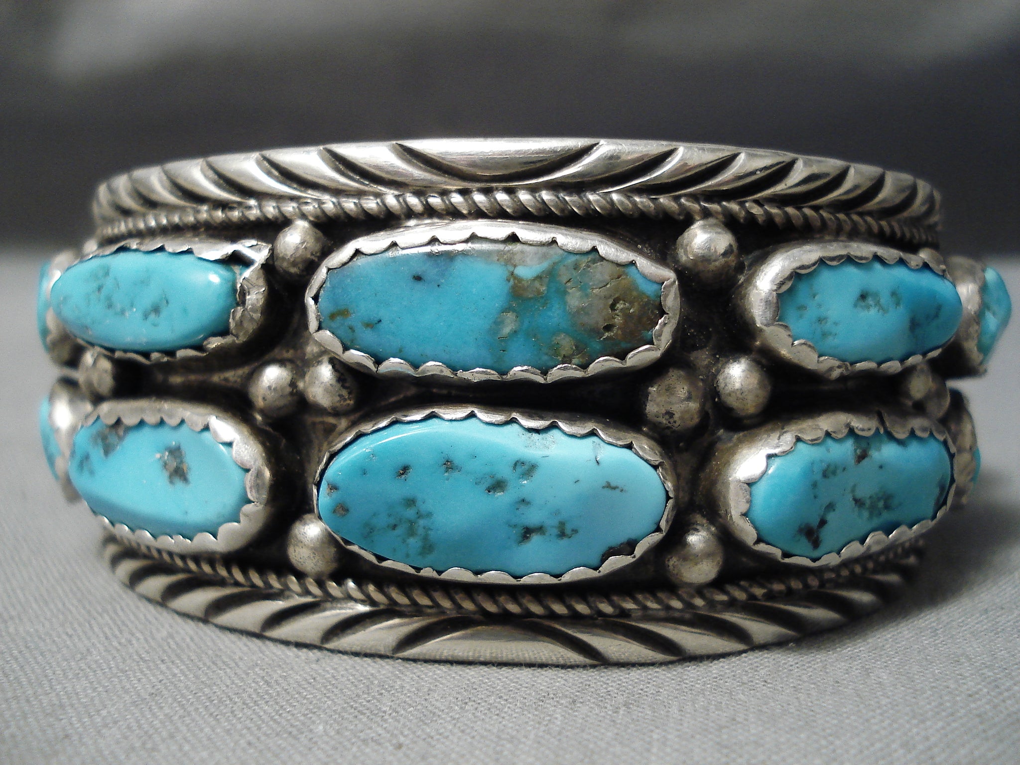 Huge Vintage Native American Navajo Chunky Turquoise Sterling Silver Bracelet Old