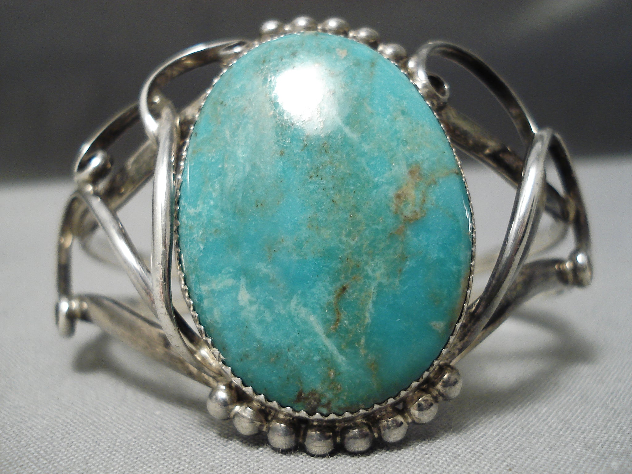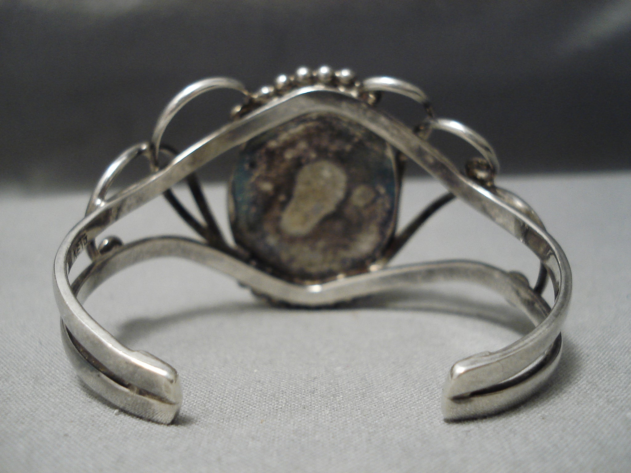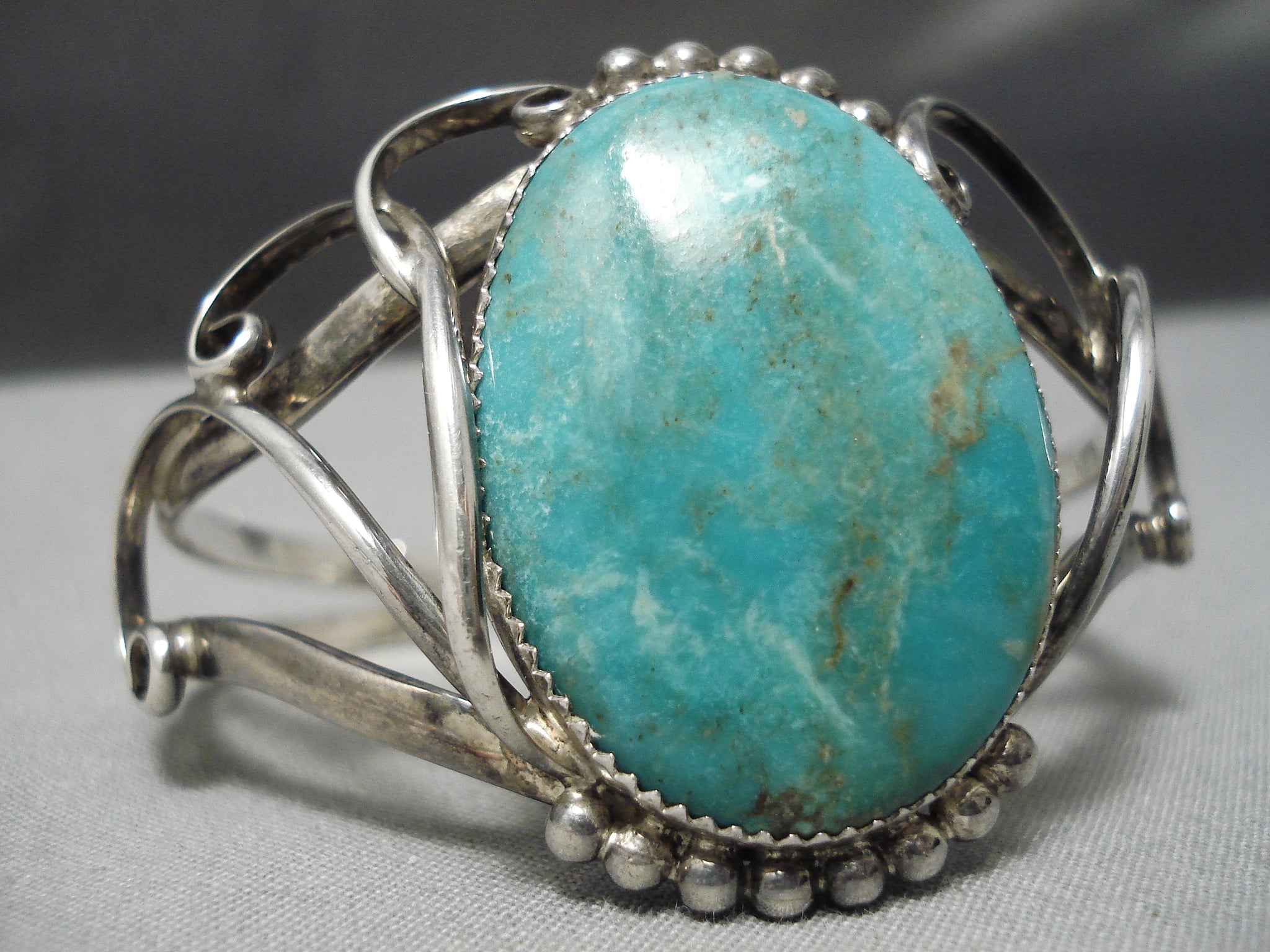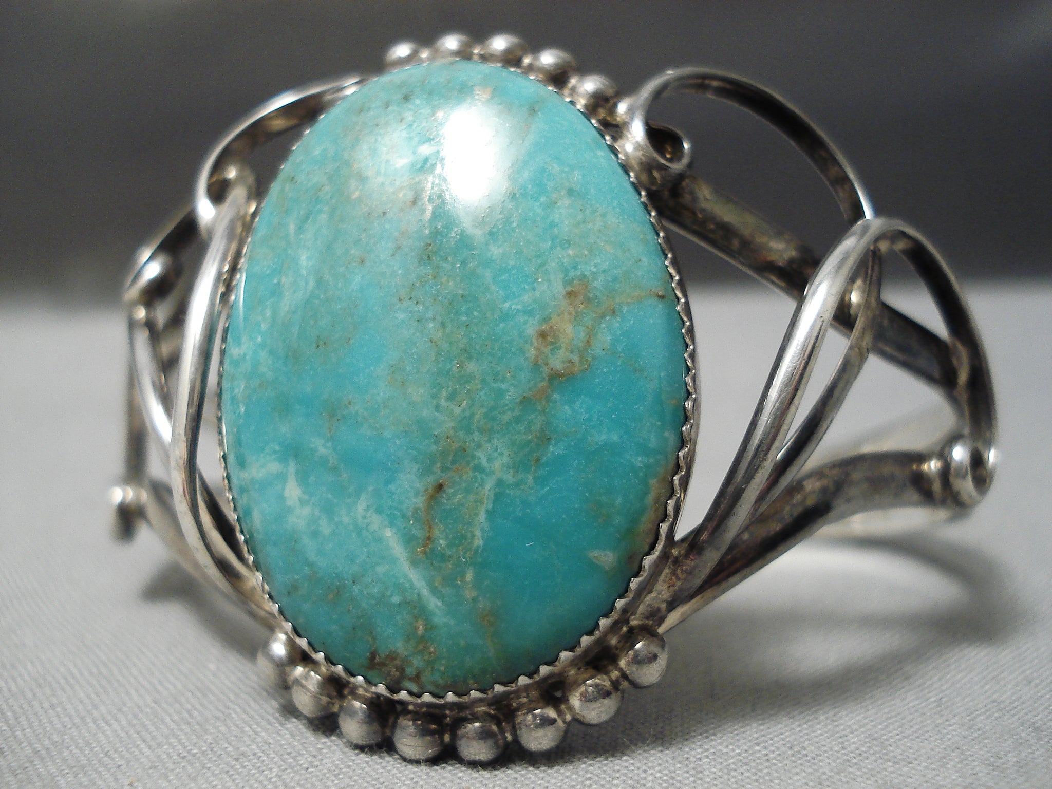 Huge Vintage Native American Navajo Domed Royston Turquoise Sterling Silver Swirl Bracelet Old