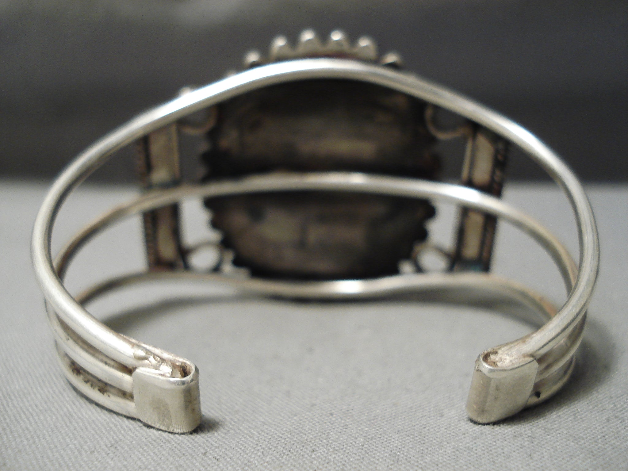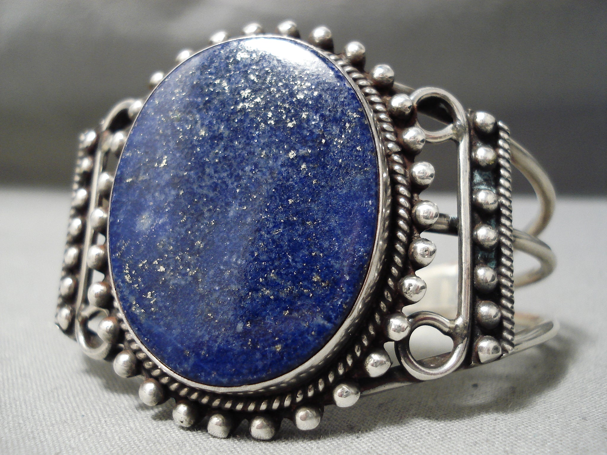 Huge Vintage Native American Navajo Moonlight Lapis Sterling Silver Bracelet Cuff Old