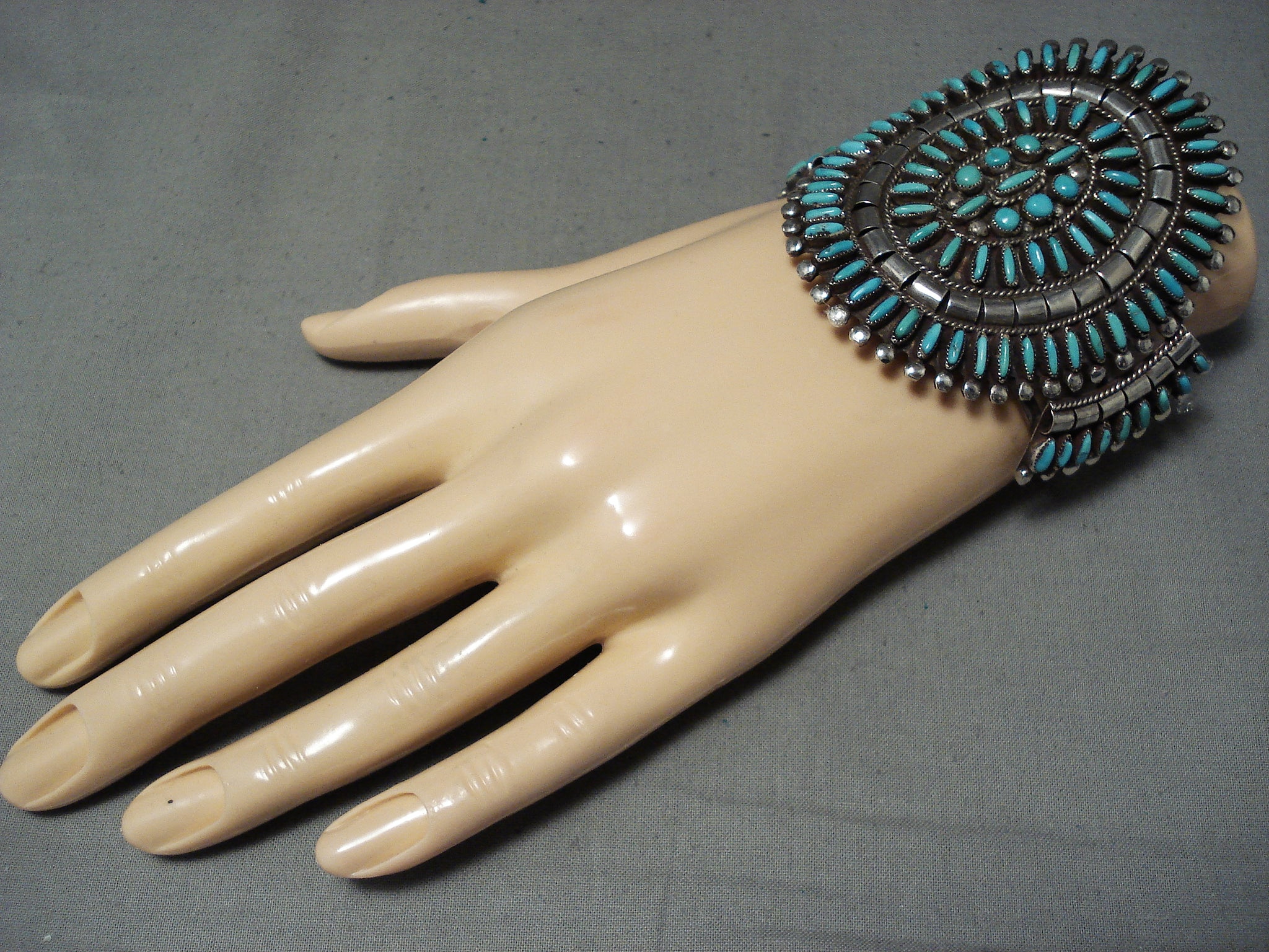 Huge Vintage Native American Navajo Needle Turquoise Sterling Silver Bracelet