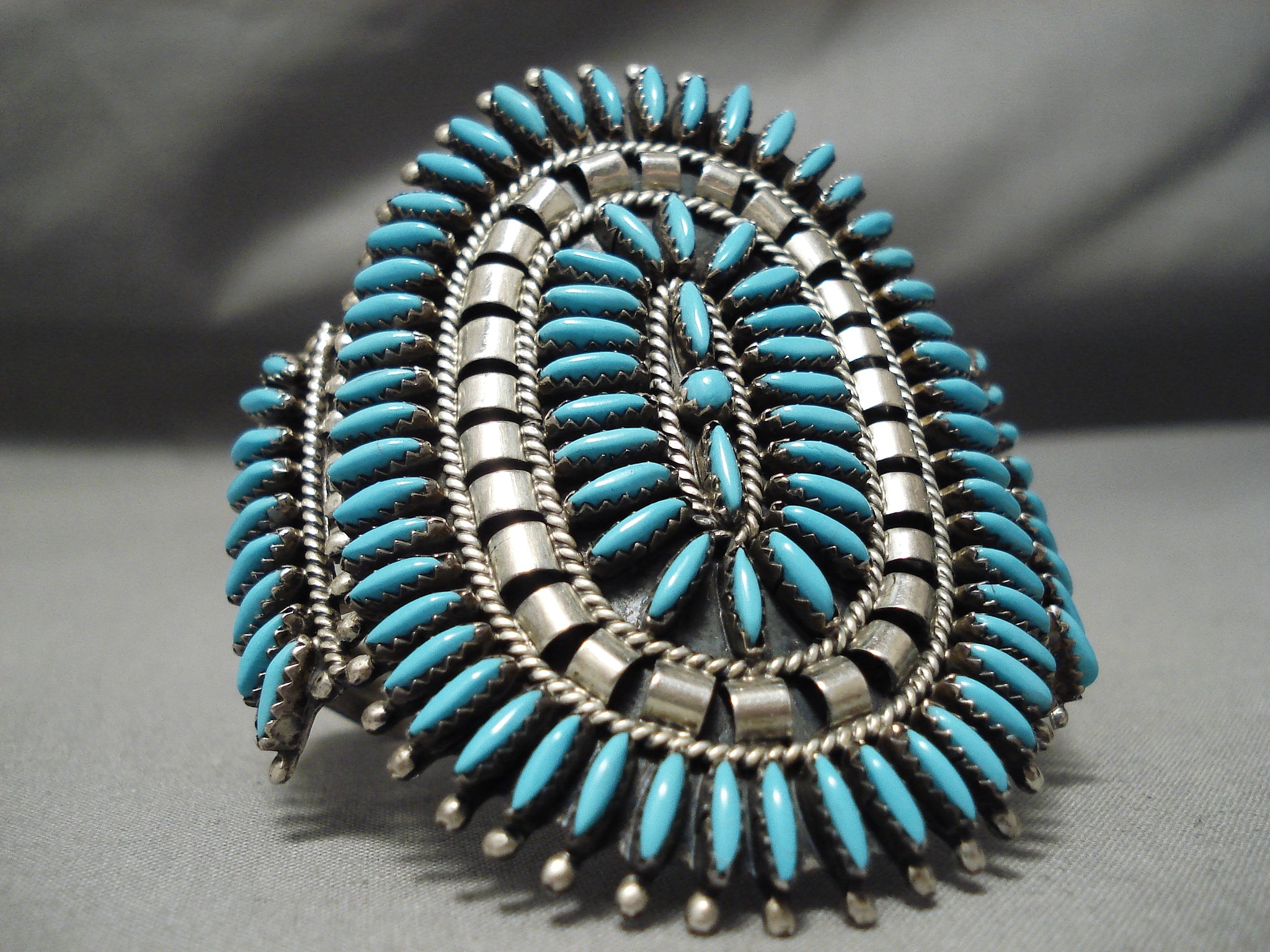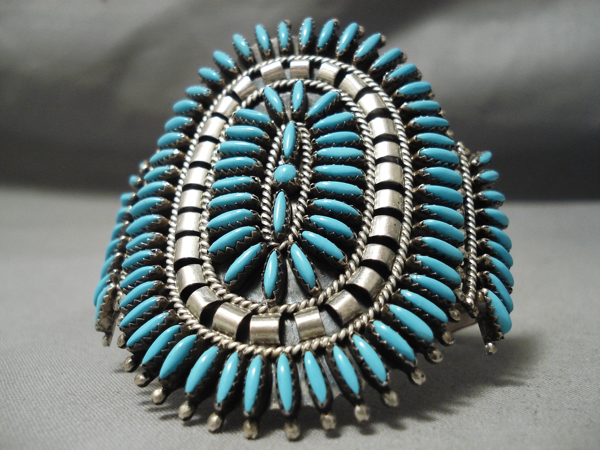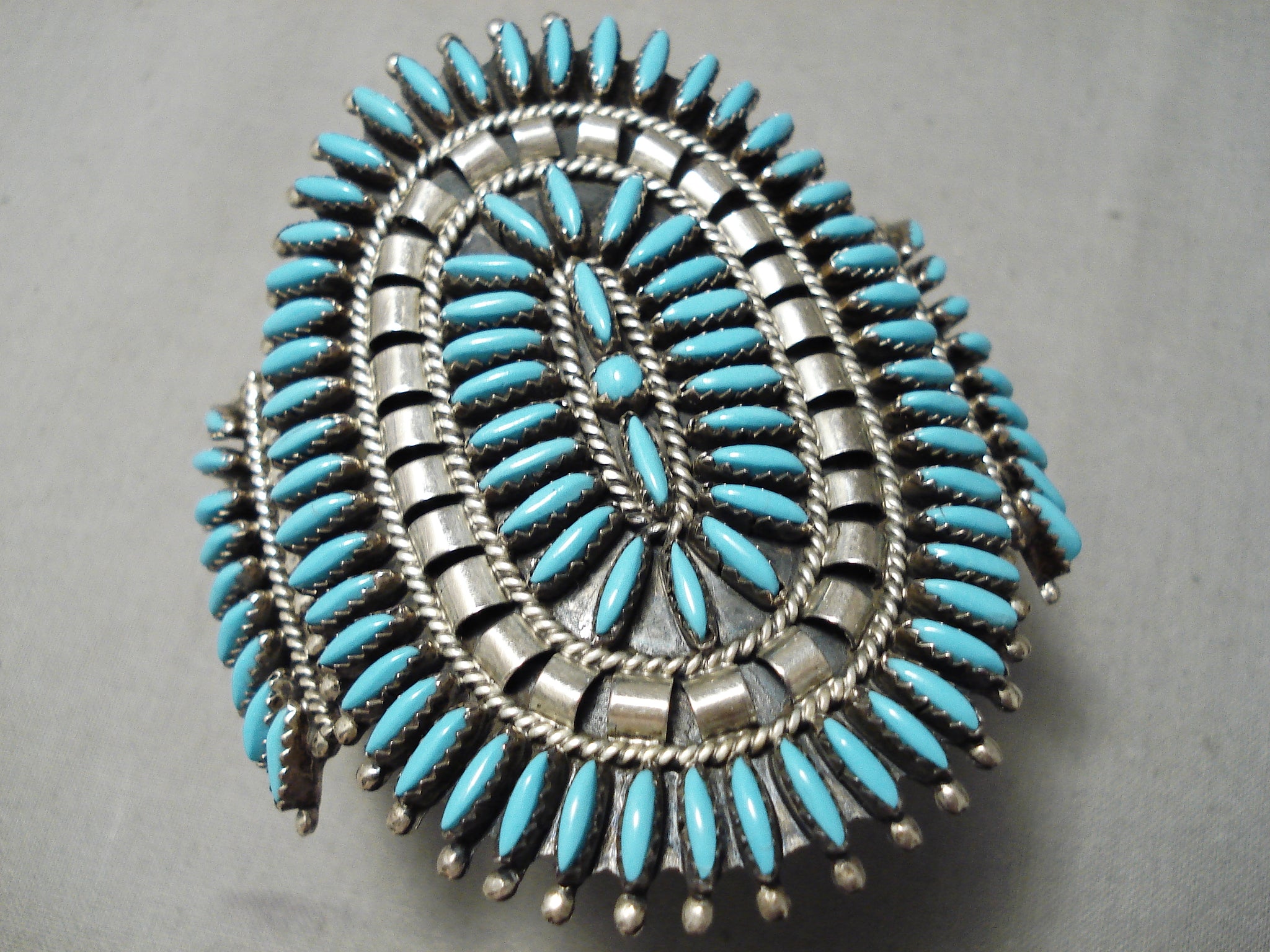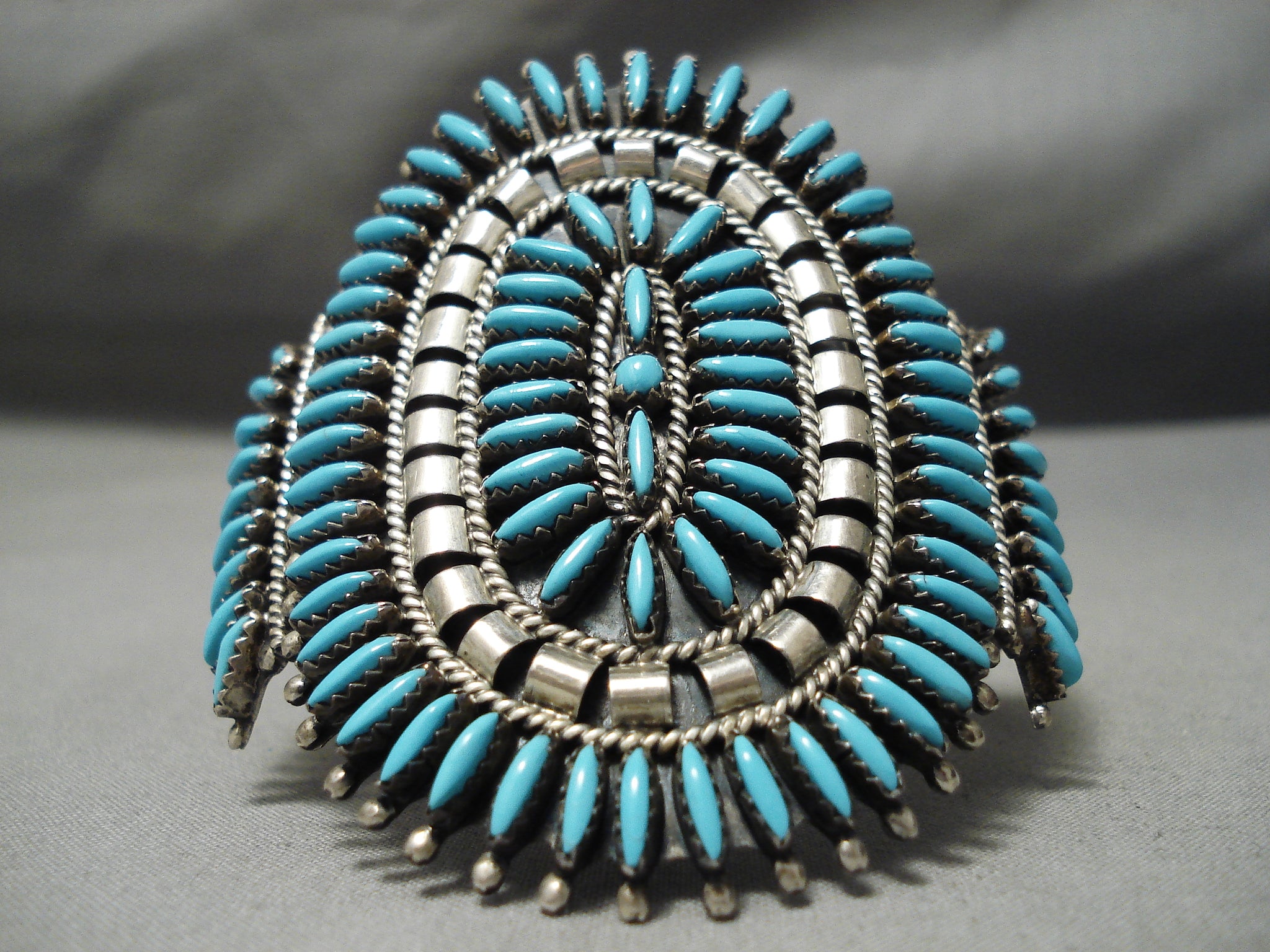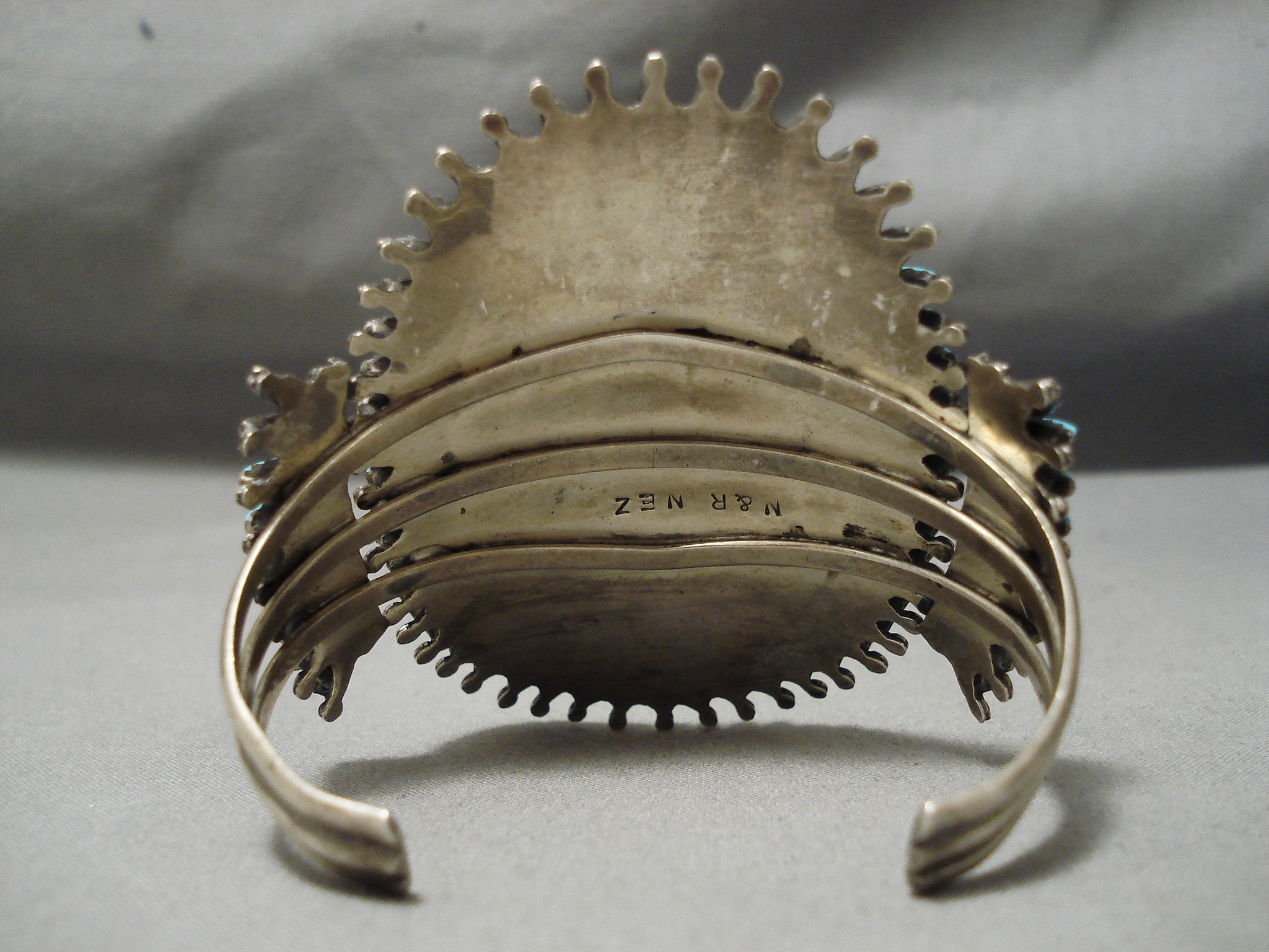 Huge Vintage Native American Navajo Neelde Turquoise Sterling Silver Bracelet