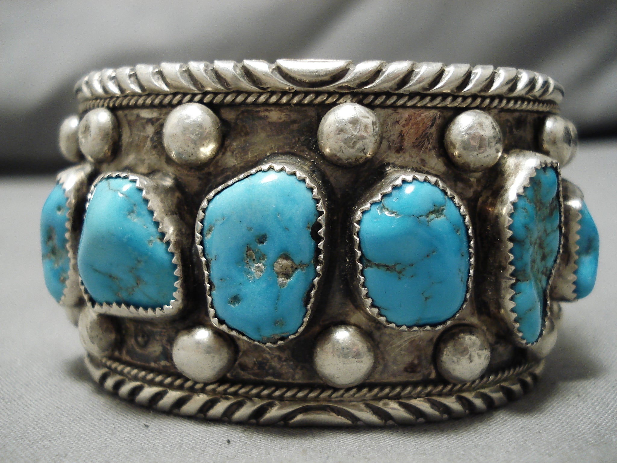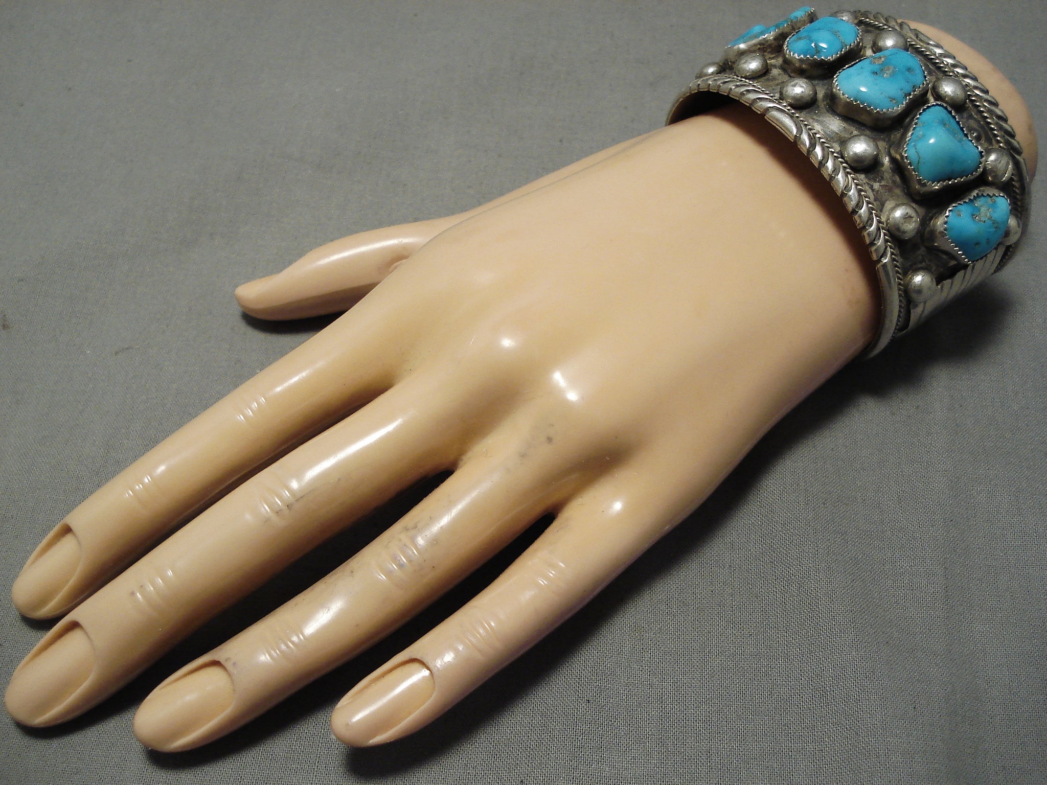 Huge Vintage Native American Navajo Pat Yazzie Turquoise Sterling Silver Bracelet Old