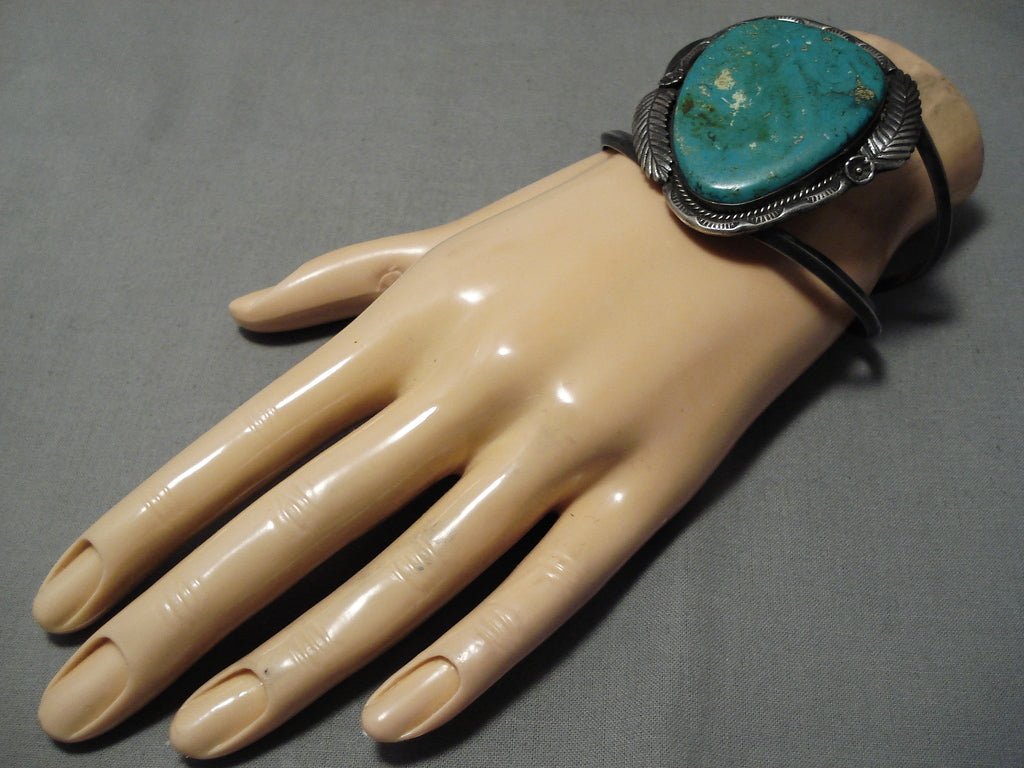 Huge!! Vintage Native American Navajo Royston Turquoise Sterling Silver Bracelet Old