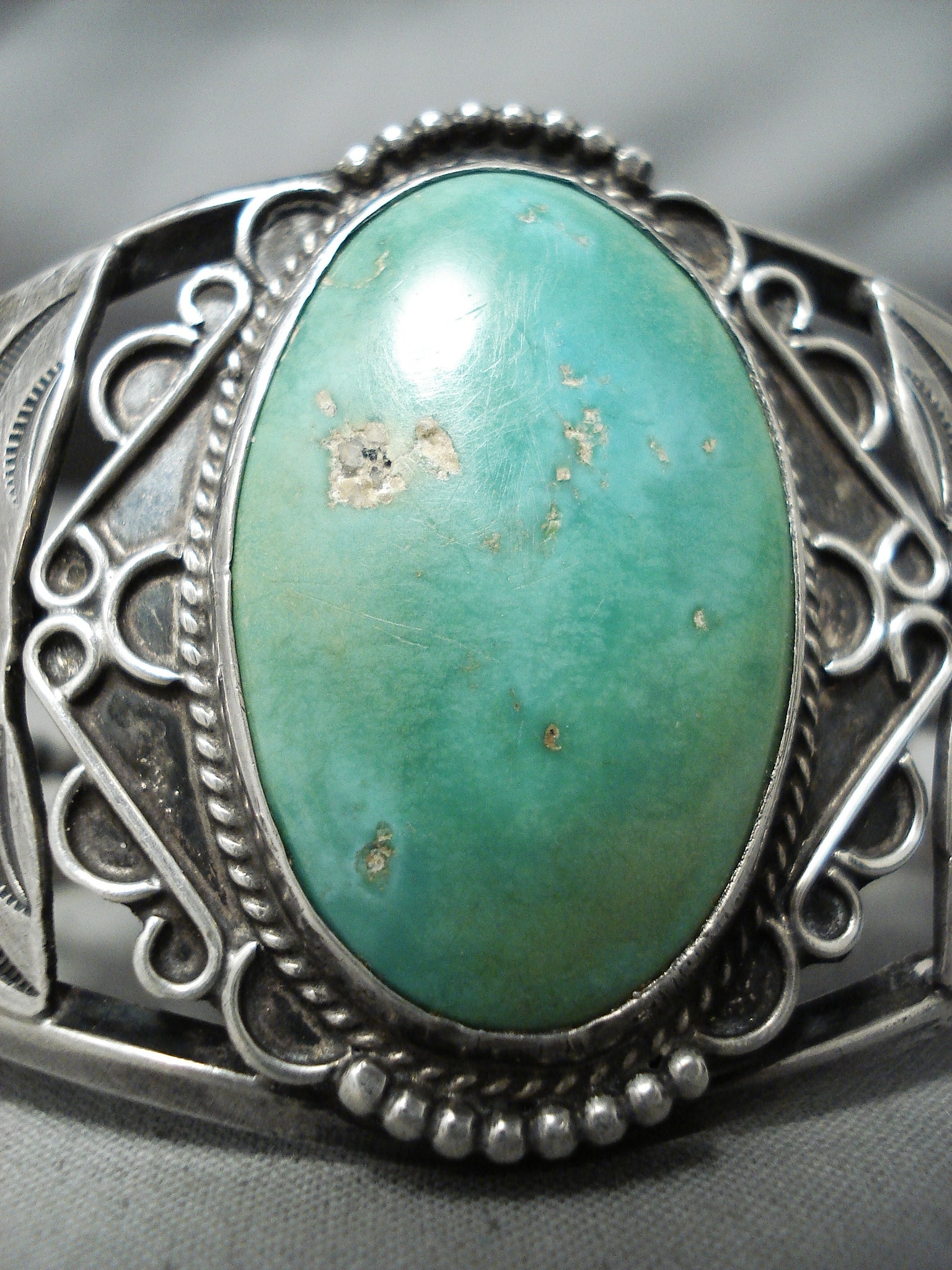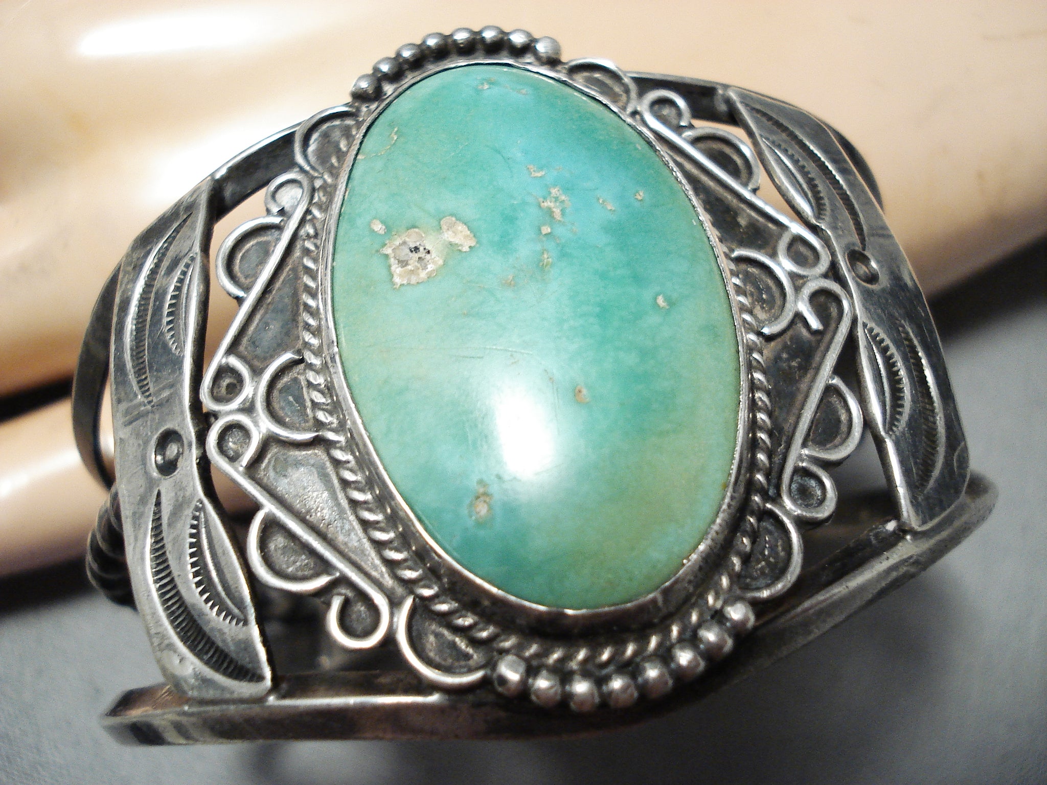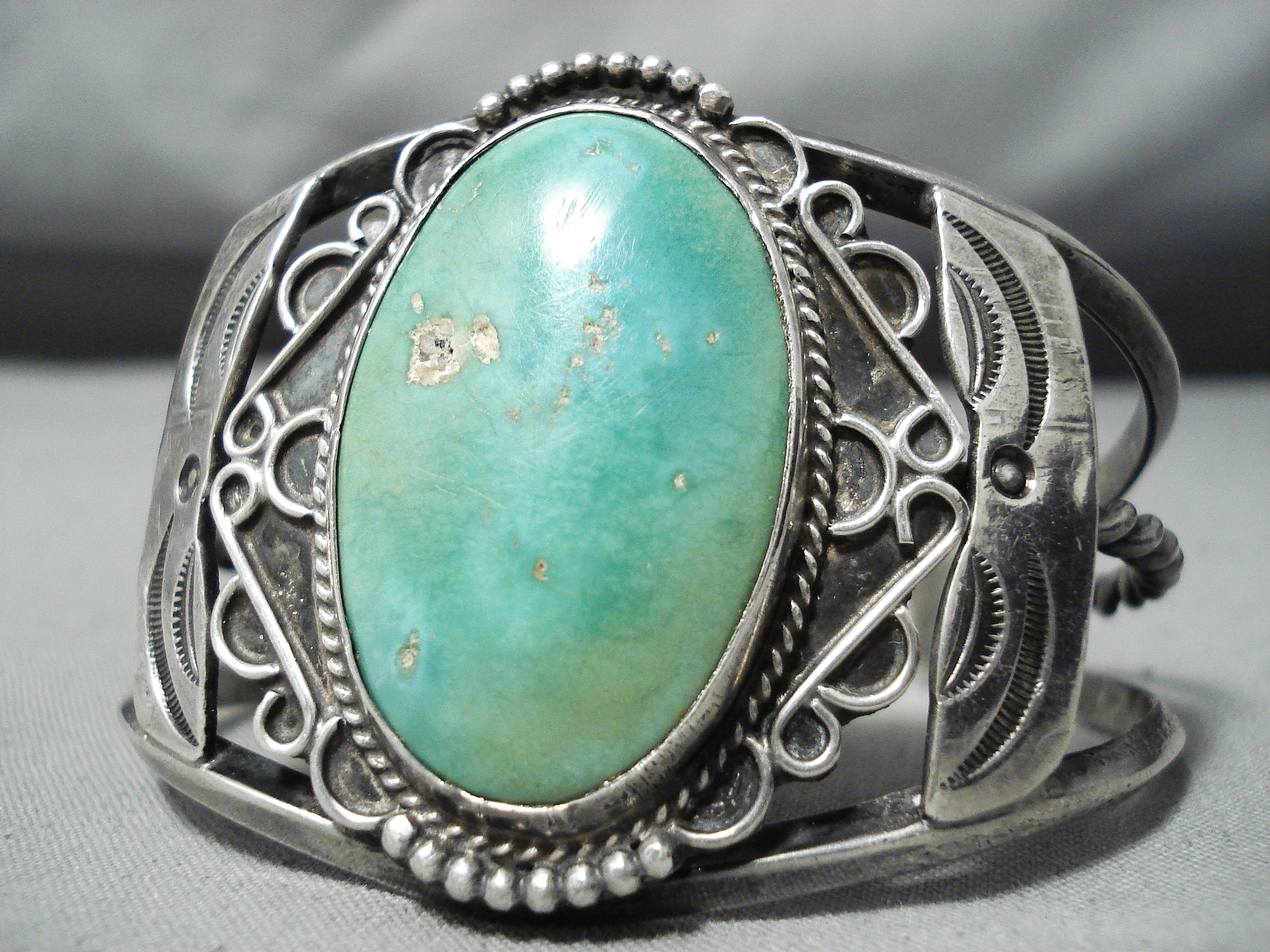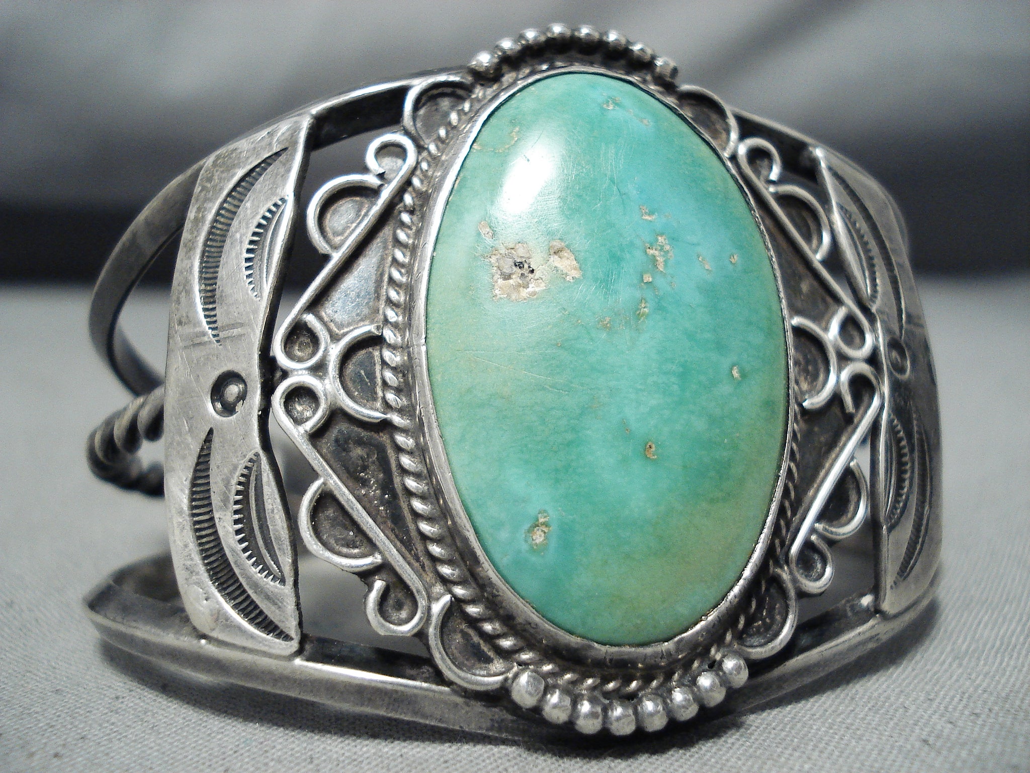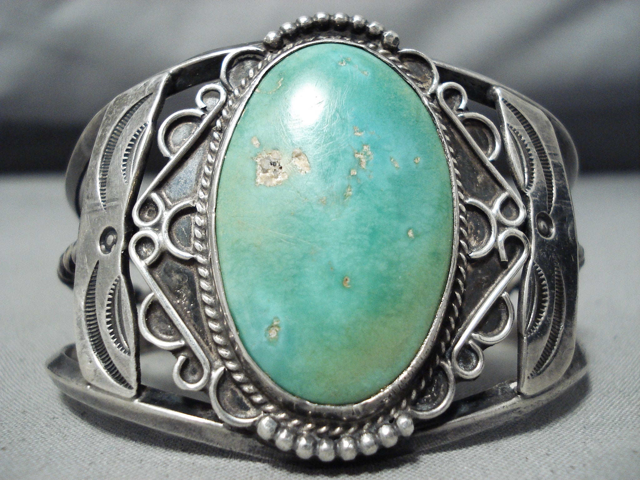 Huge Vintage Native American Navajo Royston Turquoise Sterling Silver Flank Bracelet