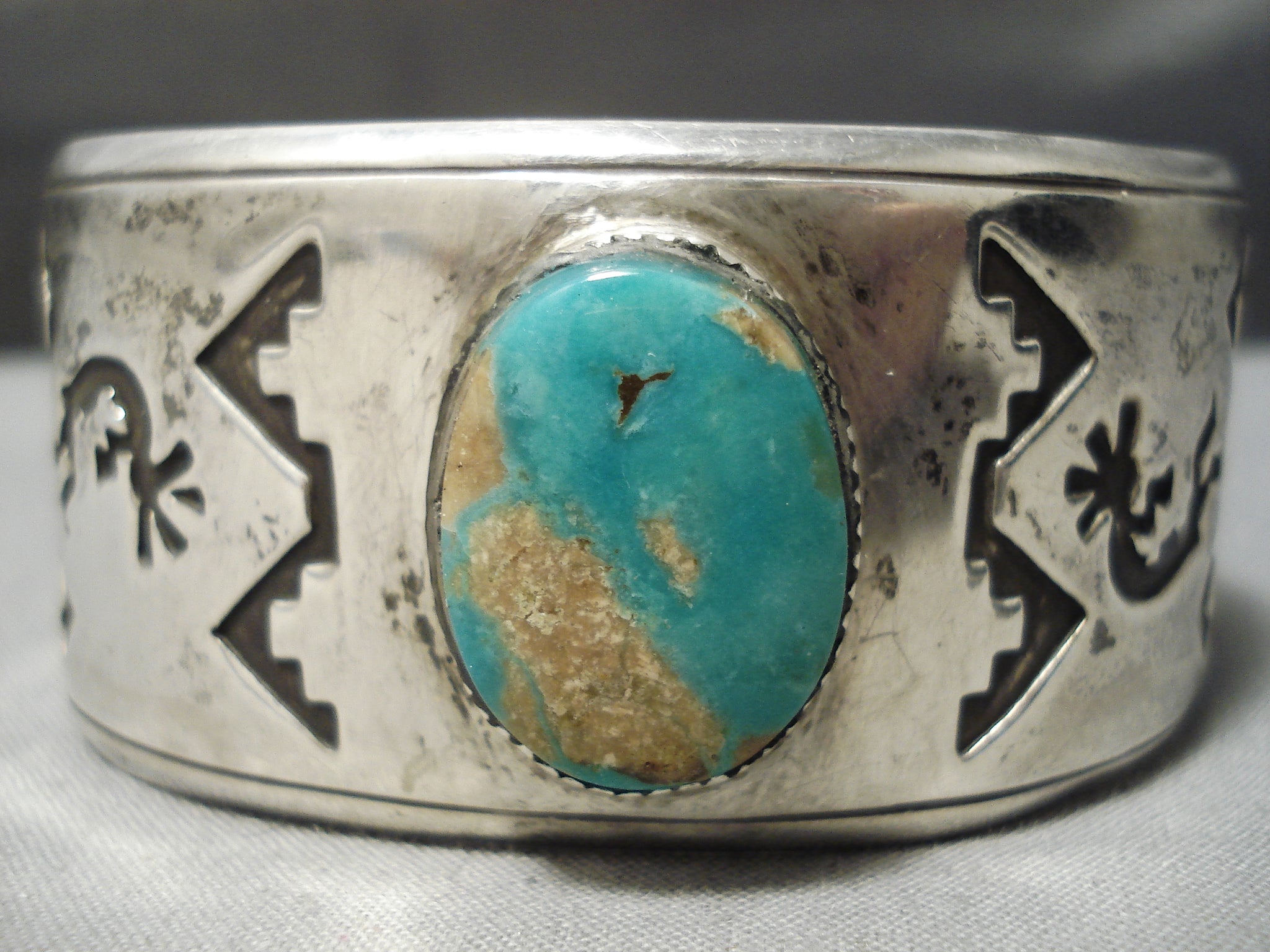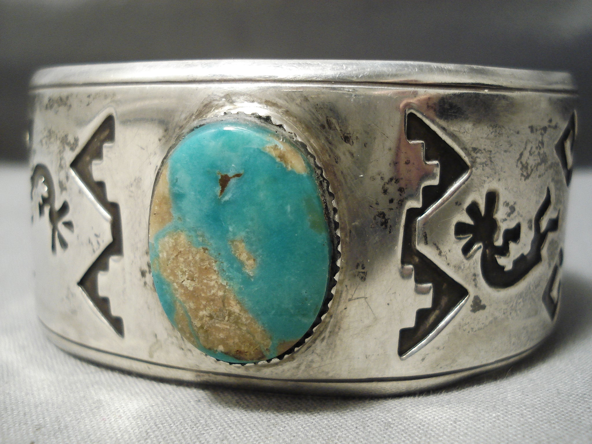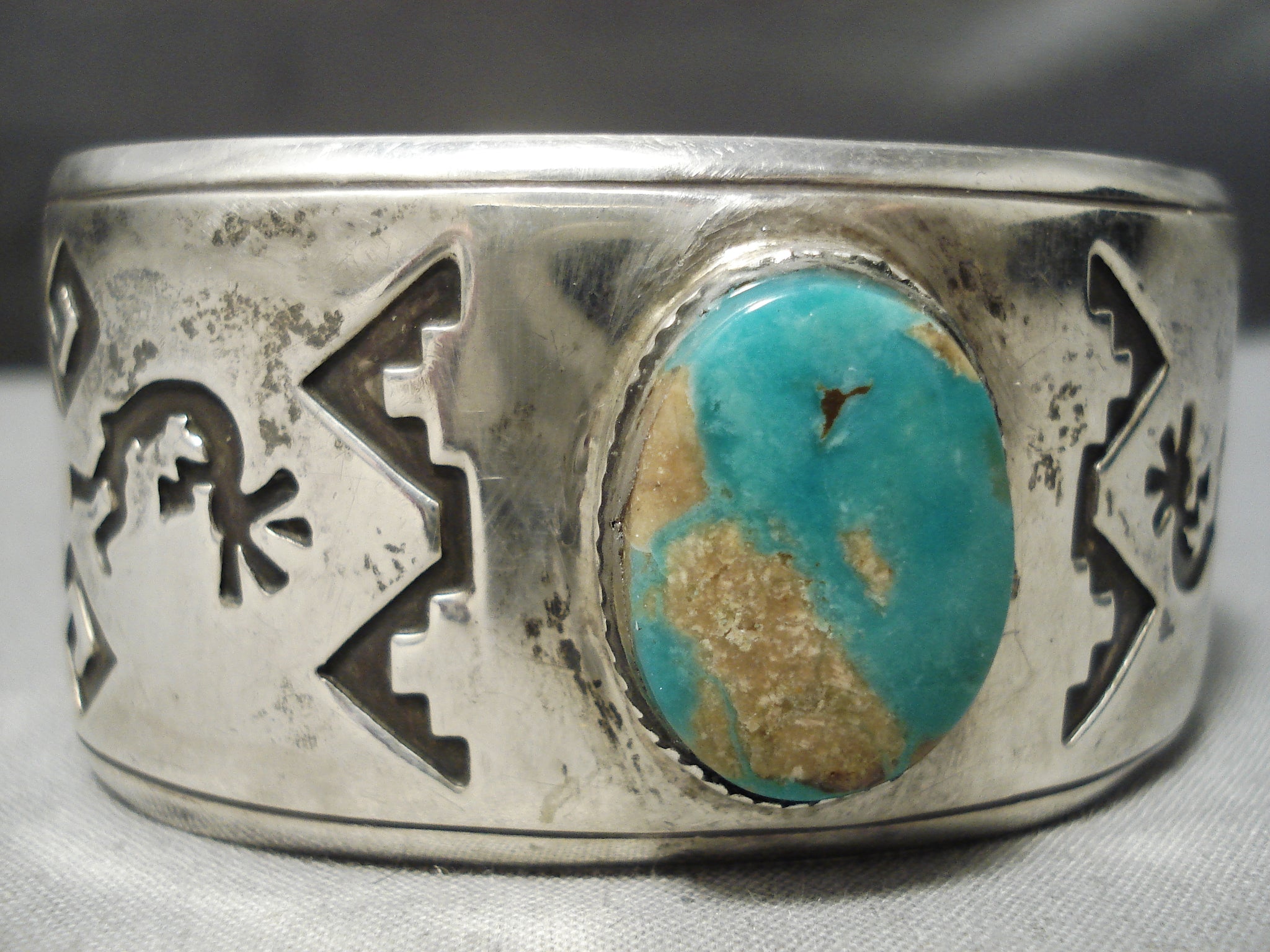 Huge Vintage Native American Navajo Royston Turquoise Sterling Silver Kokopelli Bracelet Old