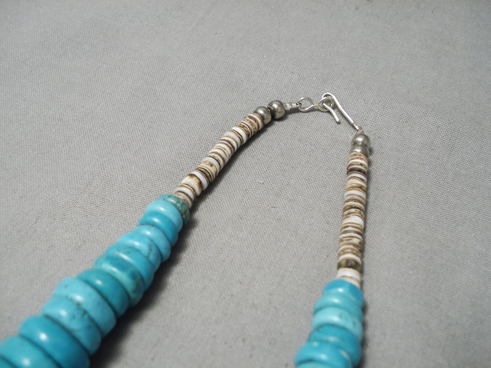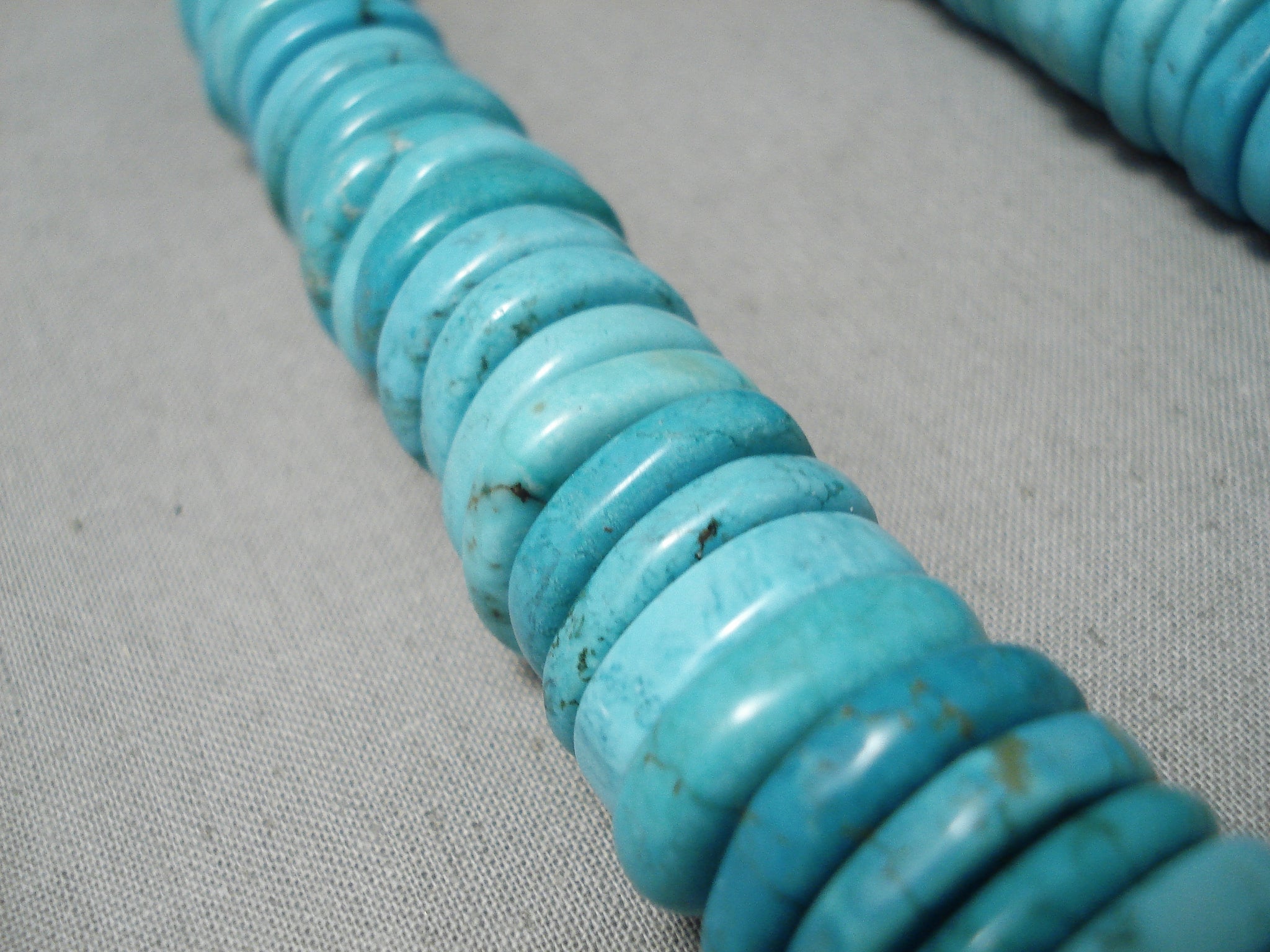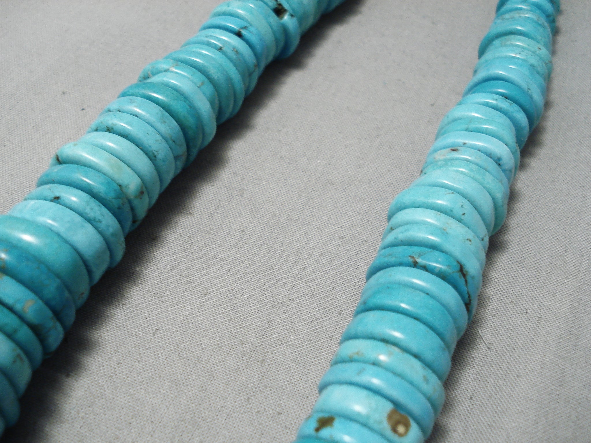 Huge Vintage Native American Navajo Spiderweb Turquoise Disc Sterling Silver Heishi Necklace