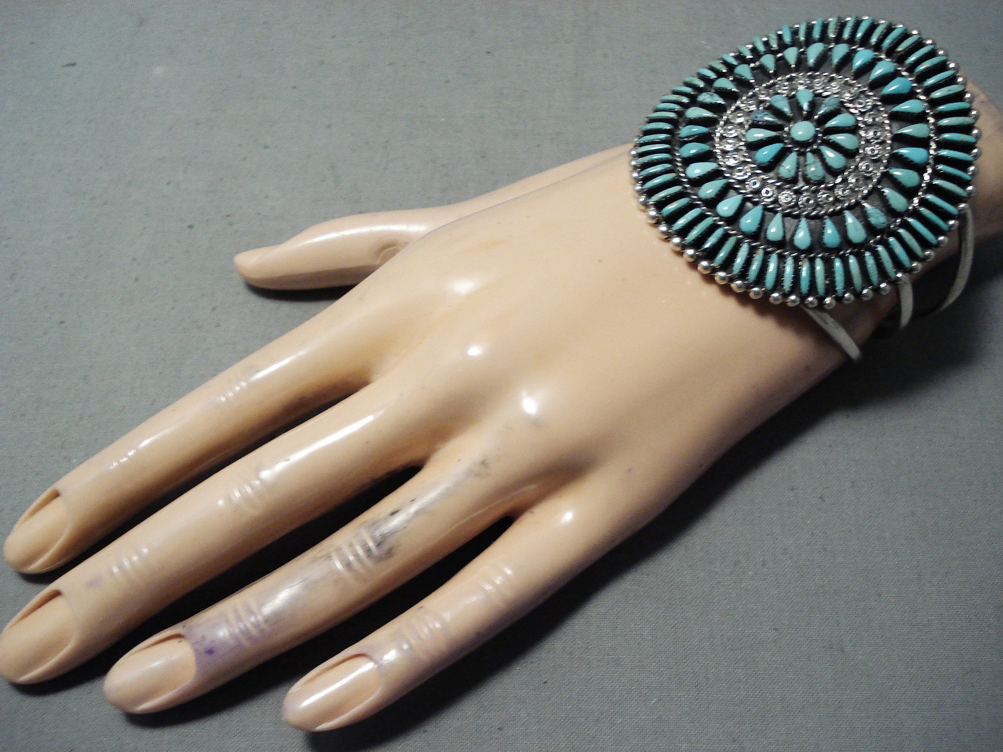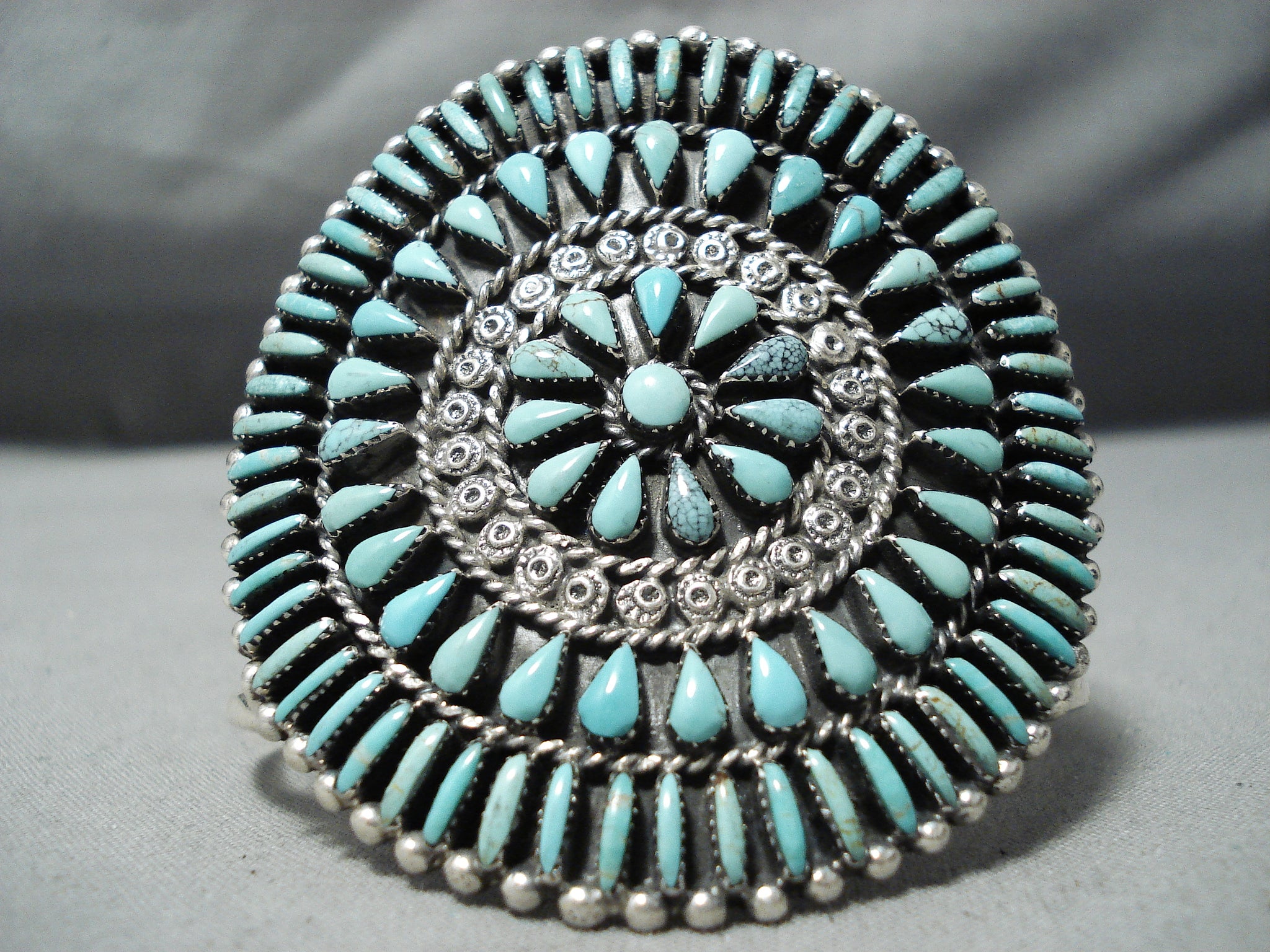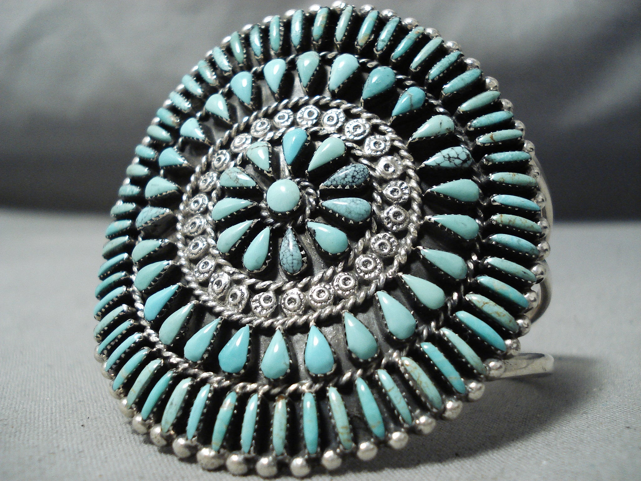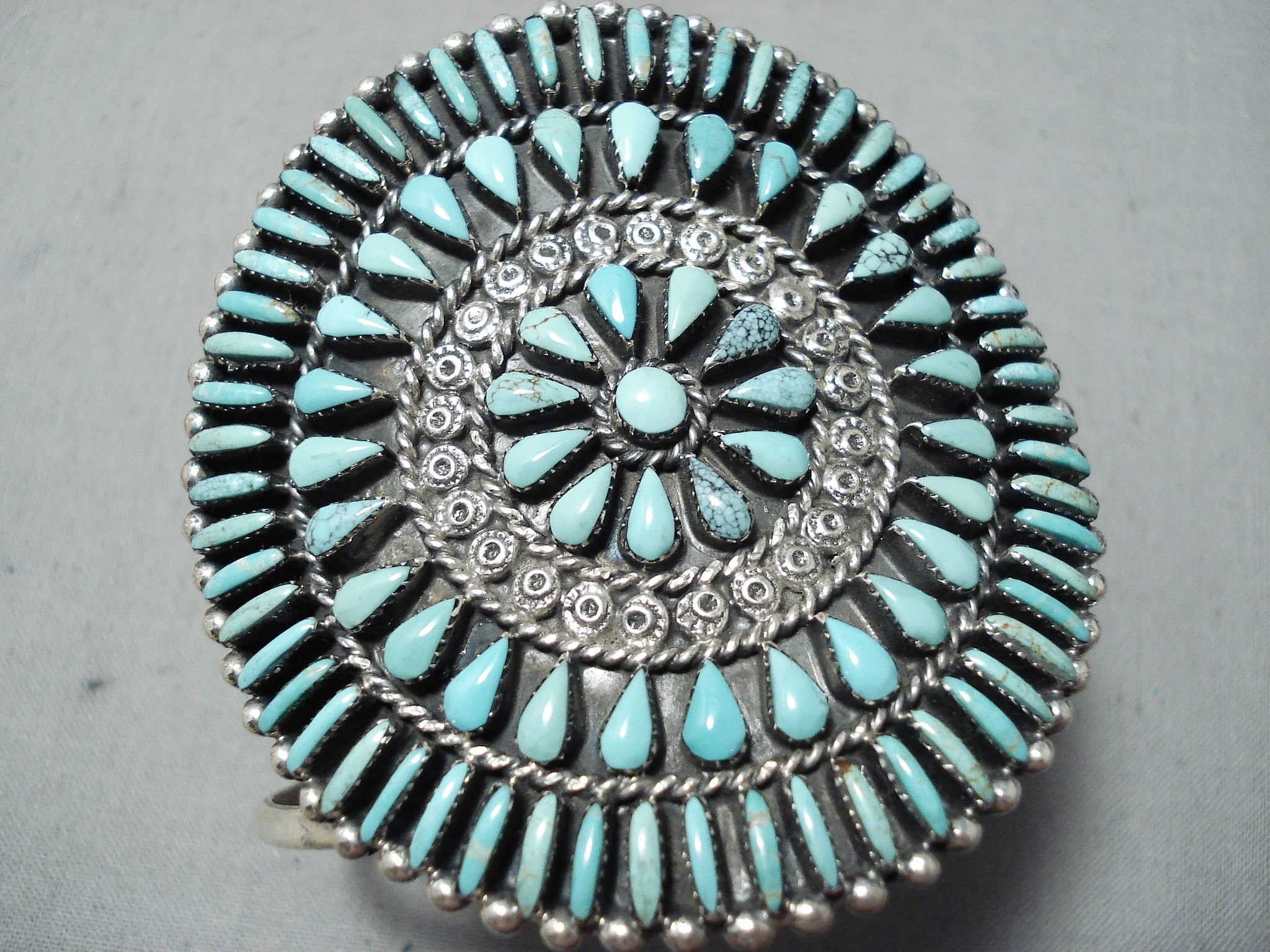 Huge Vintage Native American Navajo Teardrop Turquoise Sterling Silver Bracelet Cuff