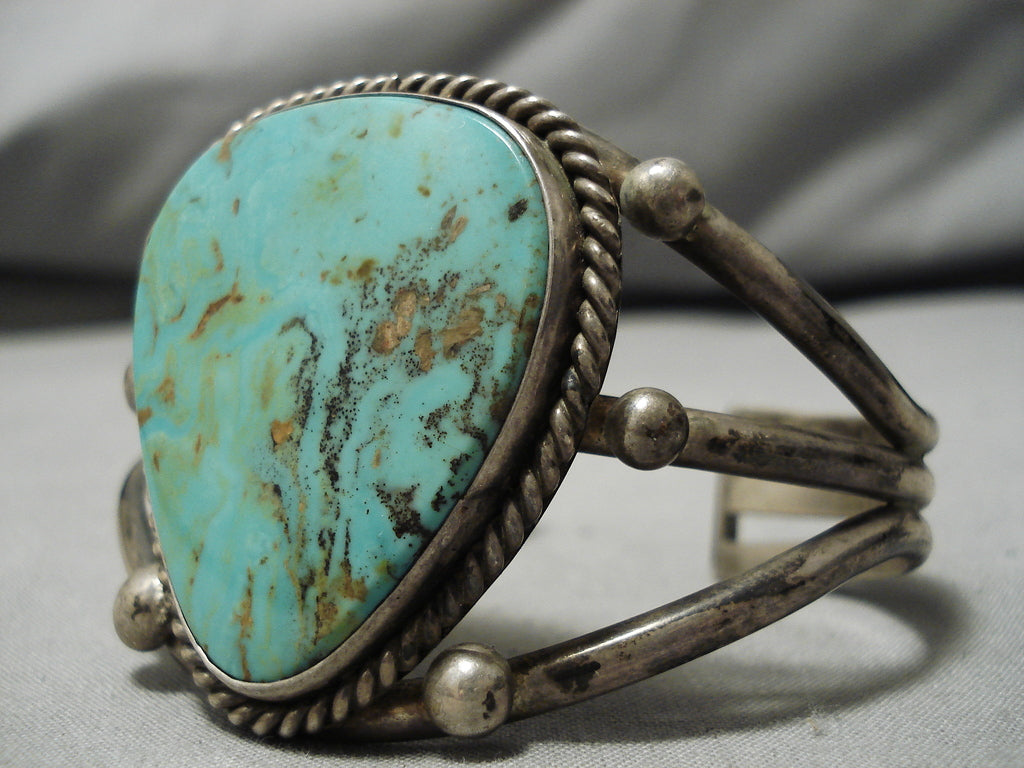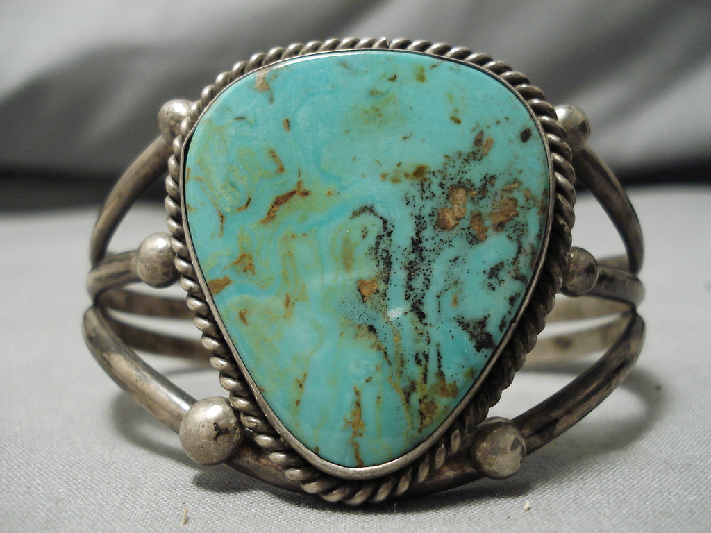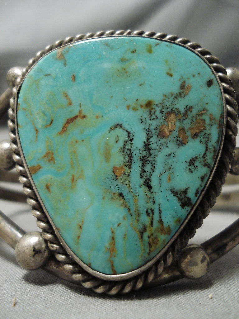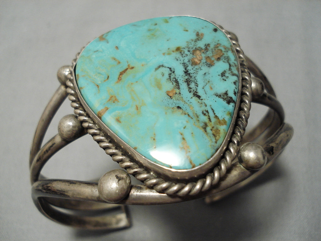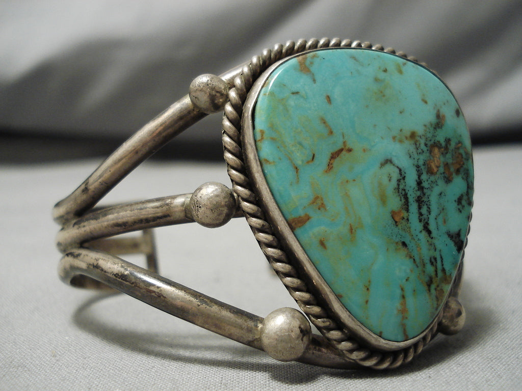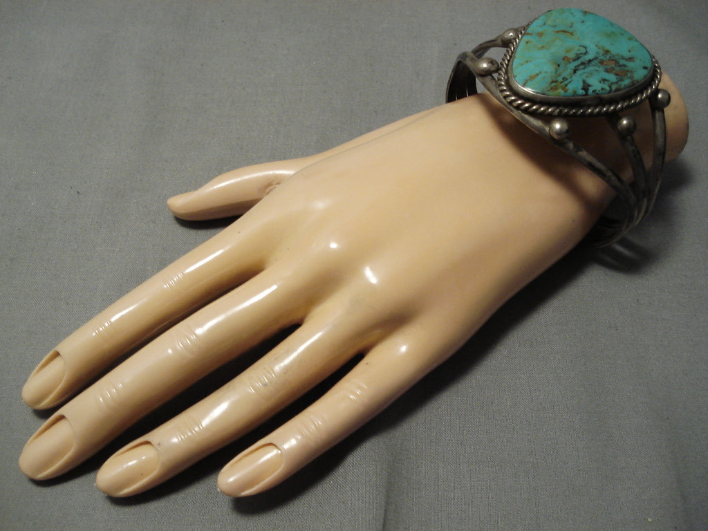 Huge Vintage Native American Navajo Tom Begay Green Turquyoise Sterling Silver Bracelet Cuff Old