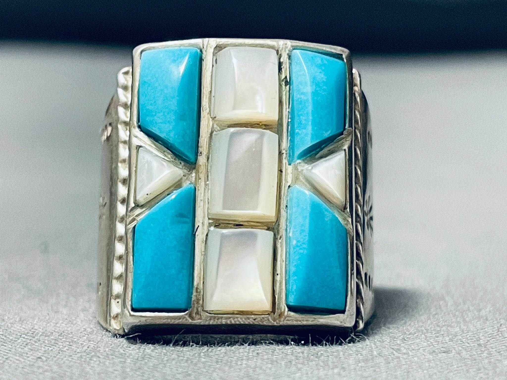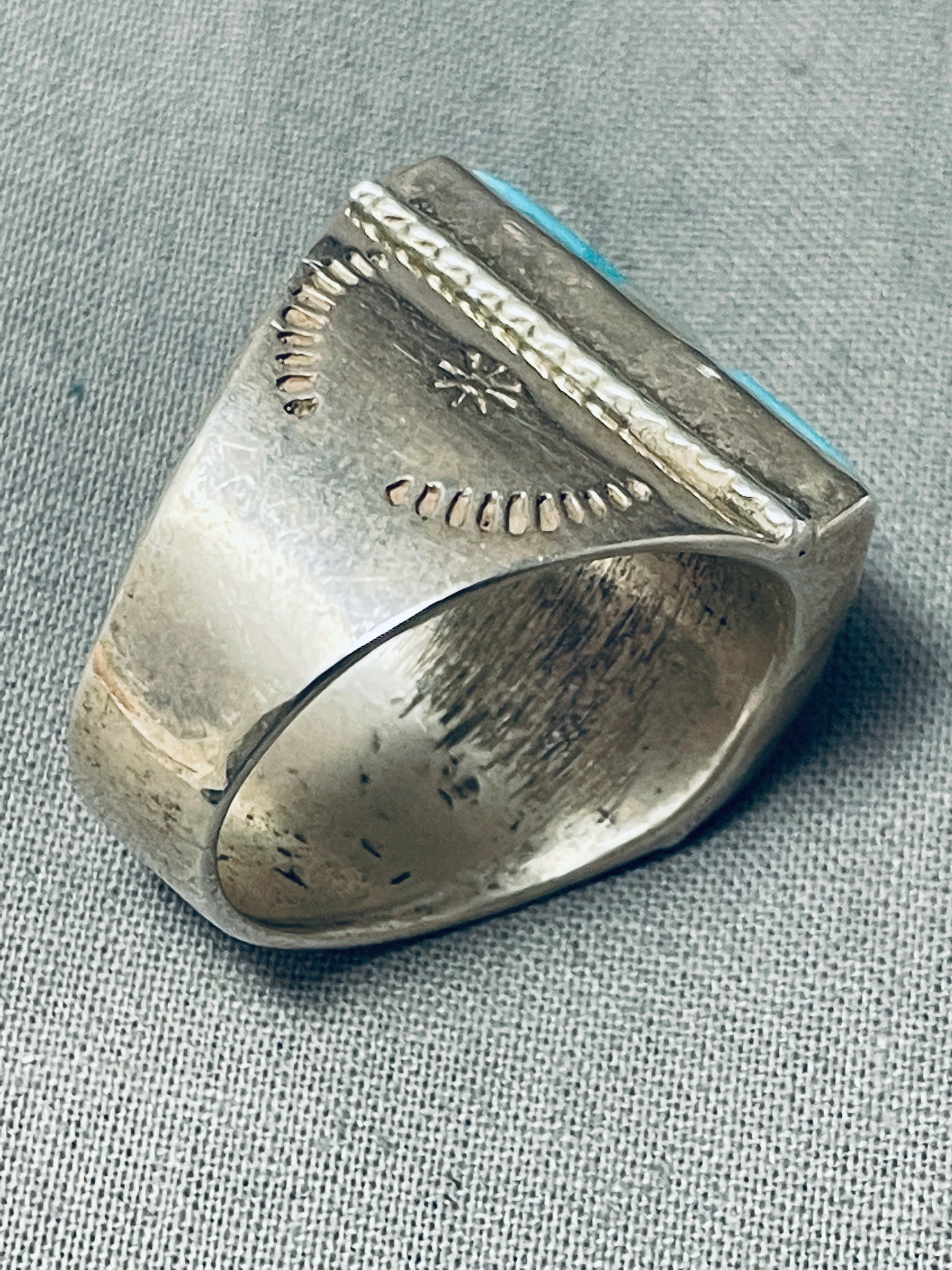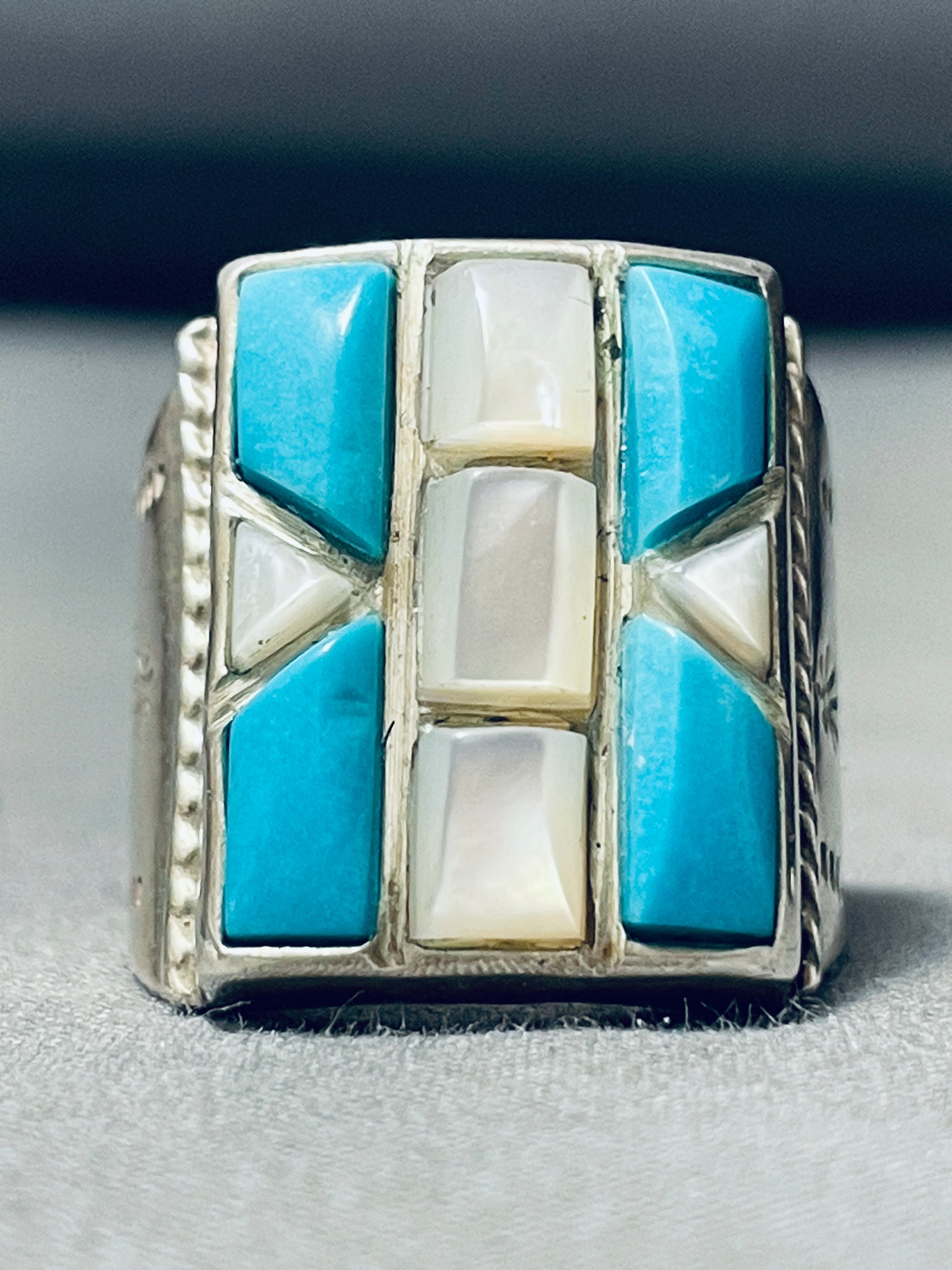 Huge Vintage Native American Navajo Turquoise Inlay Sterling Silver Ring