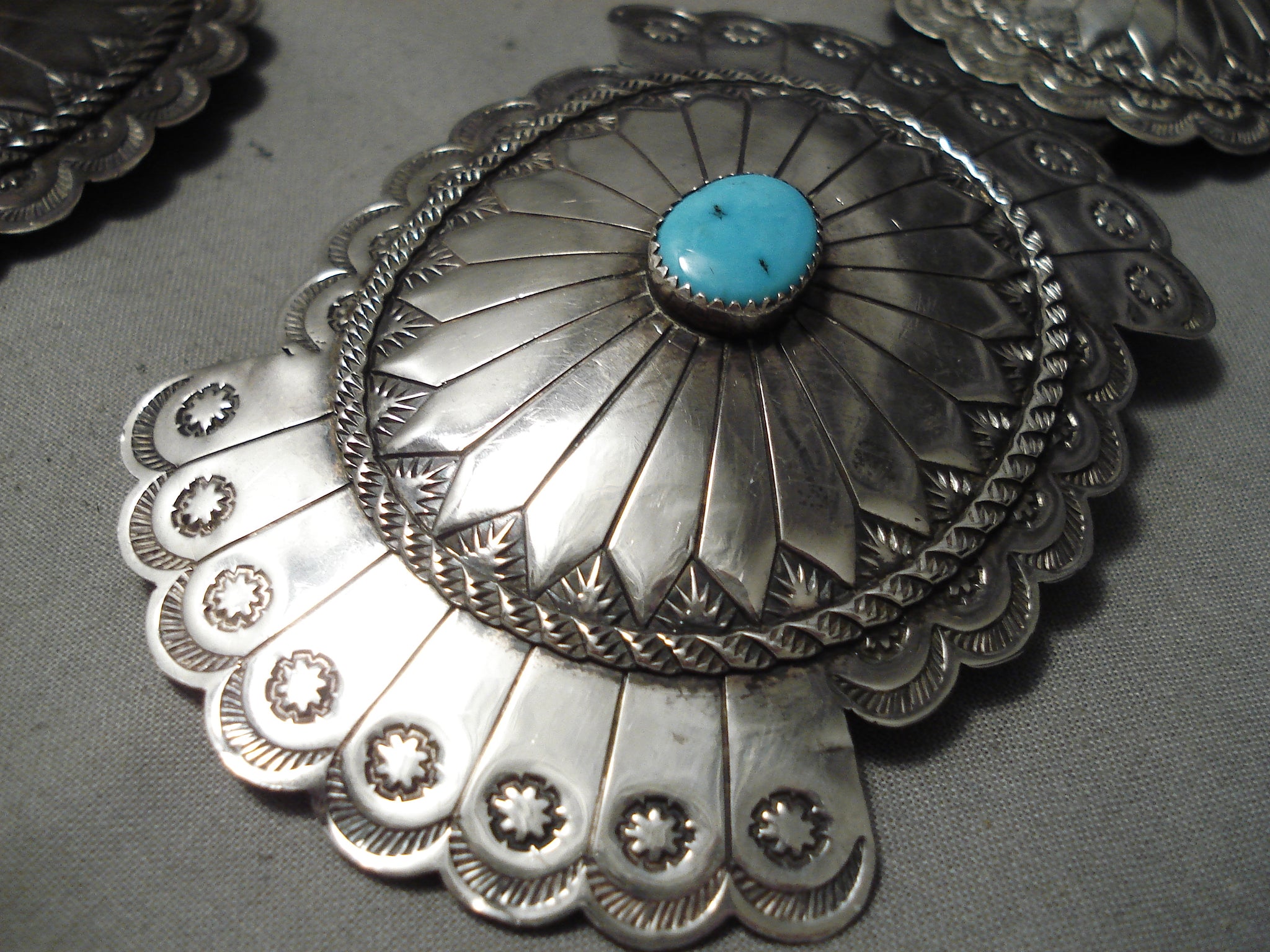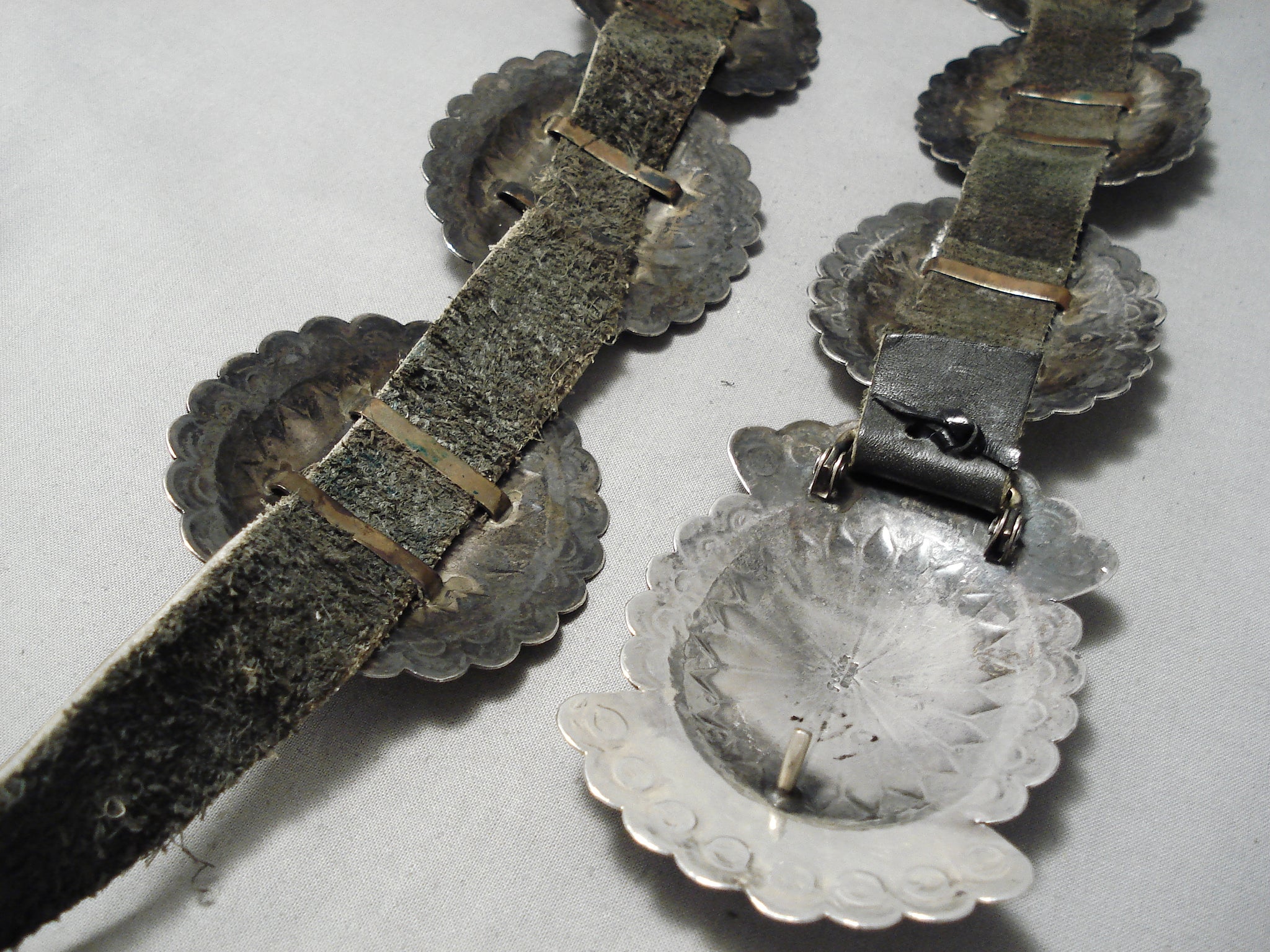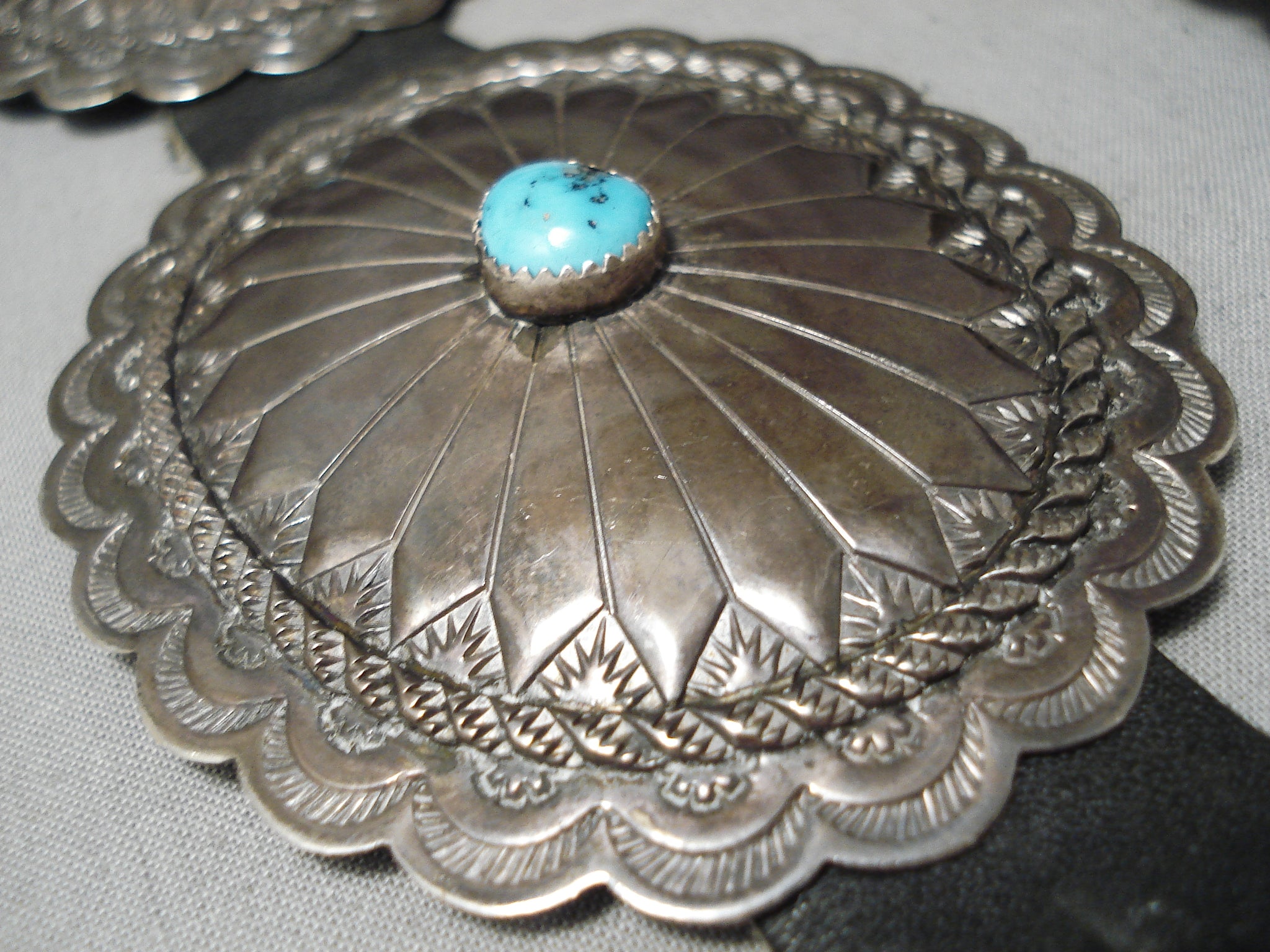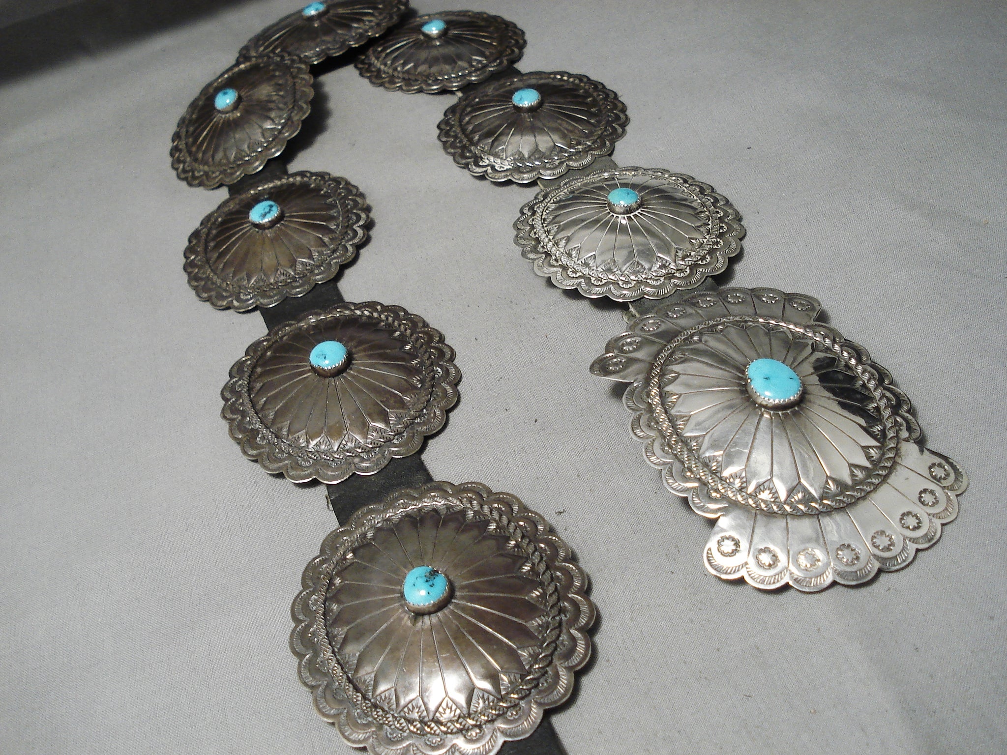 Huge Vintage Native American Navajo Turquoise Sterling Silver Hand Wrought Concho Belt Old