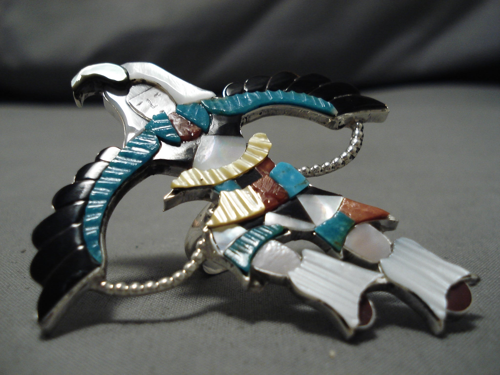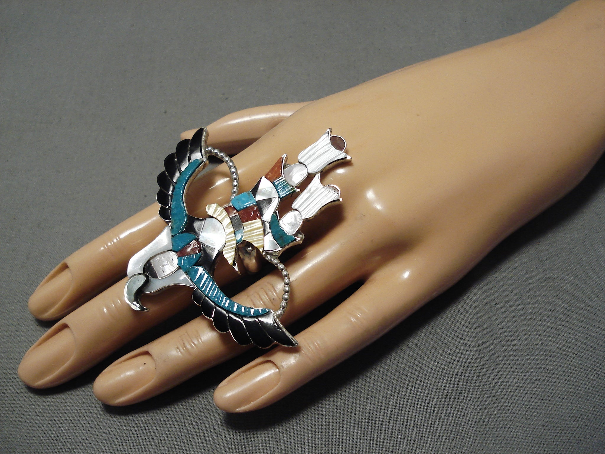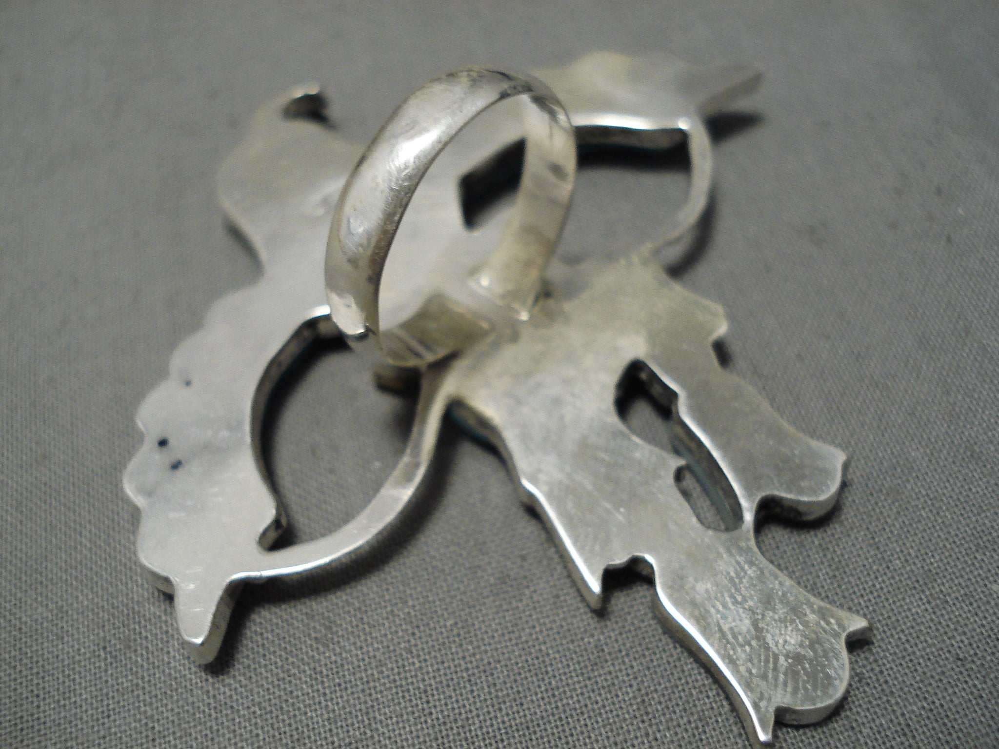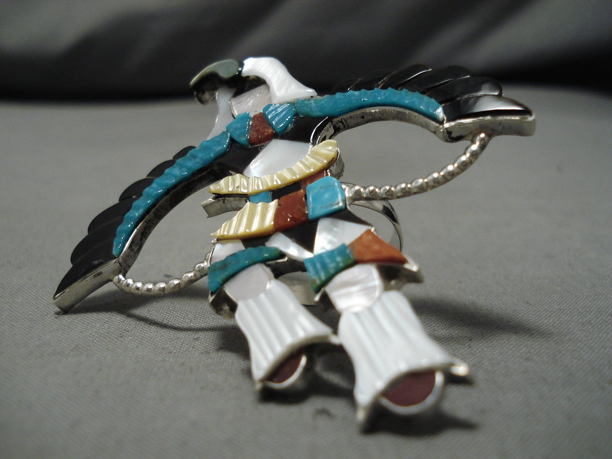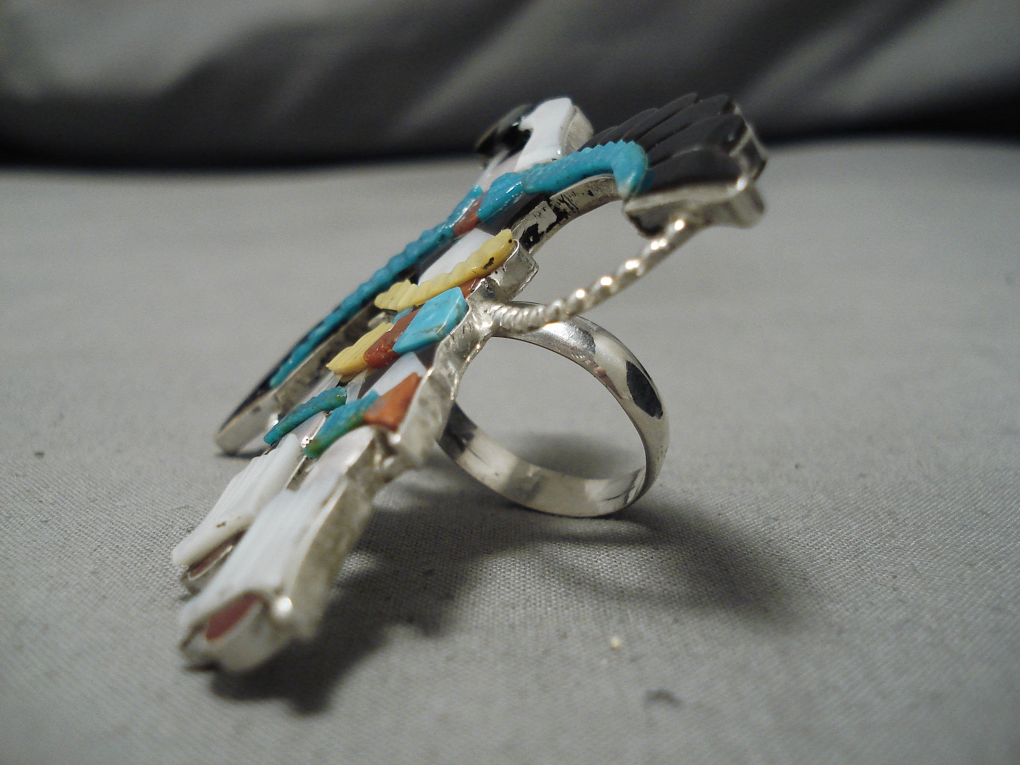 Huge Vintage Native American Zuni Eagle Dancer Sterling Silver Turquoise Ring