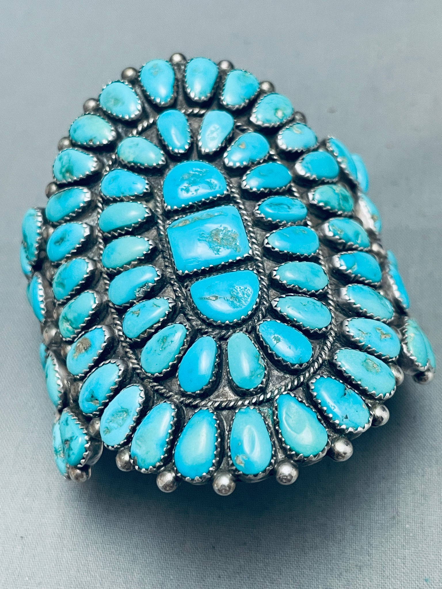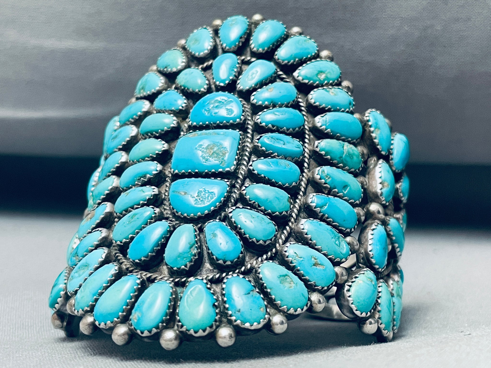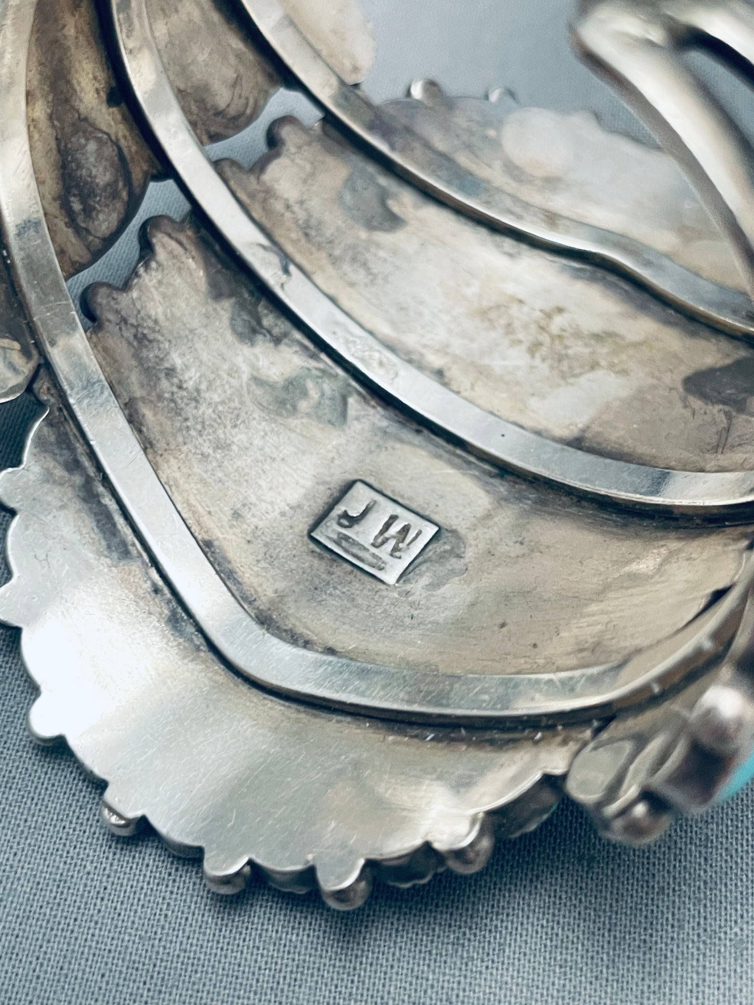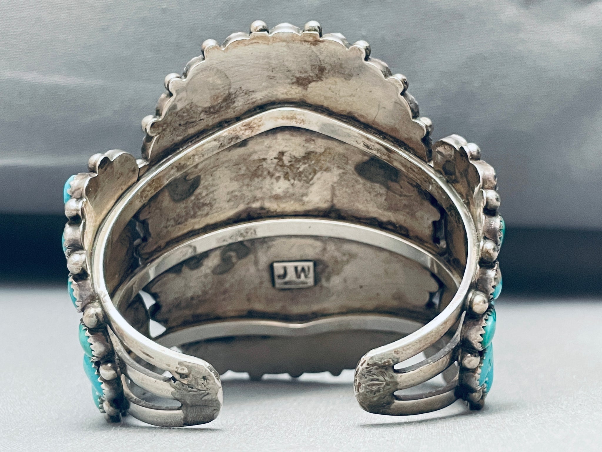 Huge Vintage Native American Zuni Judy Wallace Turquoise Sterling Silver Bracelet