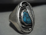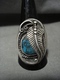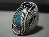 Huge Vintage Navajo Blue Diamond Turquoise Native American Jewelry Silver Leaf Ring Old