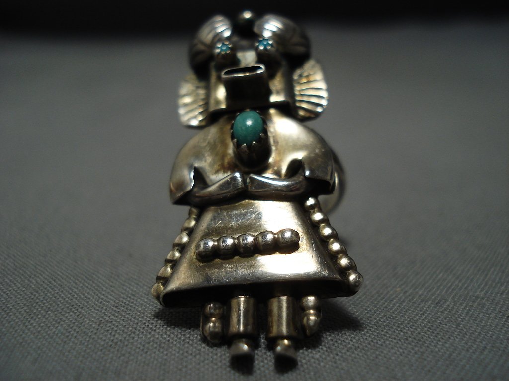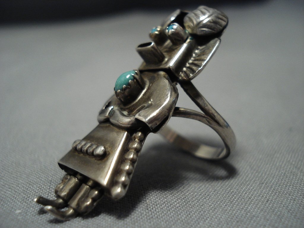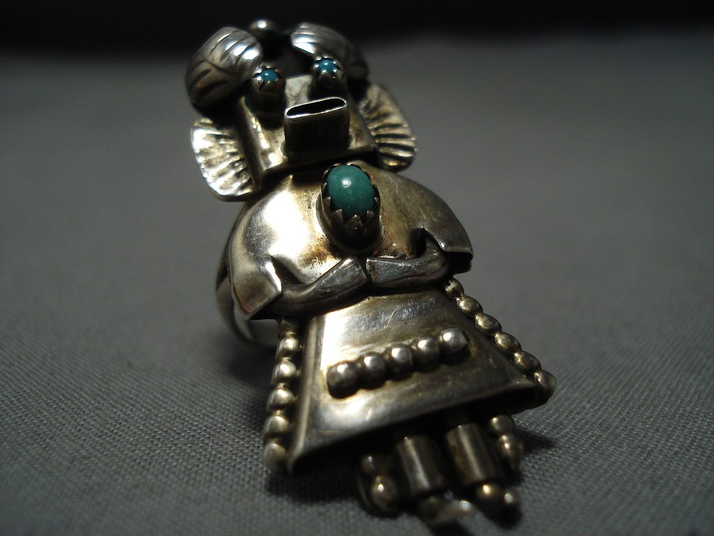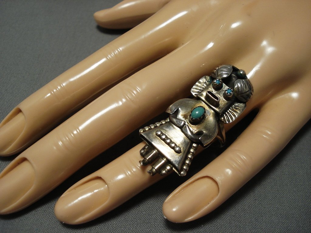 Huge!! Vintqage Native American Jewelry Navajo Turquoise Sterling Silver Kachina Ring Old