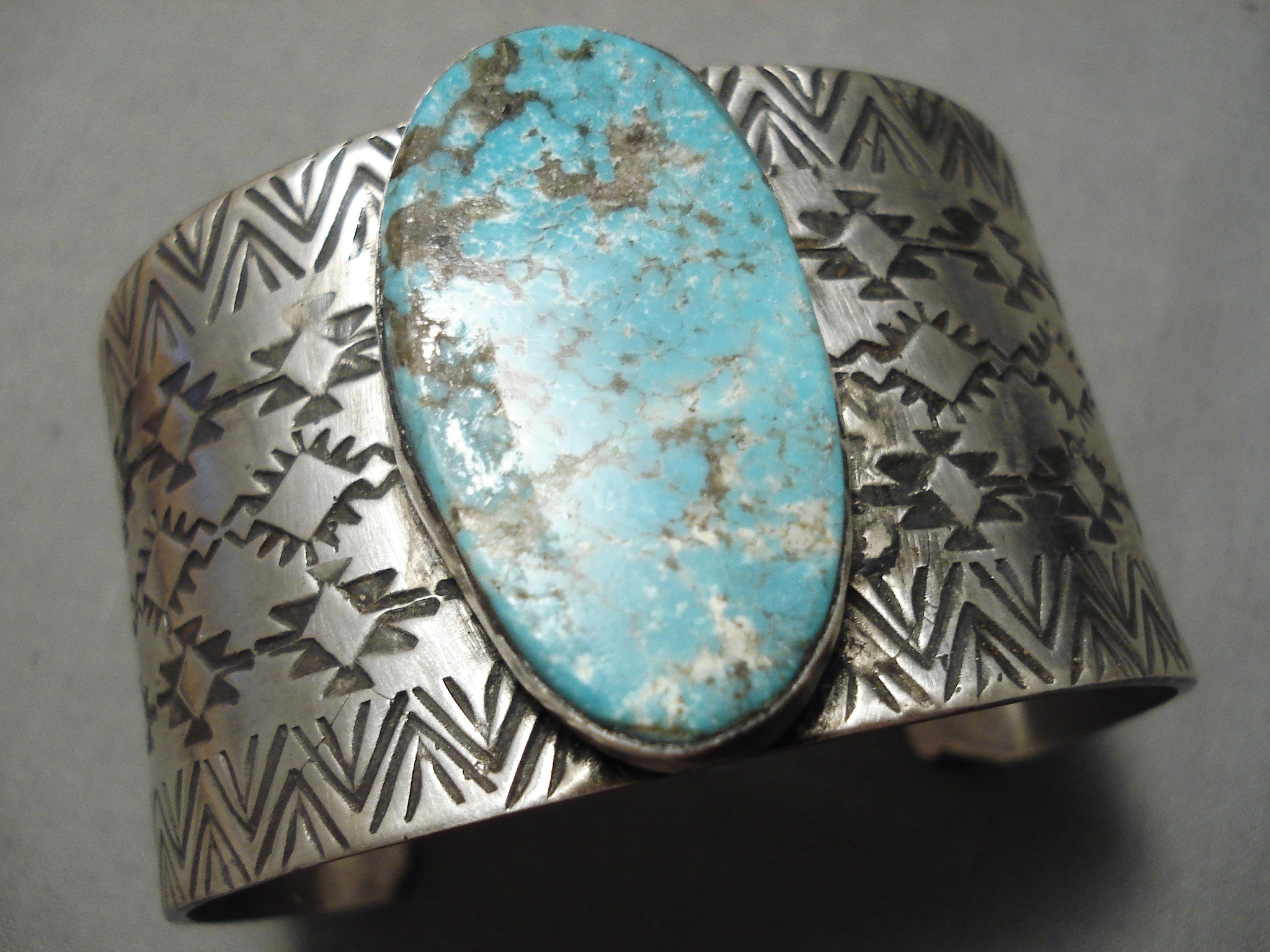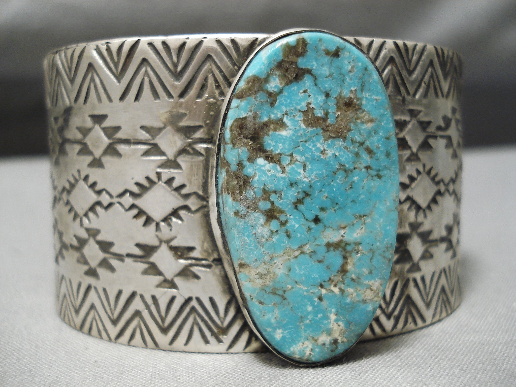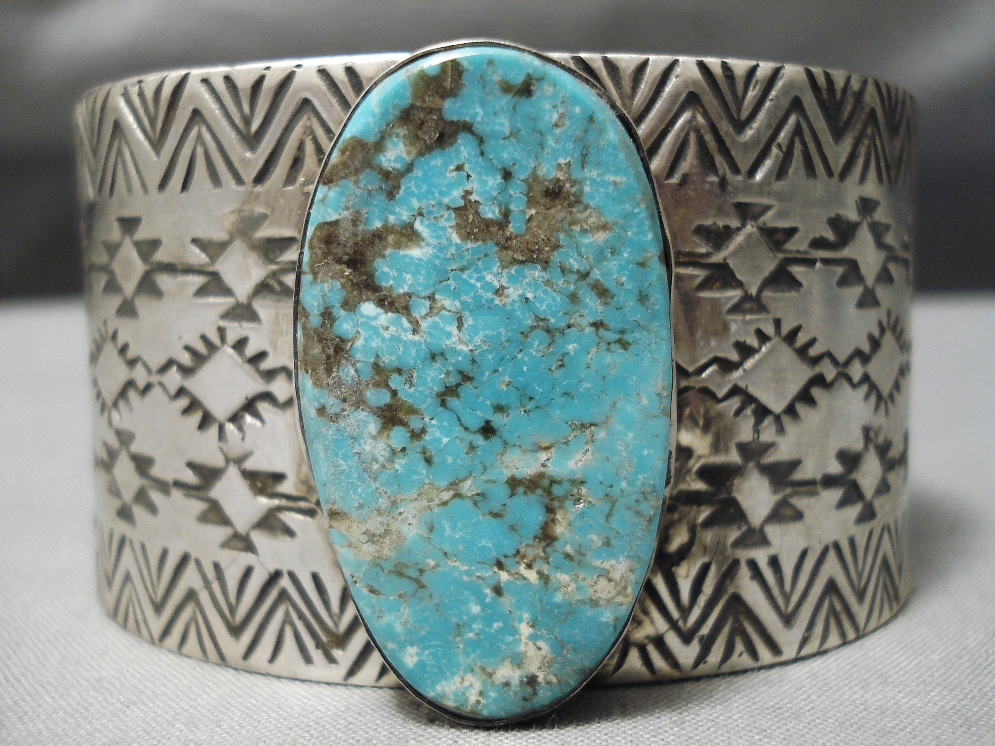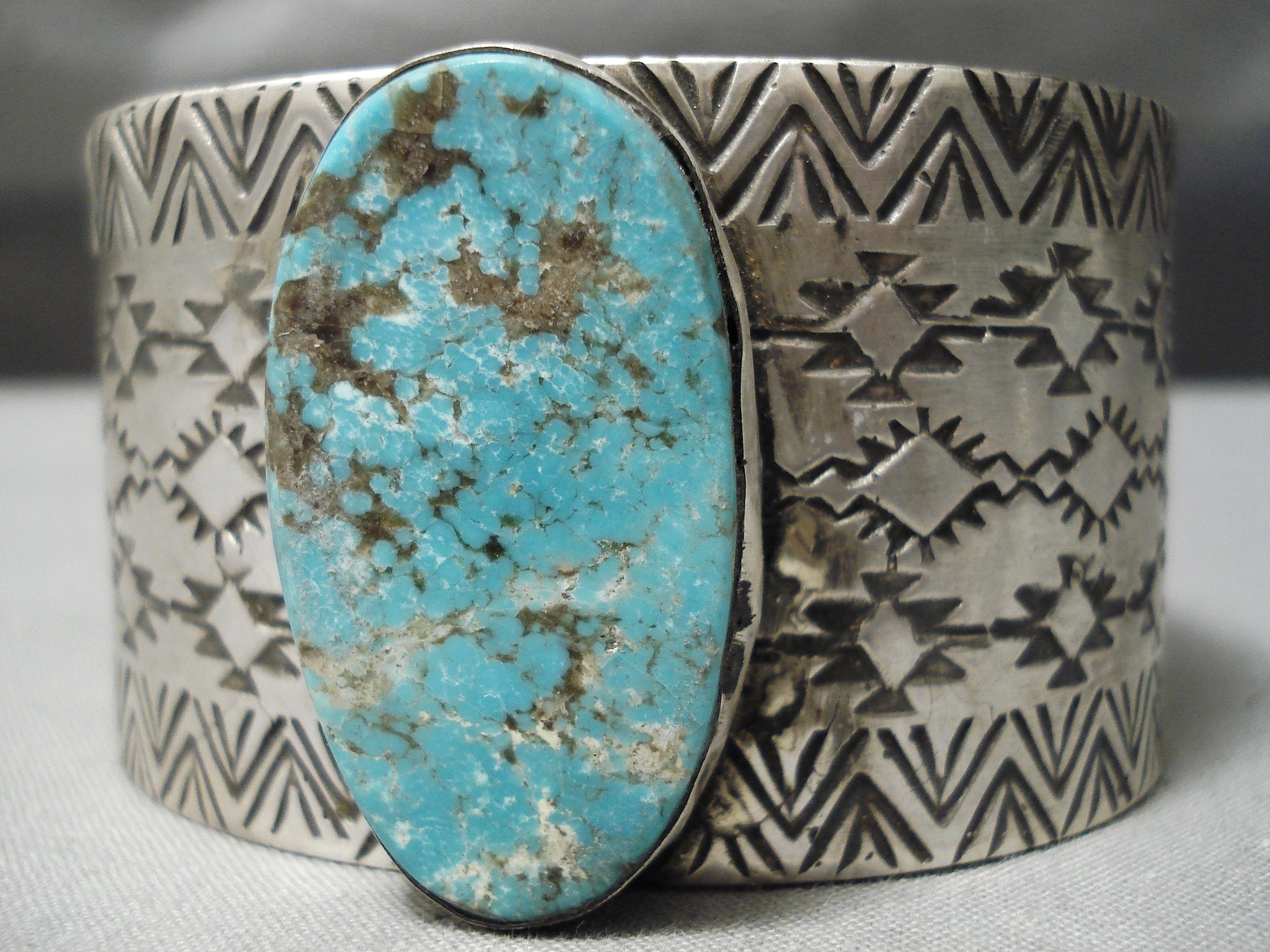 Huge Wide Navajo Blue Turquoise Native American Sterling Silver Bracelet