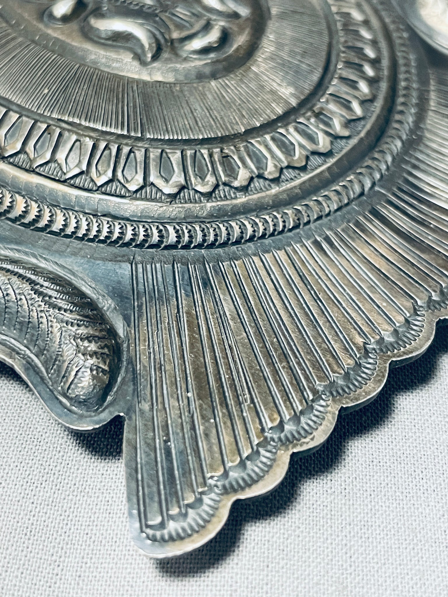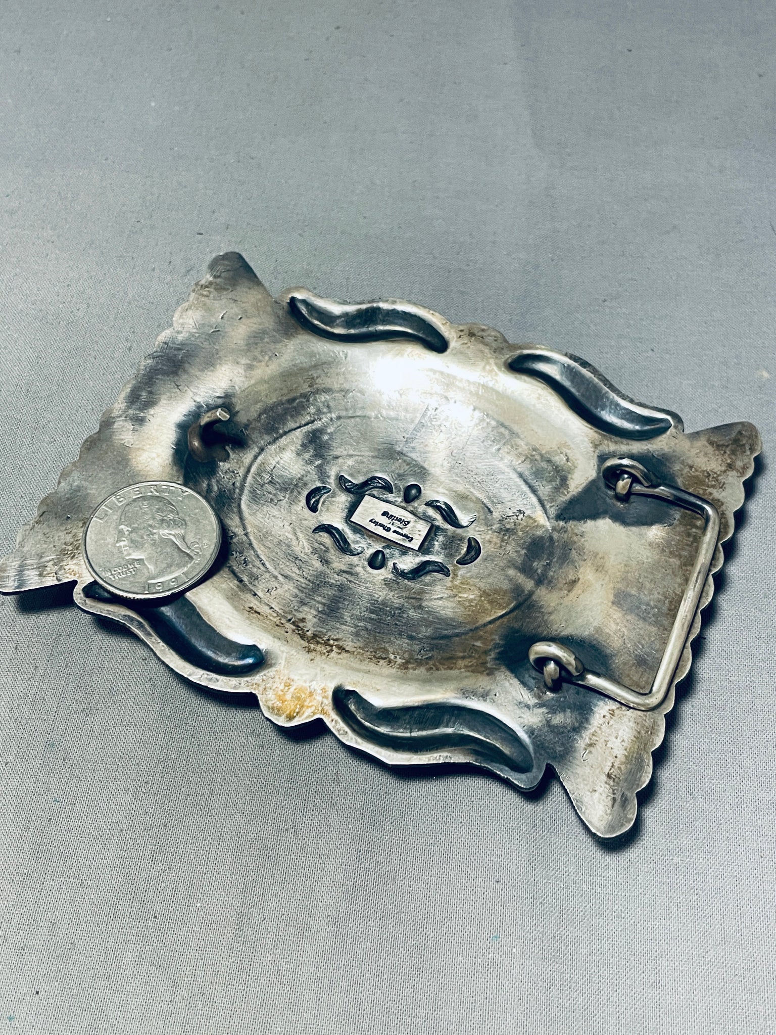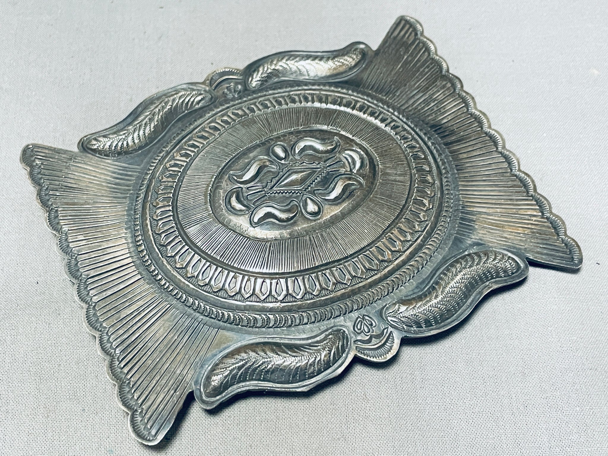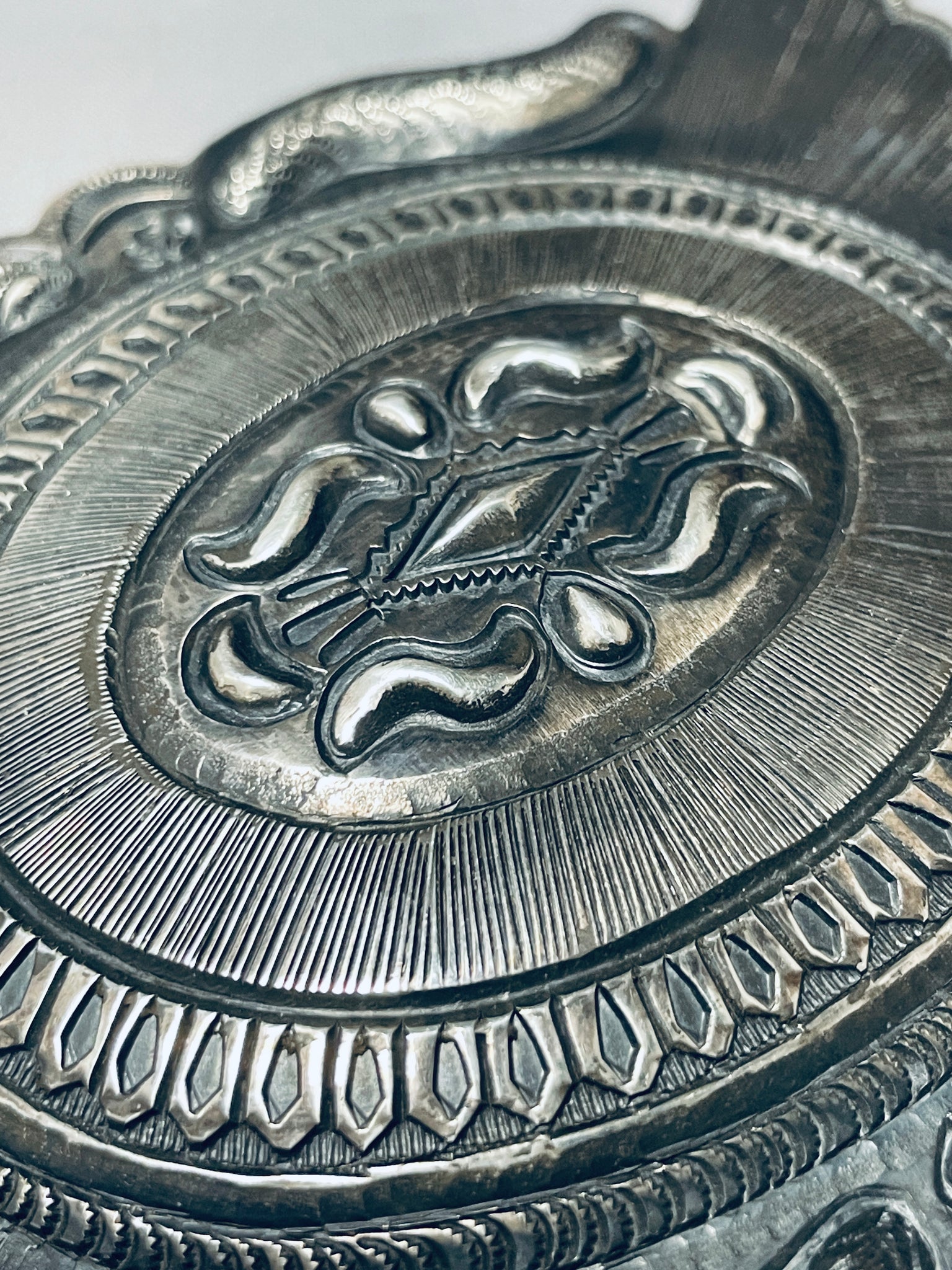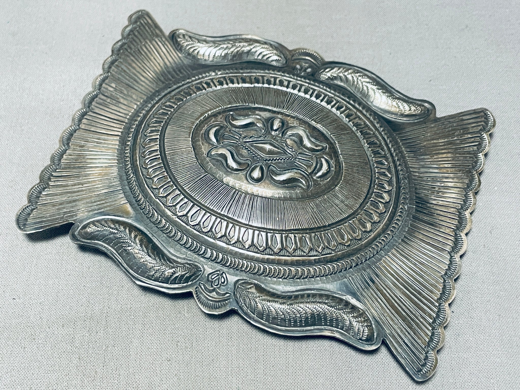 Huuuuuuggggeee Vintage Native American Navajo Detailed Sterling Silver Buckle 129 Grams