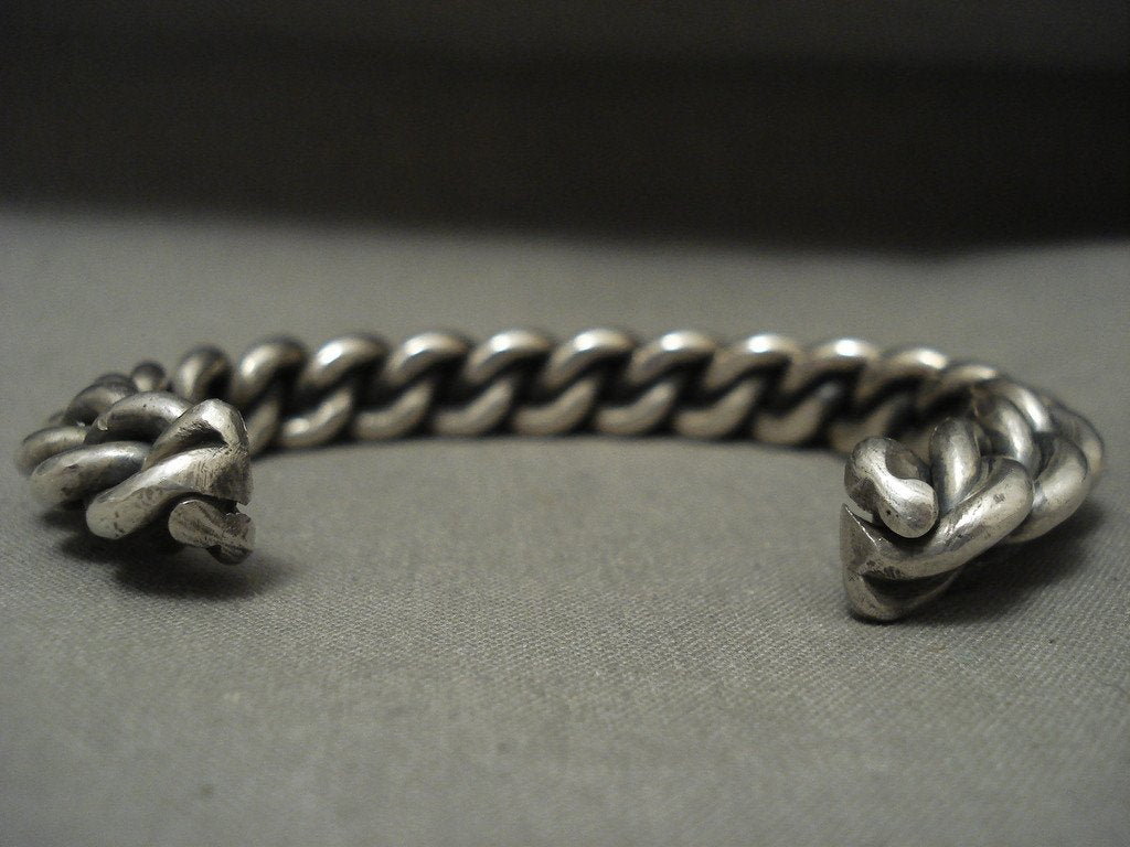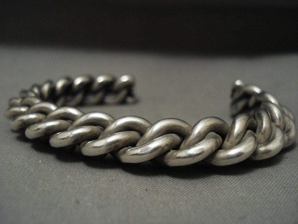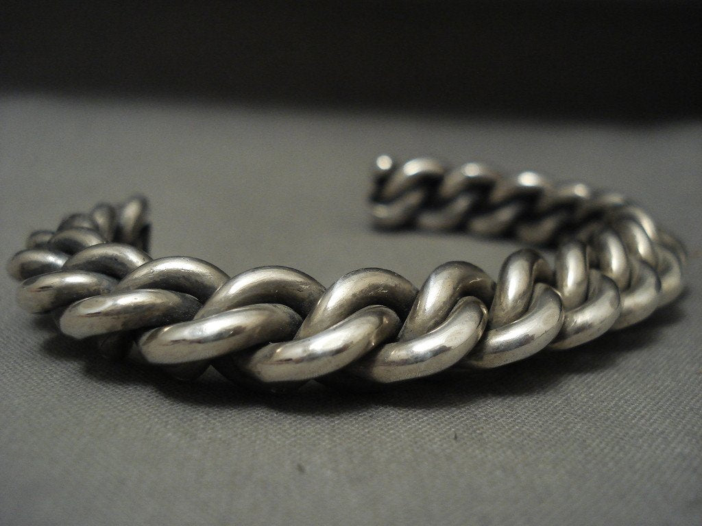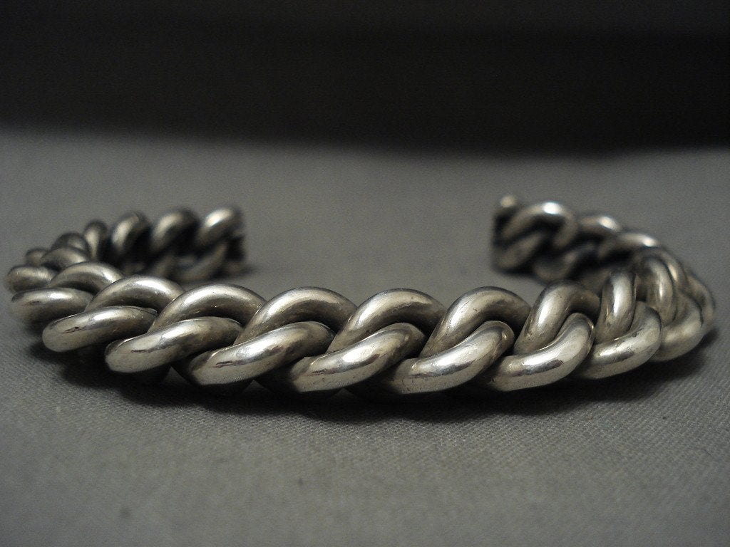 Hvy And Very Thick Coiled 'Hand Woven' Navajo Sterling Native American Jewelry Silver Bracelet