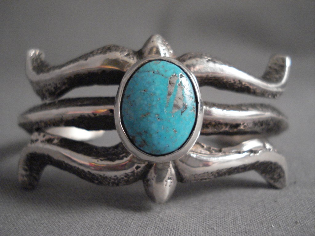 Hvy Navajo Tufa Casted Native American Jewelry Silver Earth Blue Turquoise Native American Jewelry Silver Bracelet