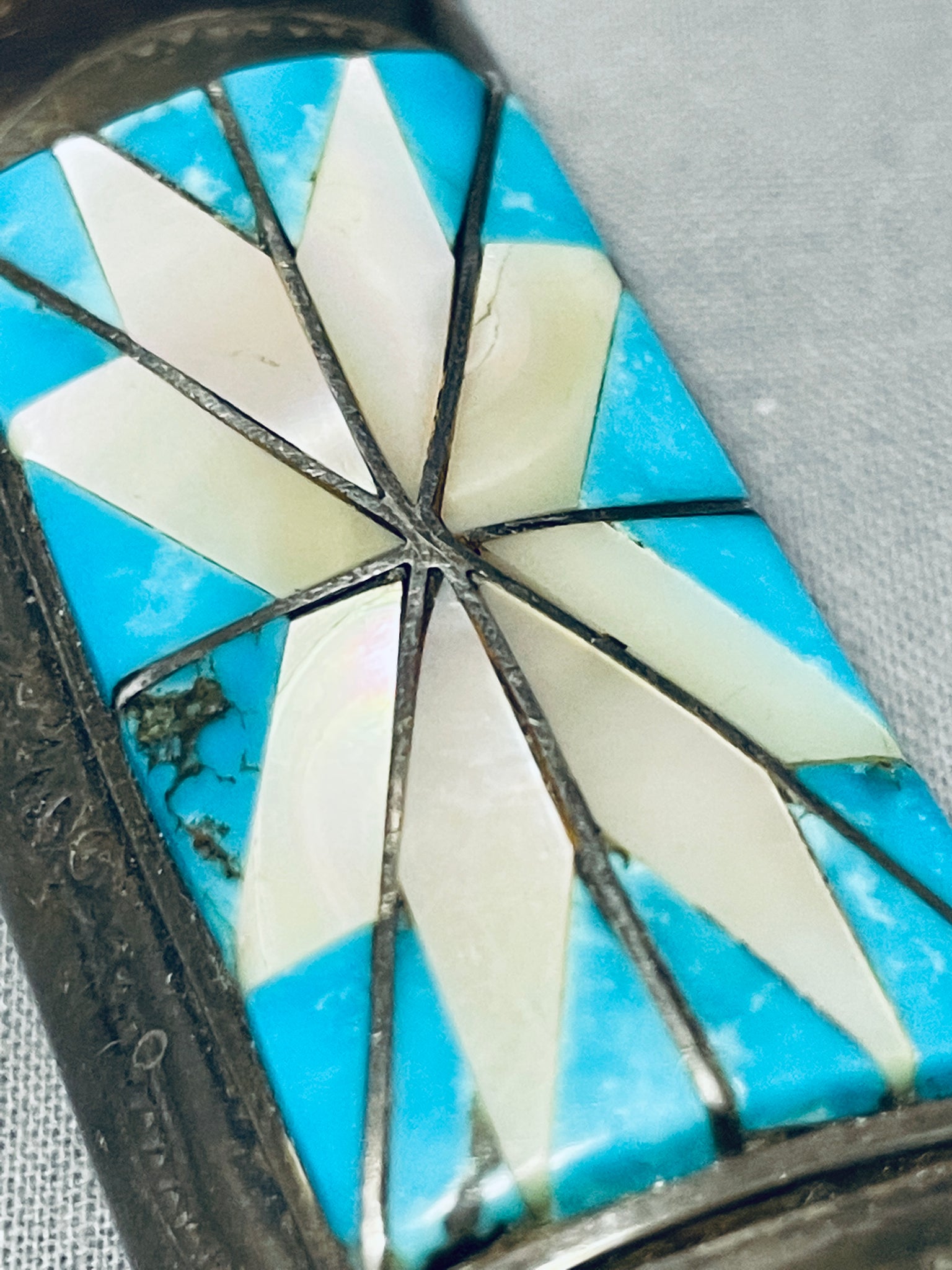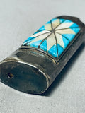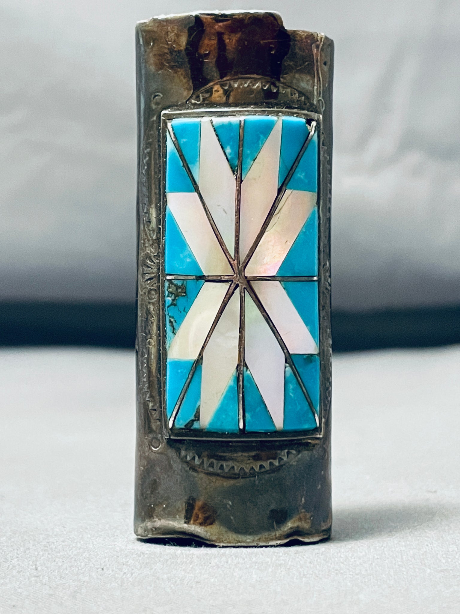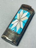Hypnotic Vintage Native American Navajo Inlay Turquoise Mother Of Pearl Silver Lighter Case