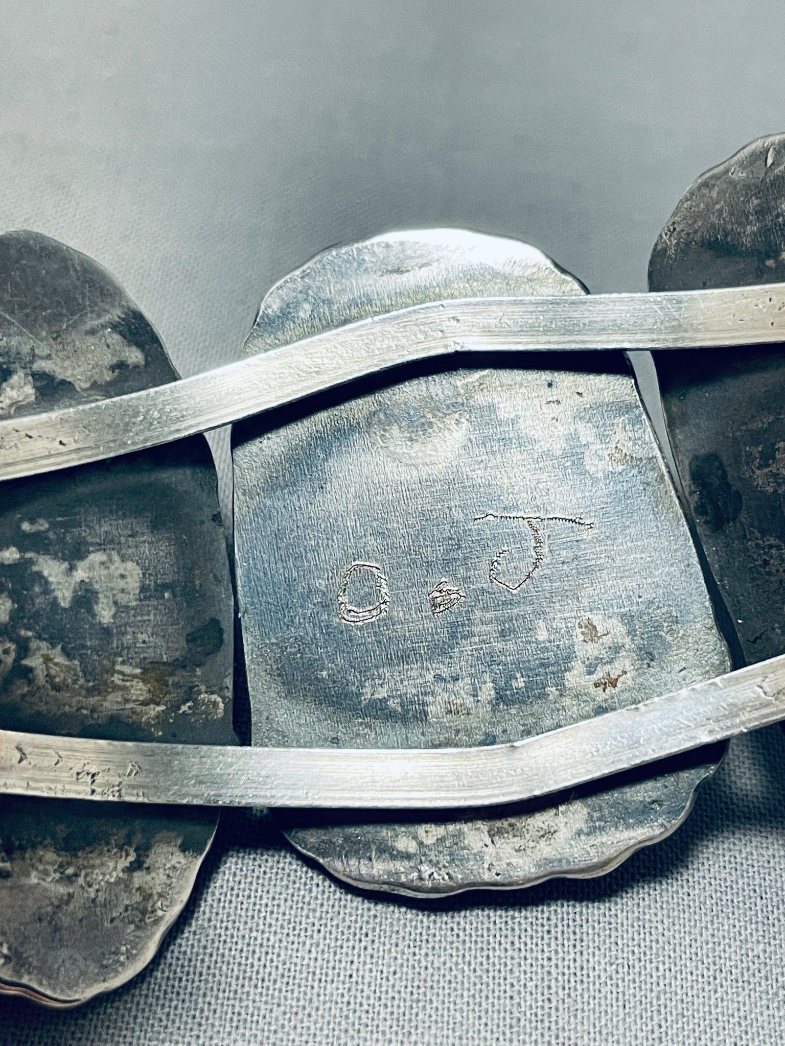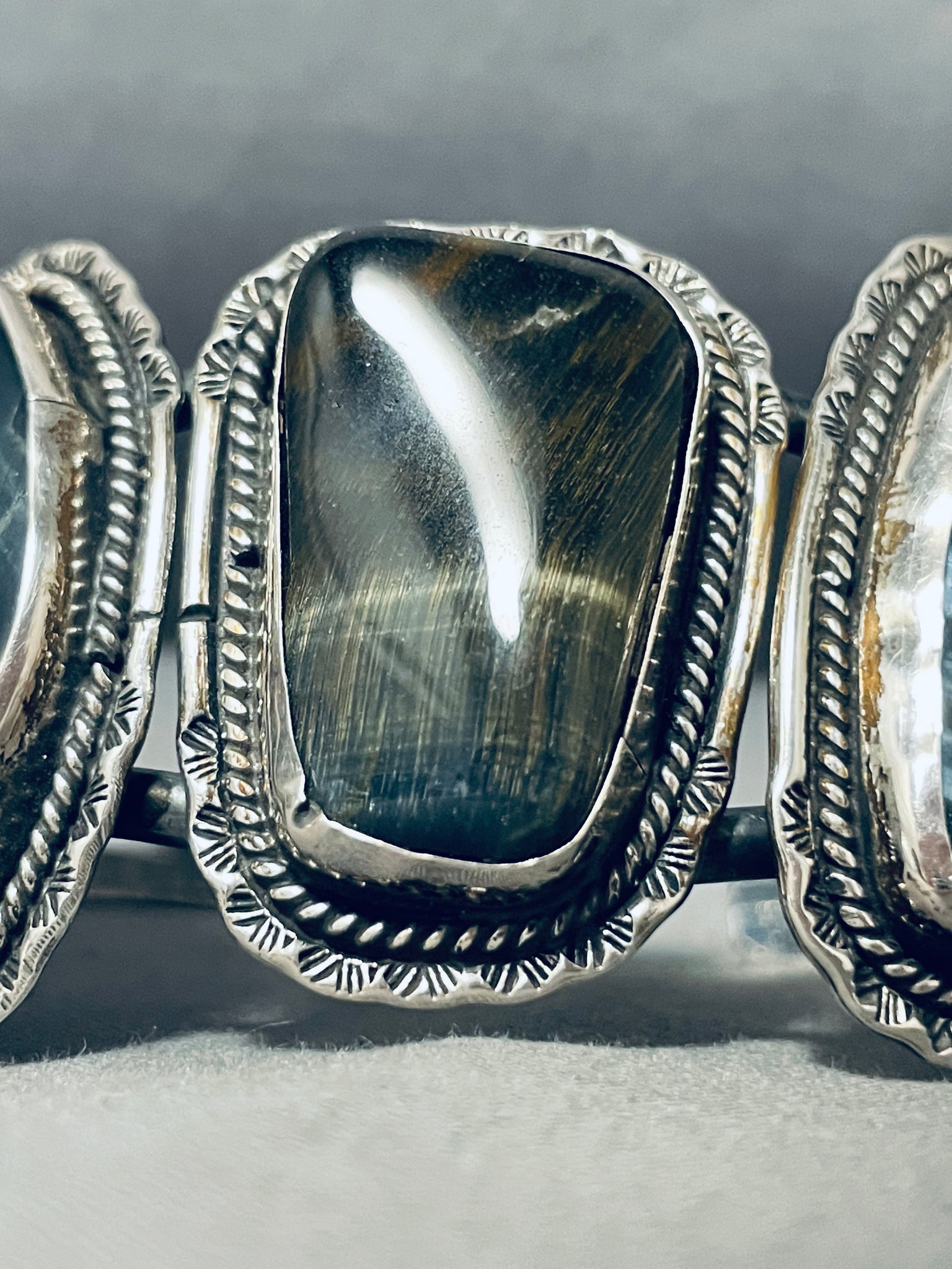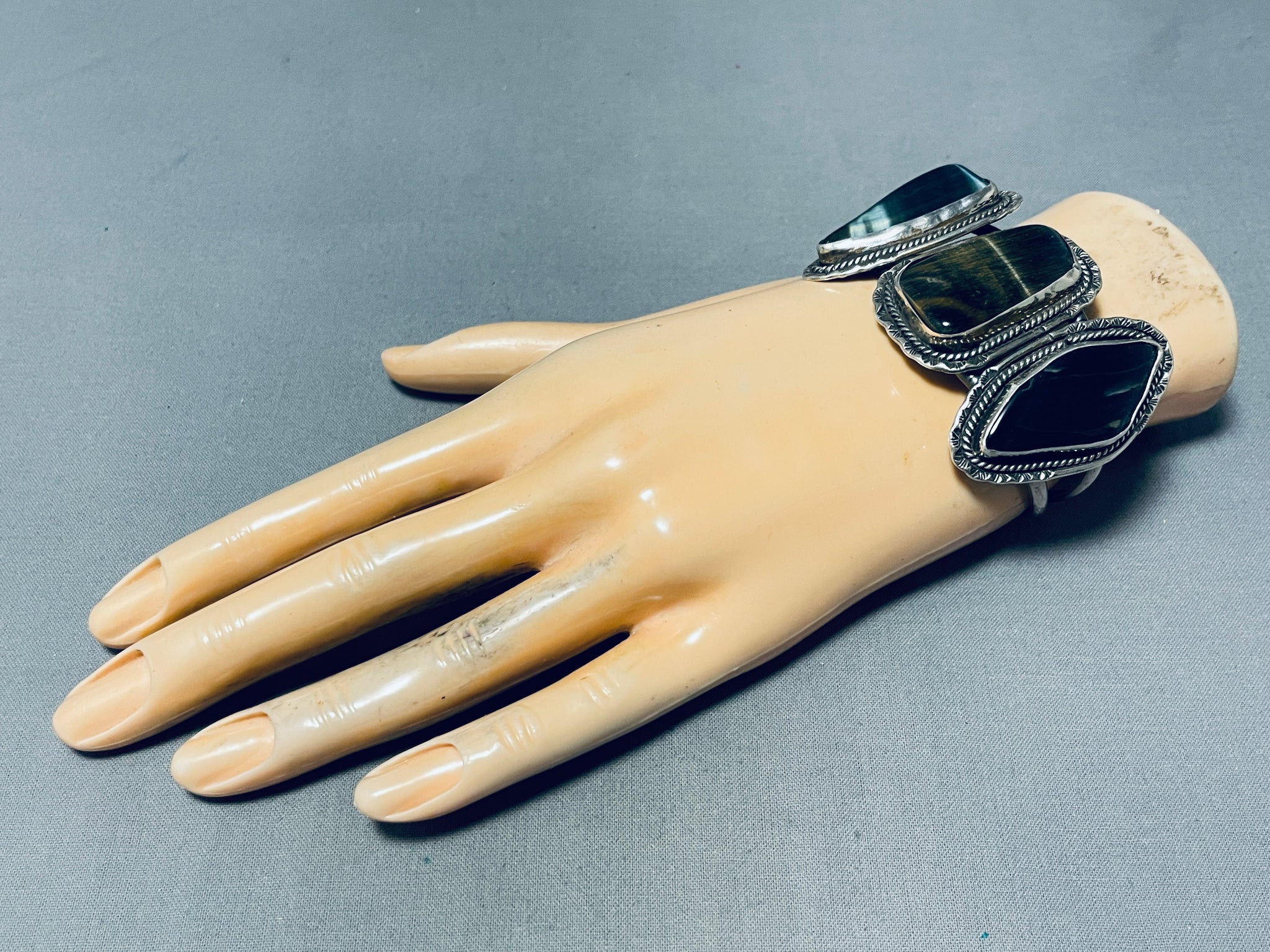 Hypnotic Vintage Native American Navajo Tiger Eye Jasper Sterling Silver Giant Bracelet