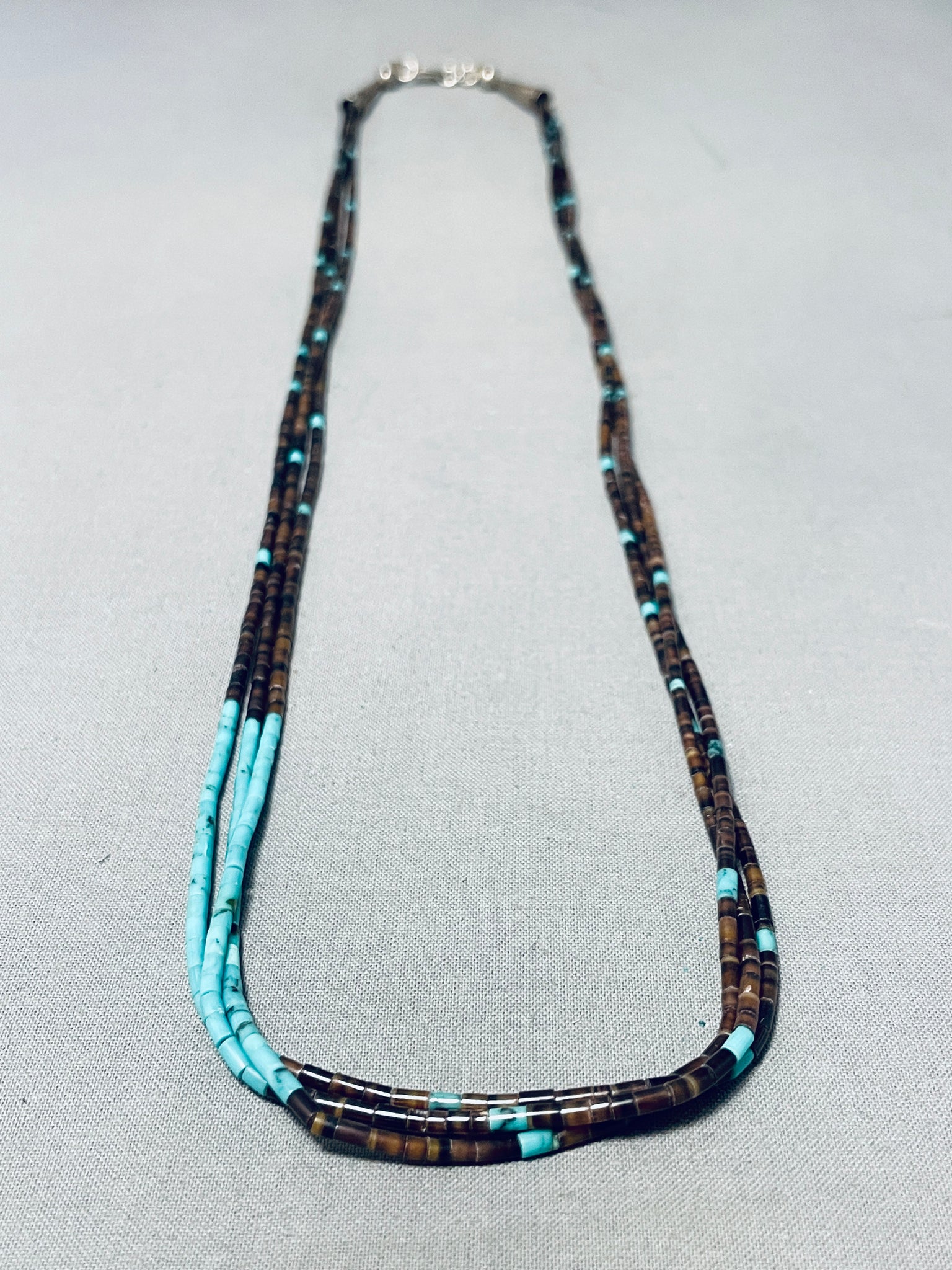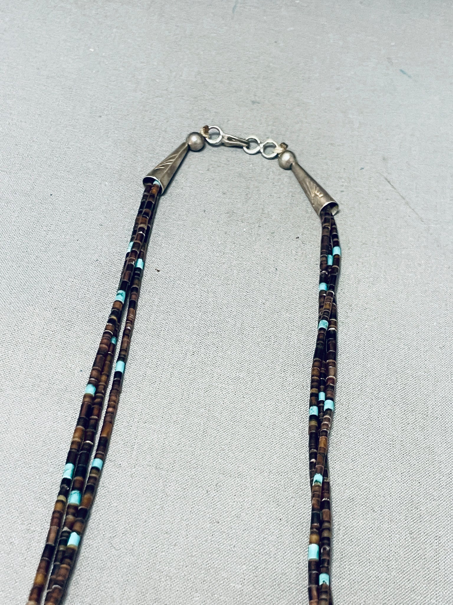 Hypnotic Vintage Santo Domingo Turquoise Penn Shell Sterling Silver Necklace