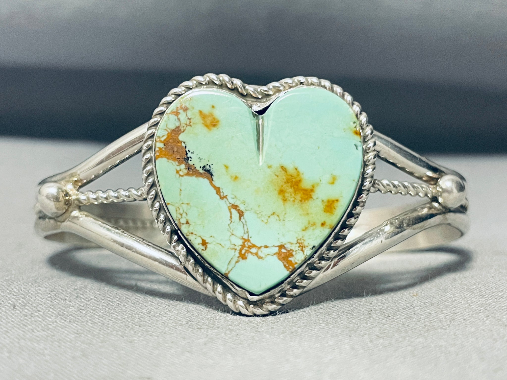 I Heart Turquoise Native American Navajo Sterling Silver Green Bracelet Cuff
