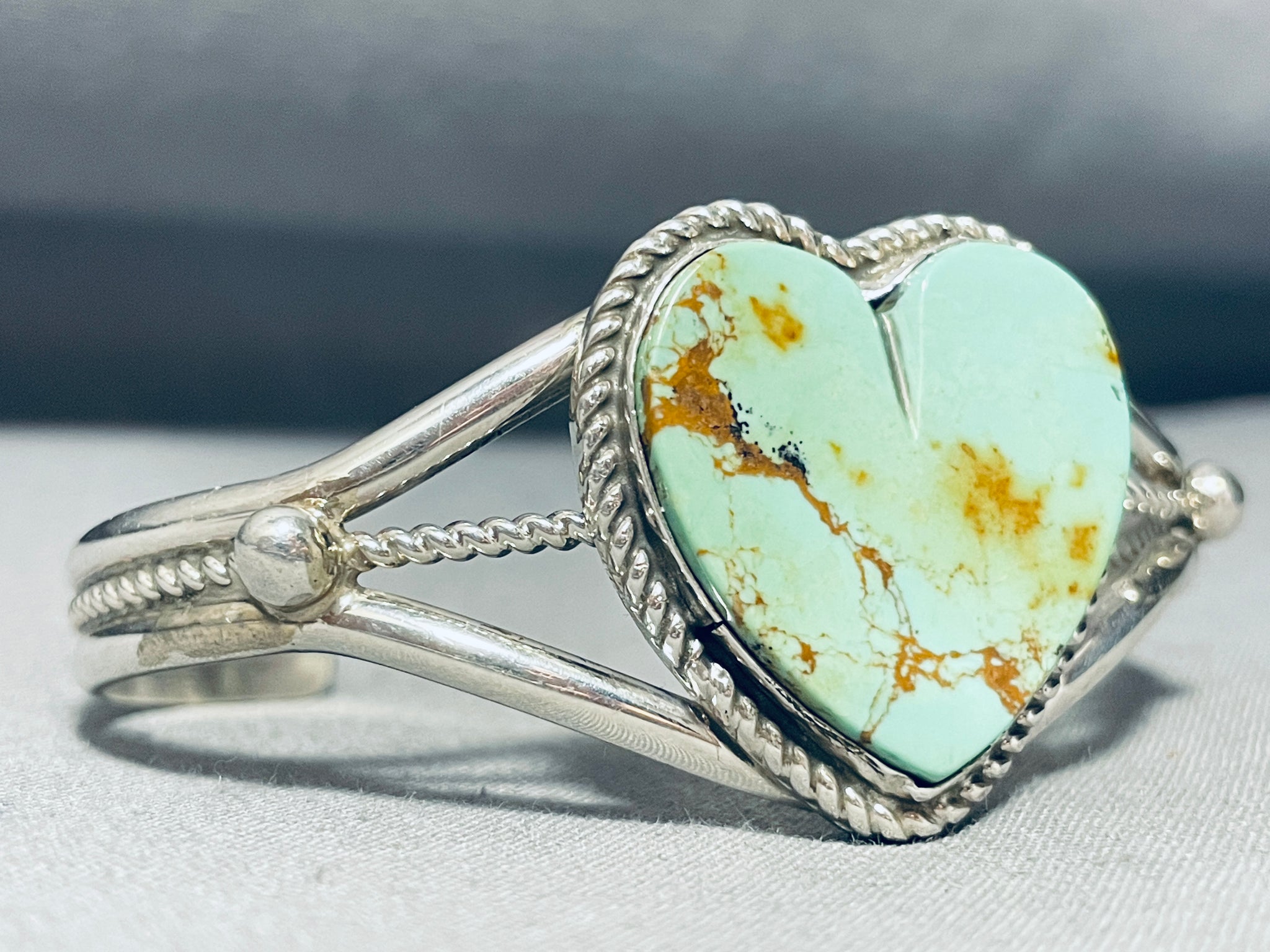 I Heart Turquoise Native American Navajo Sterling Silver Green Bracelet Cuff