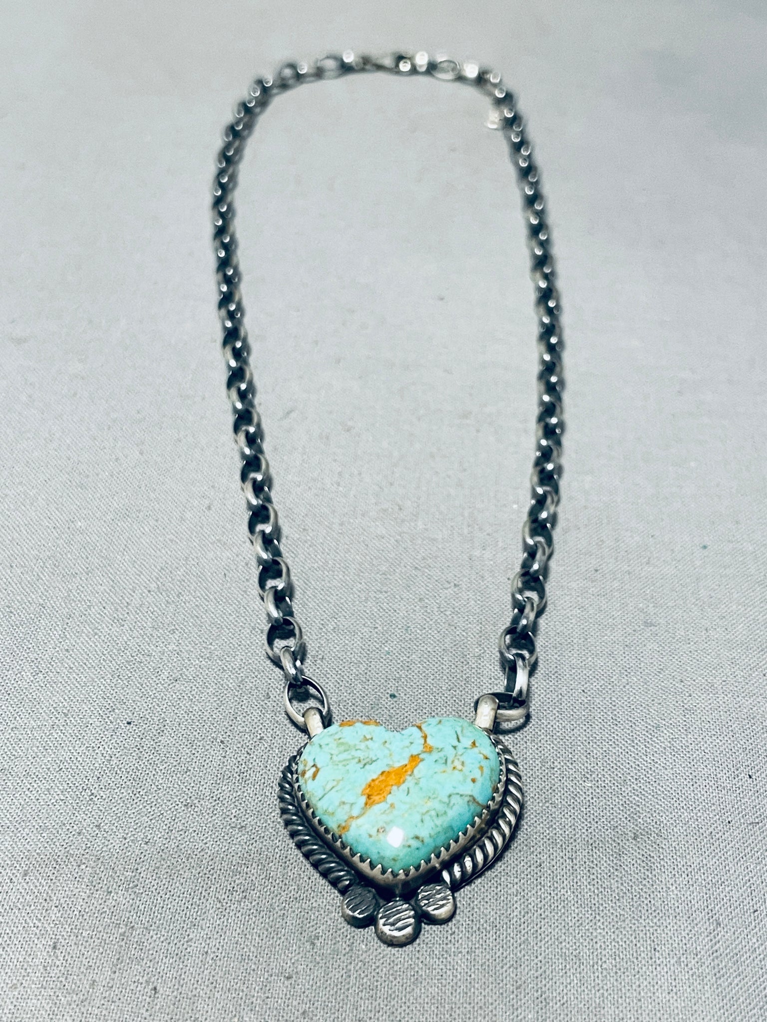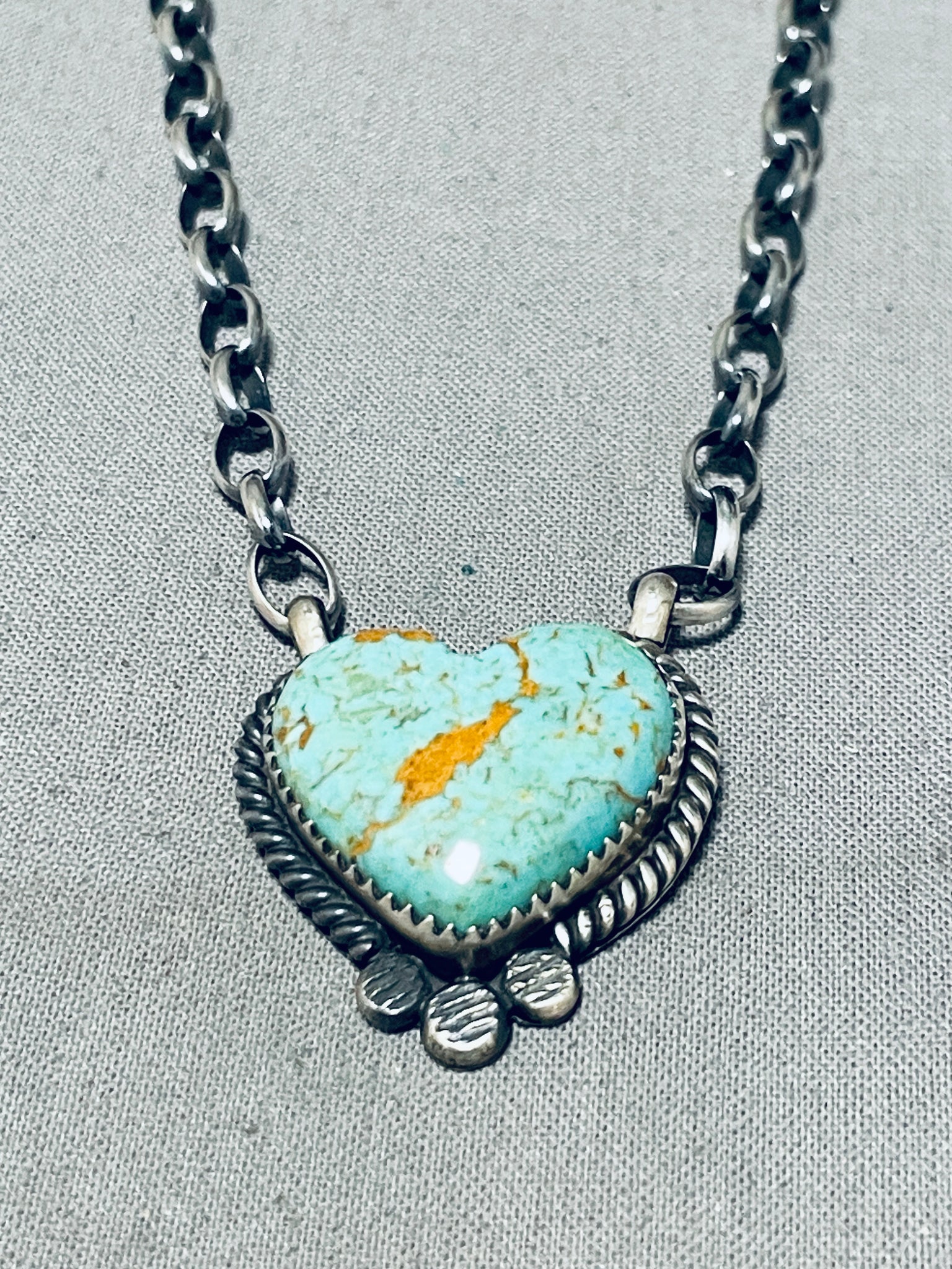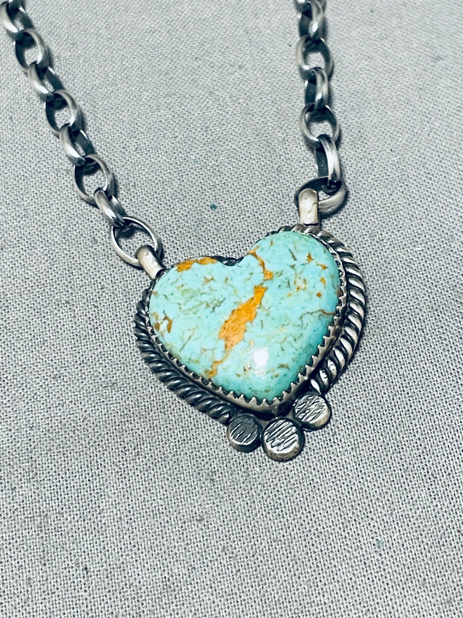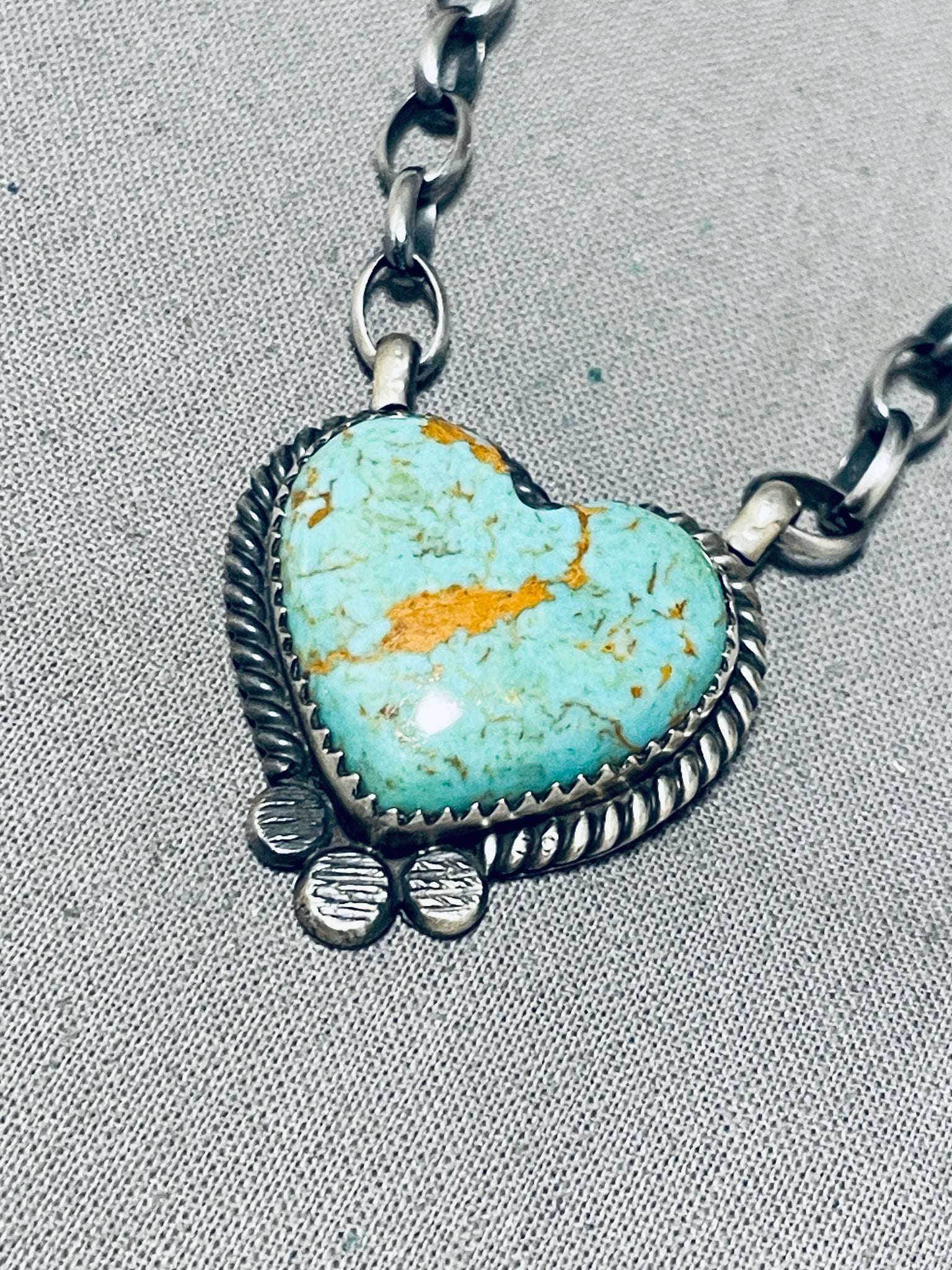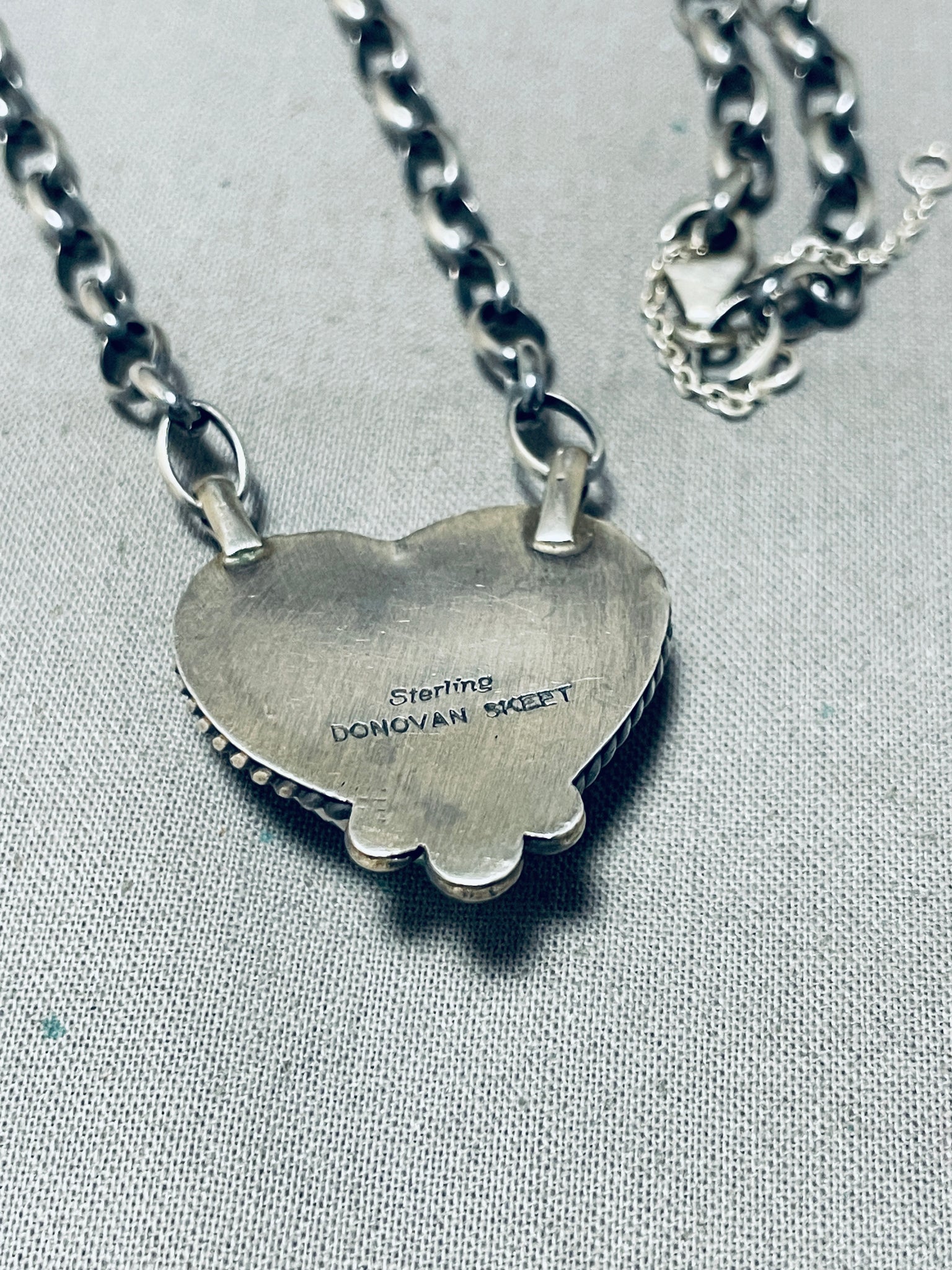 I Heart Turquoise! Vintage Native American Navajo Donny Skeet Sterling Silver Necklace