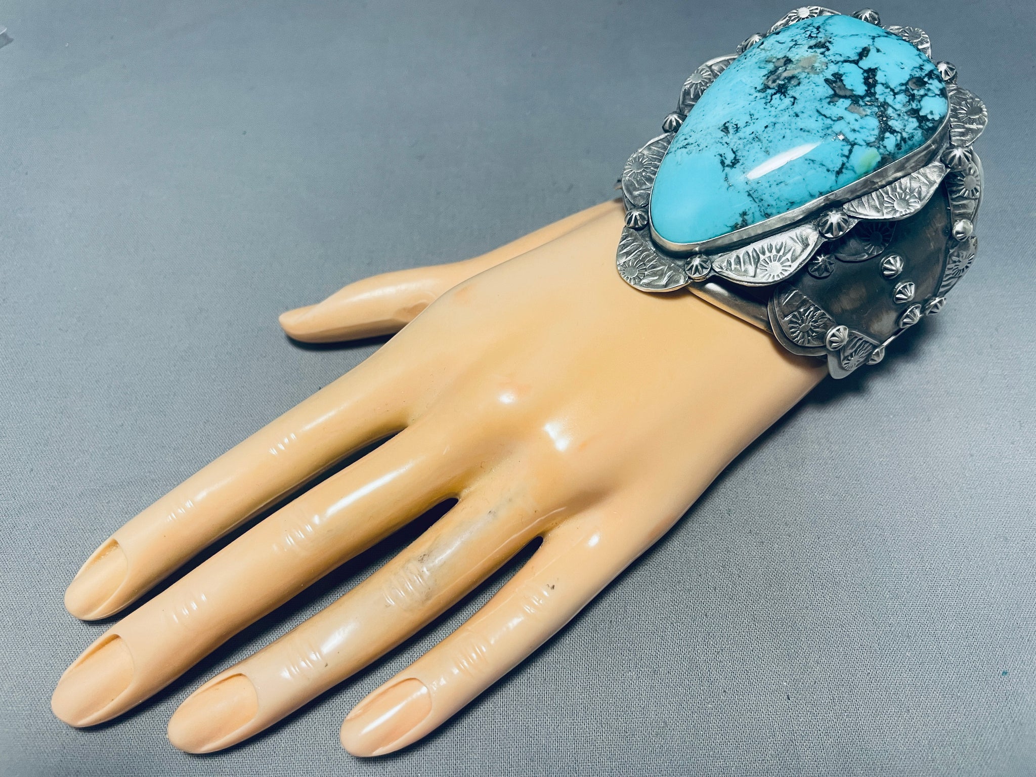 Ice Blue Native American Navajo Turquoise Sterling Silver Bracelet Cuff