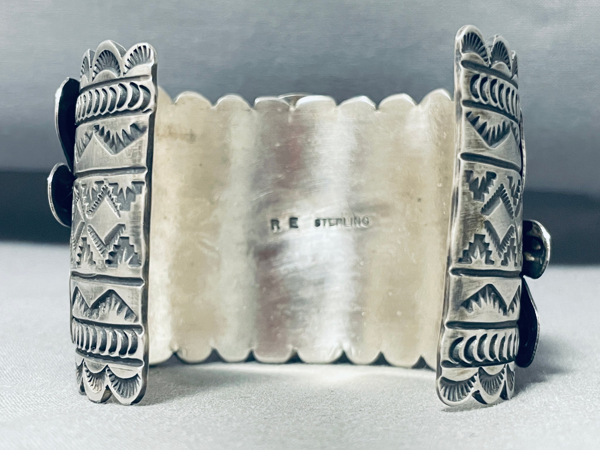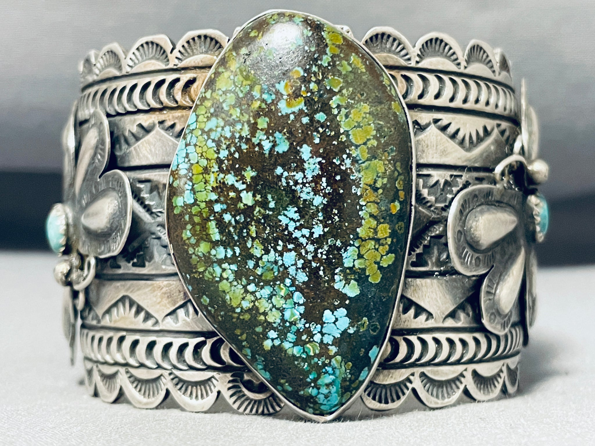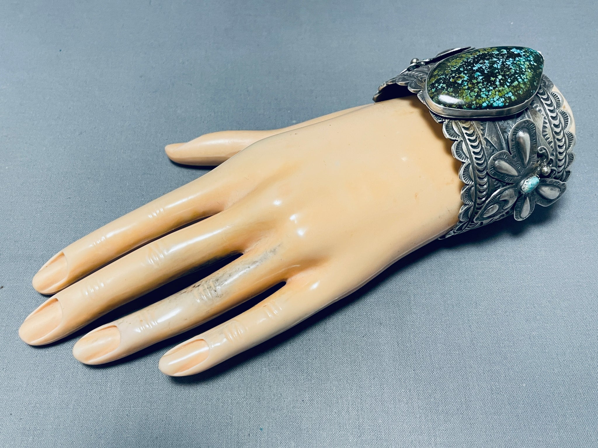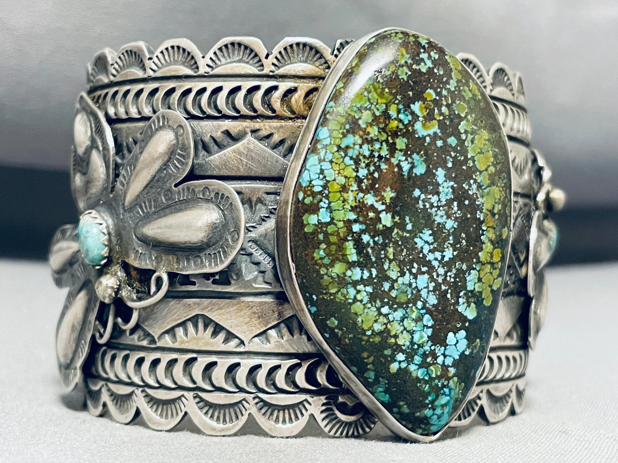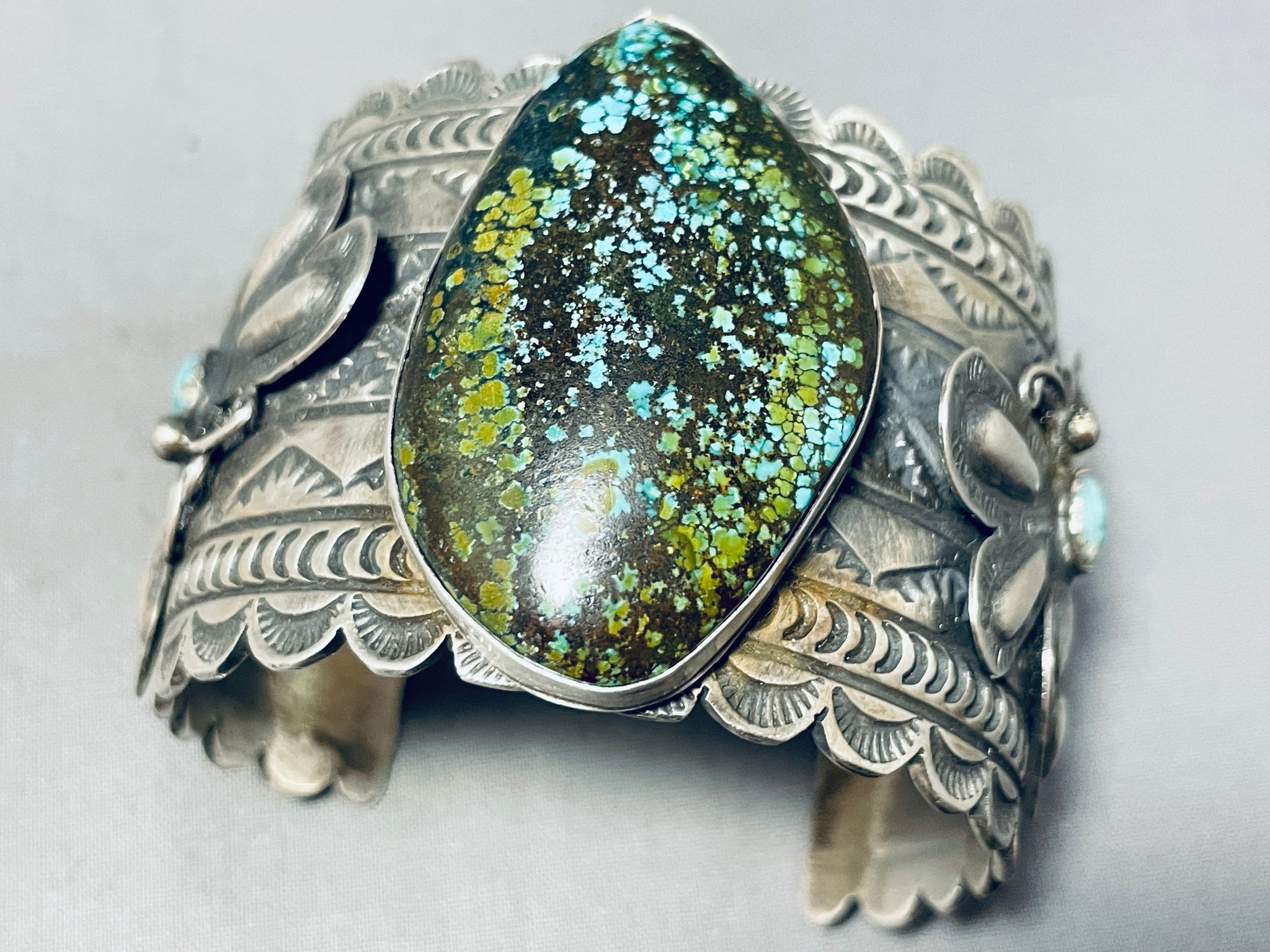Immense Native American Navajo Spiderweb Turquoise Sterling Silver Butterfly Huge Bracelet