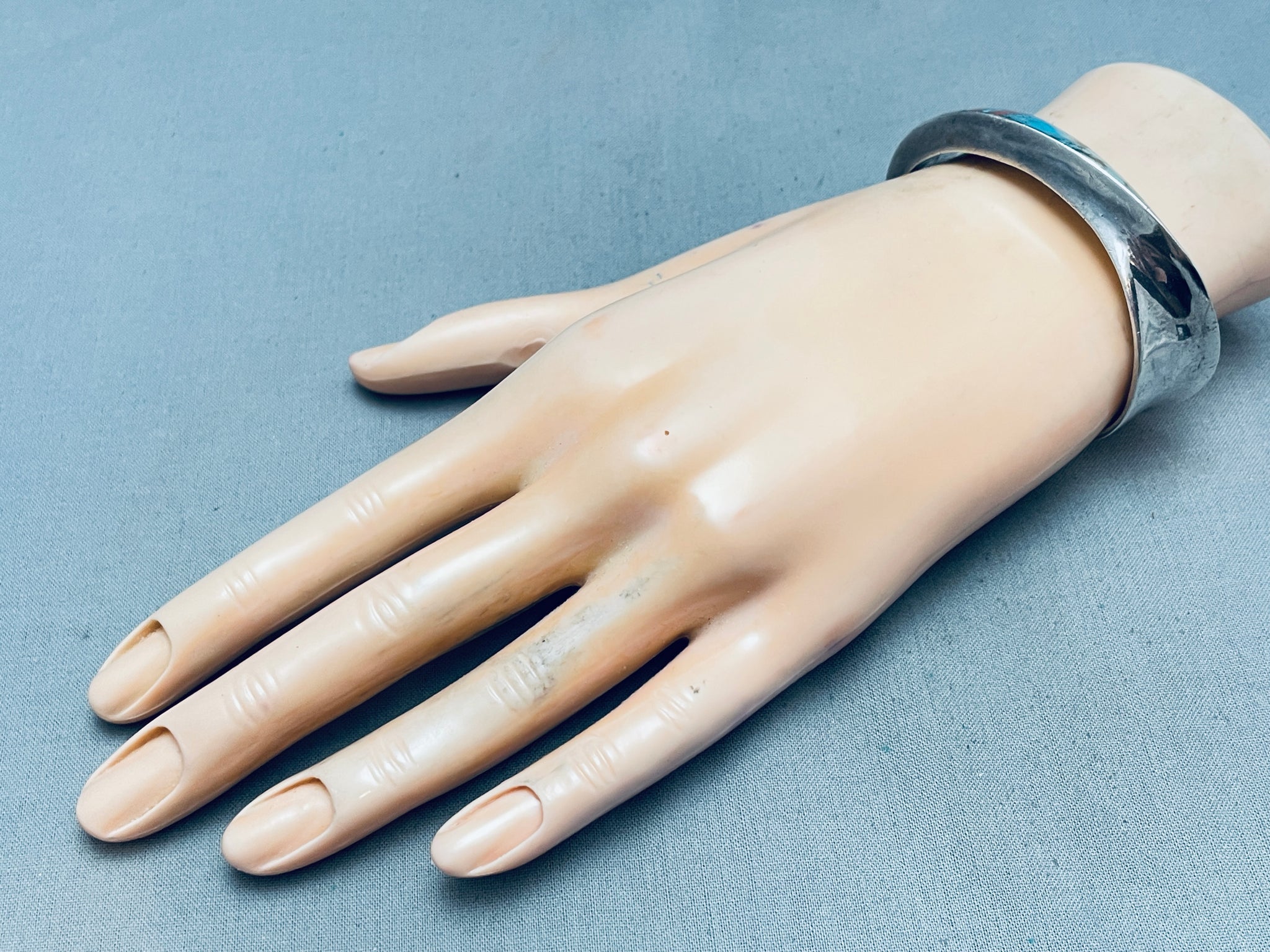 Important 6 Inch Wrist Andy Lee Kirk Inlay Turquoise Sterling Silver Bracelet