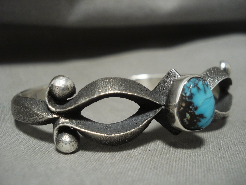 Important Aaron Anderson Turquoise Native American Jewelry Silver Tufa Cast Bracelet