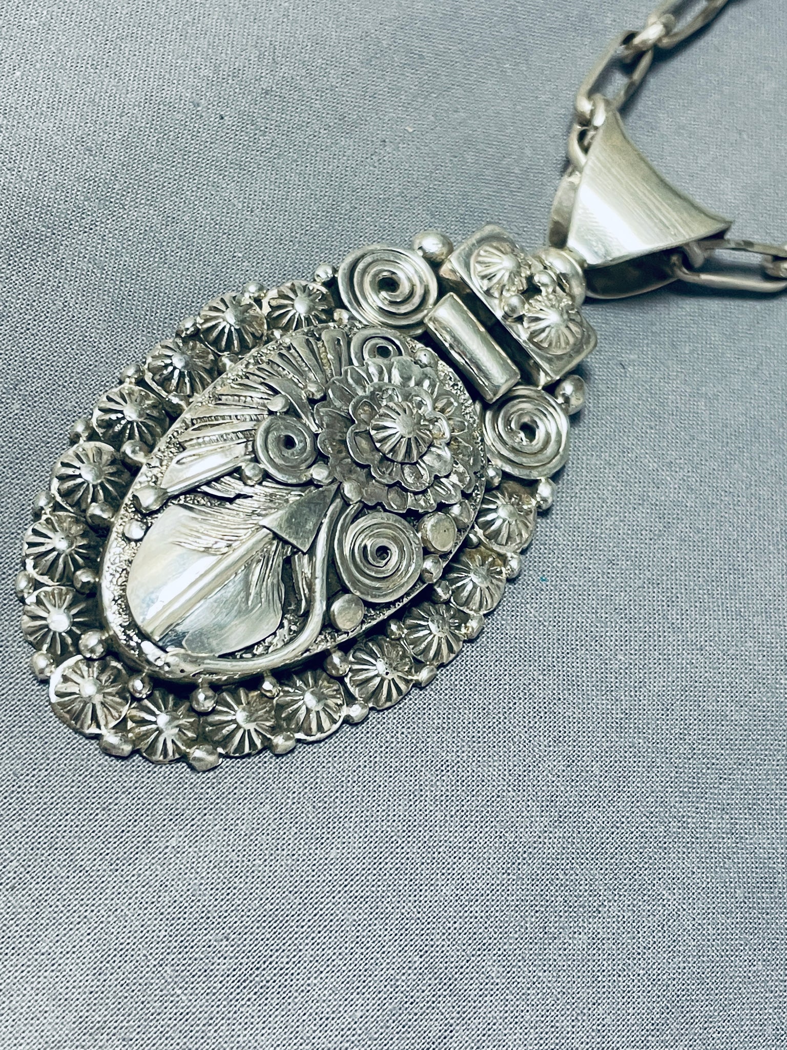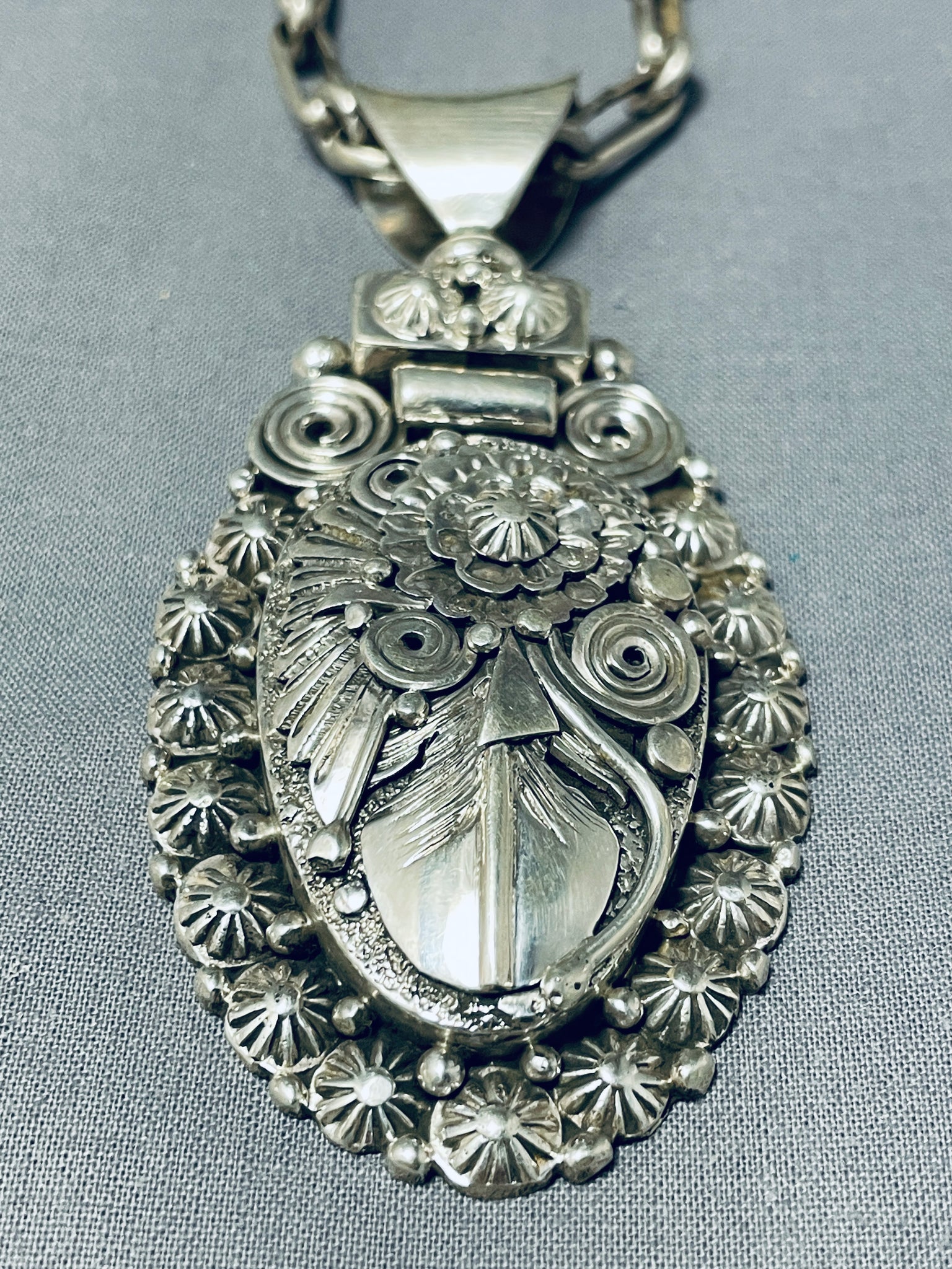 Important Ben Begaye (d) Vintage Native American Navajo Sterling Silver Leaf Necklace
