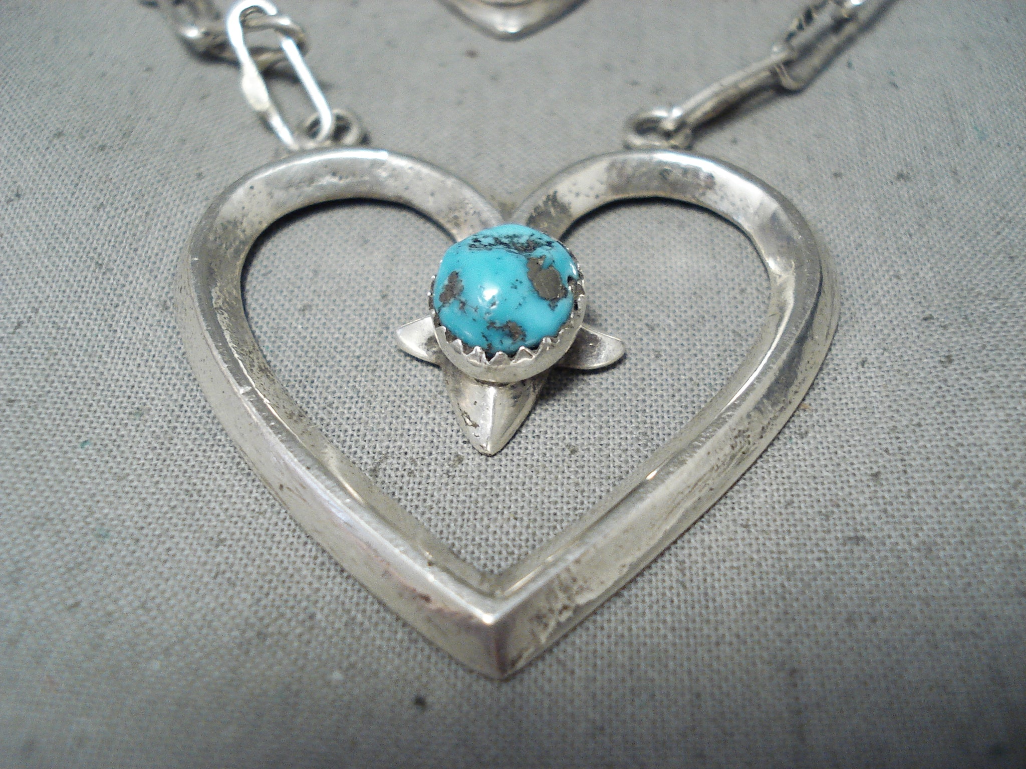 Important Betsoi Family Native American Navajo Turquoise Heart Sterling Silver Necklace