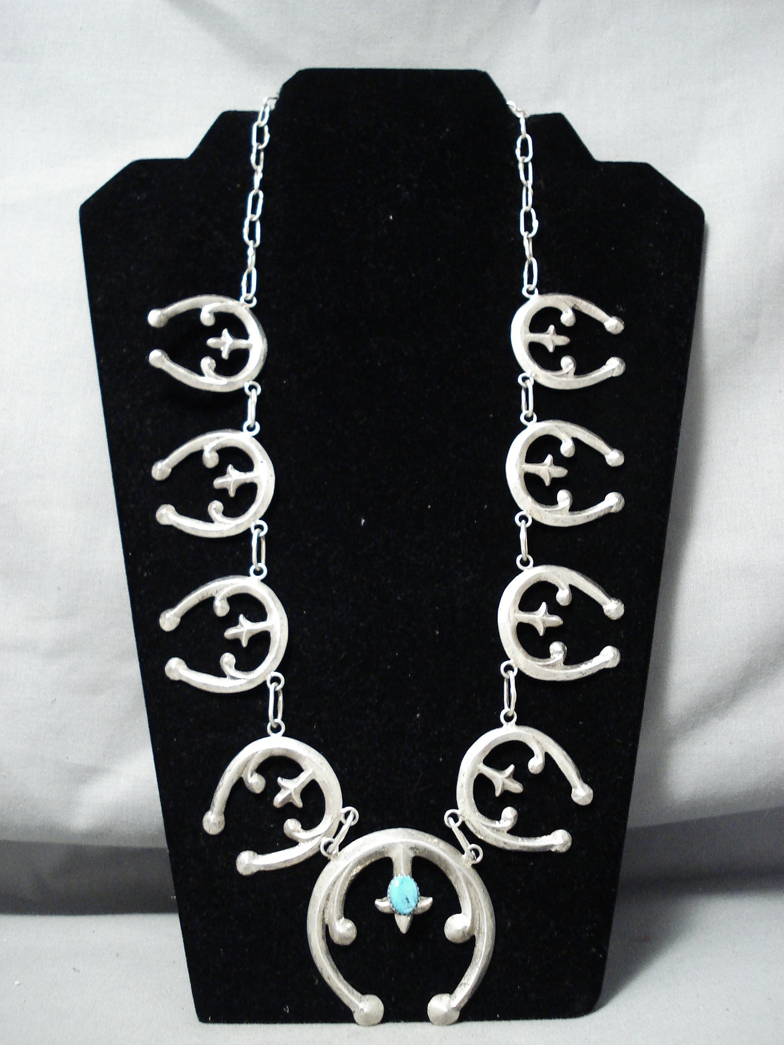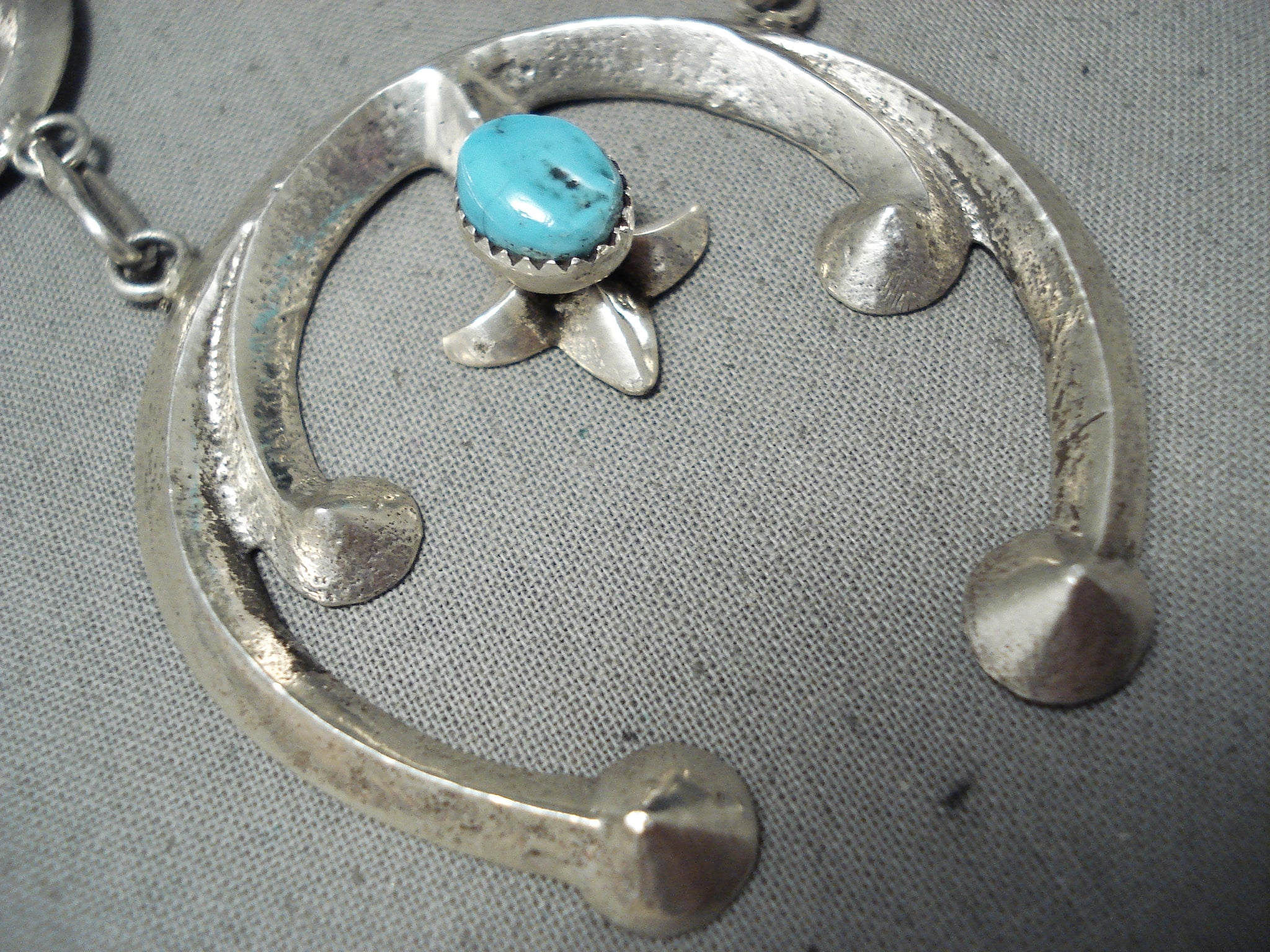 Important Betsoi Family Native American Navajo Turquoise Sterling Silver Naja Necklace