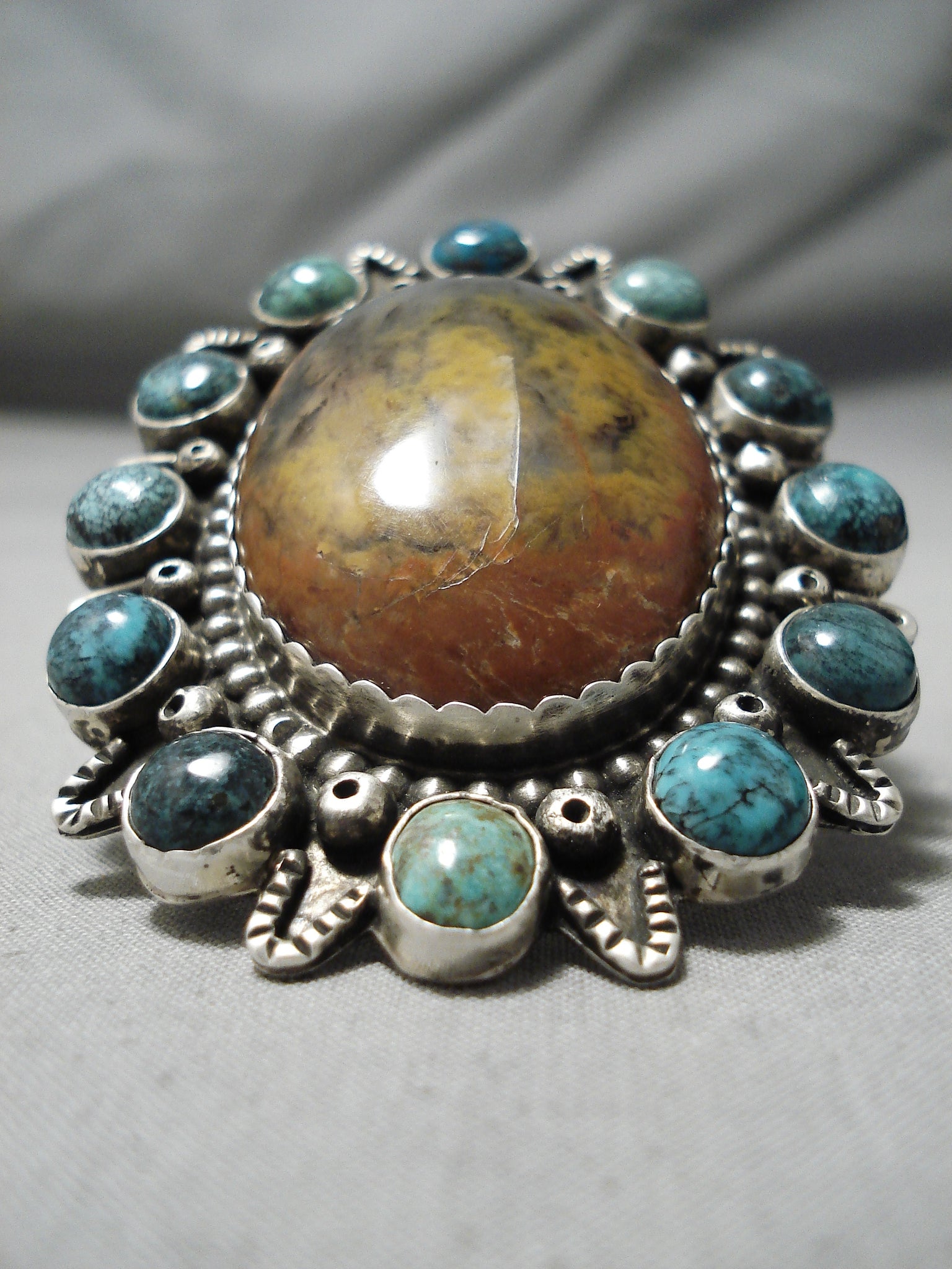 Important Biggest Native American Zuni Turquoise Satellite Agate Sterling Silver Ring