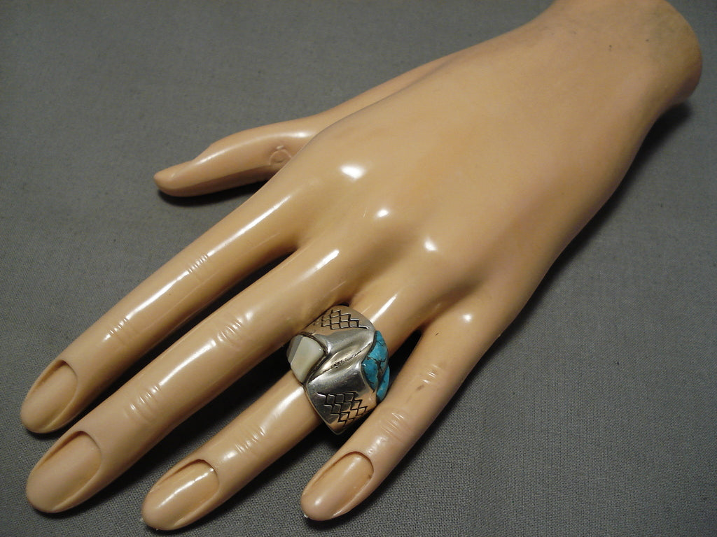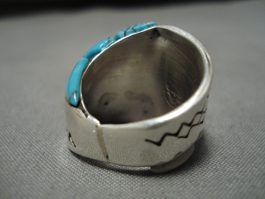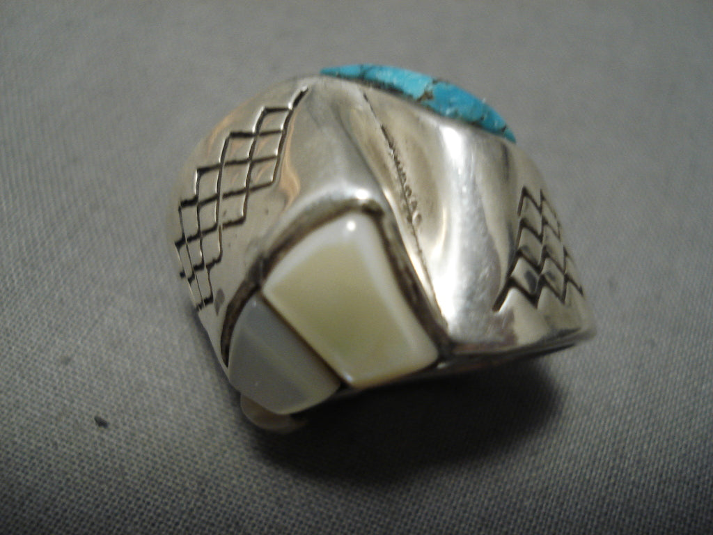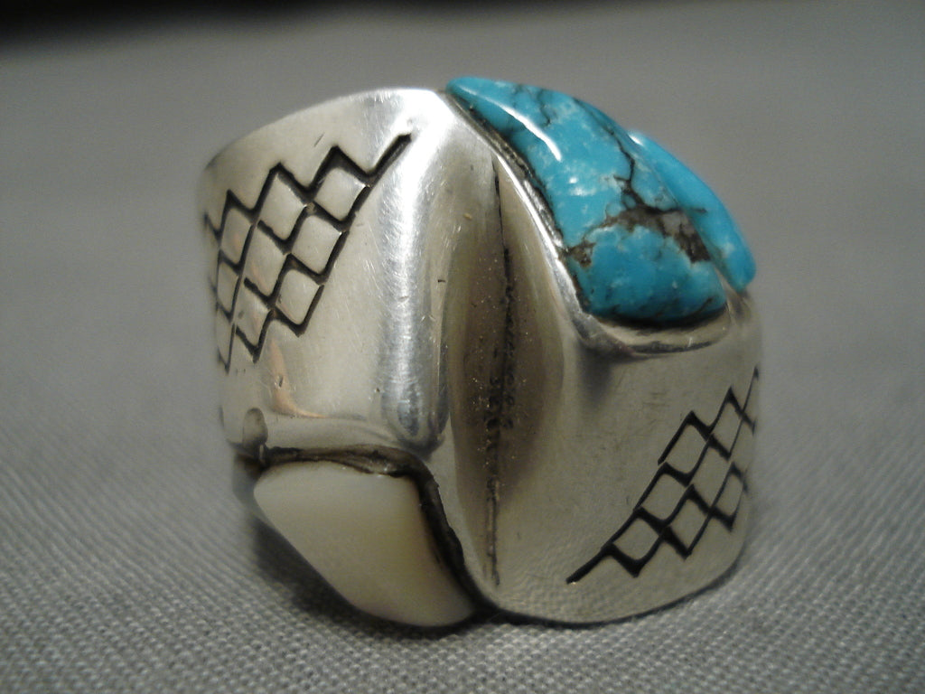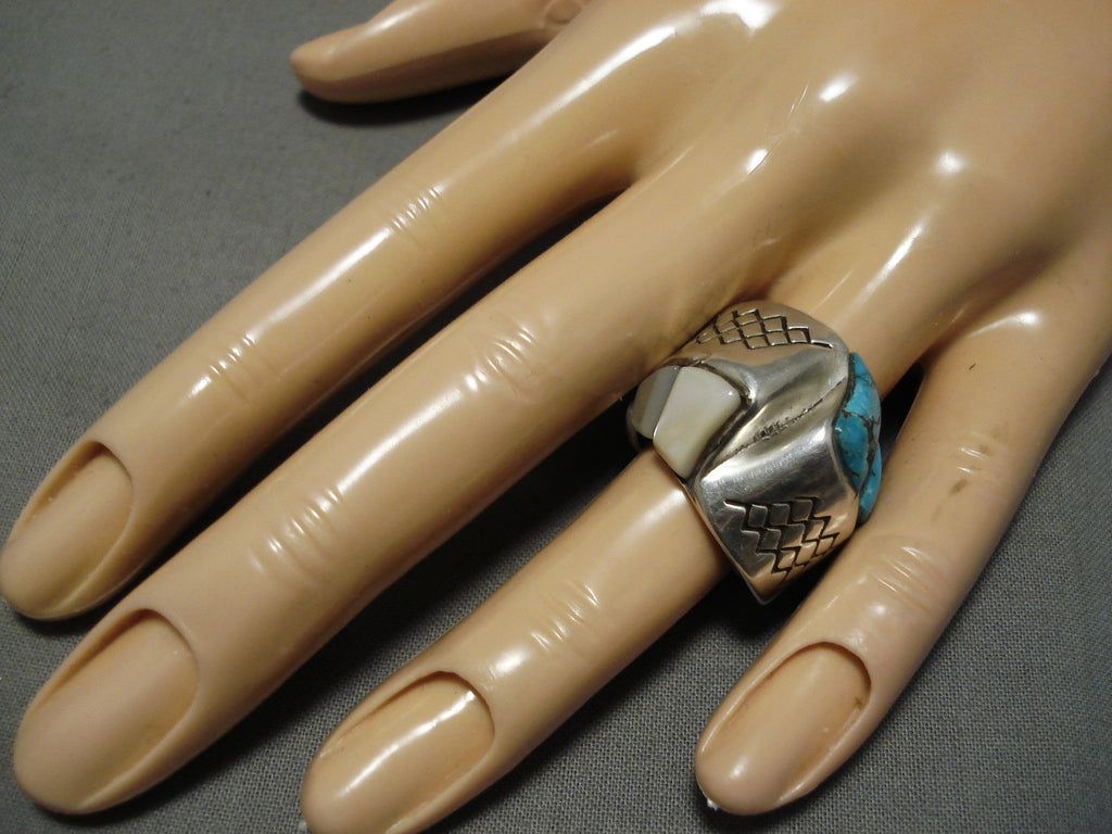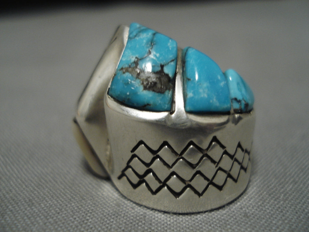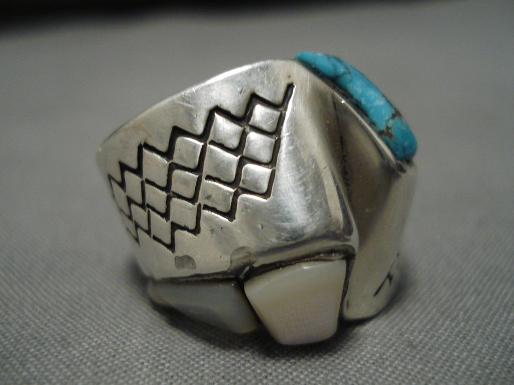Important Blue Diamond Turquoise Vintage Native American Navajo Sterling Silver Ring Old