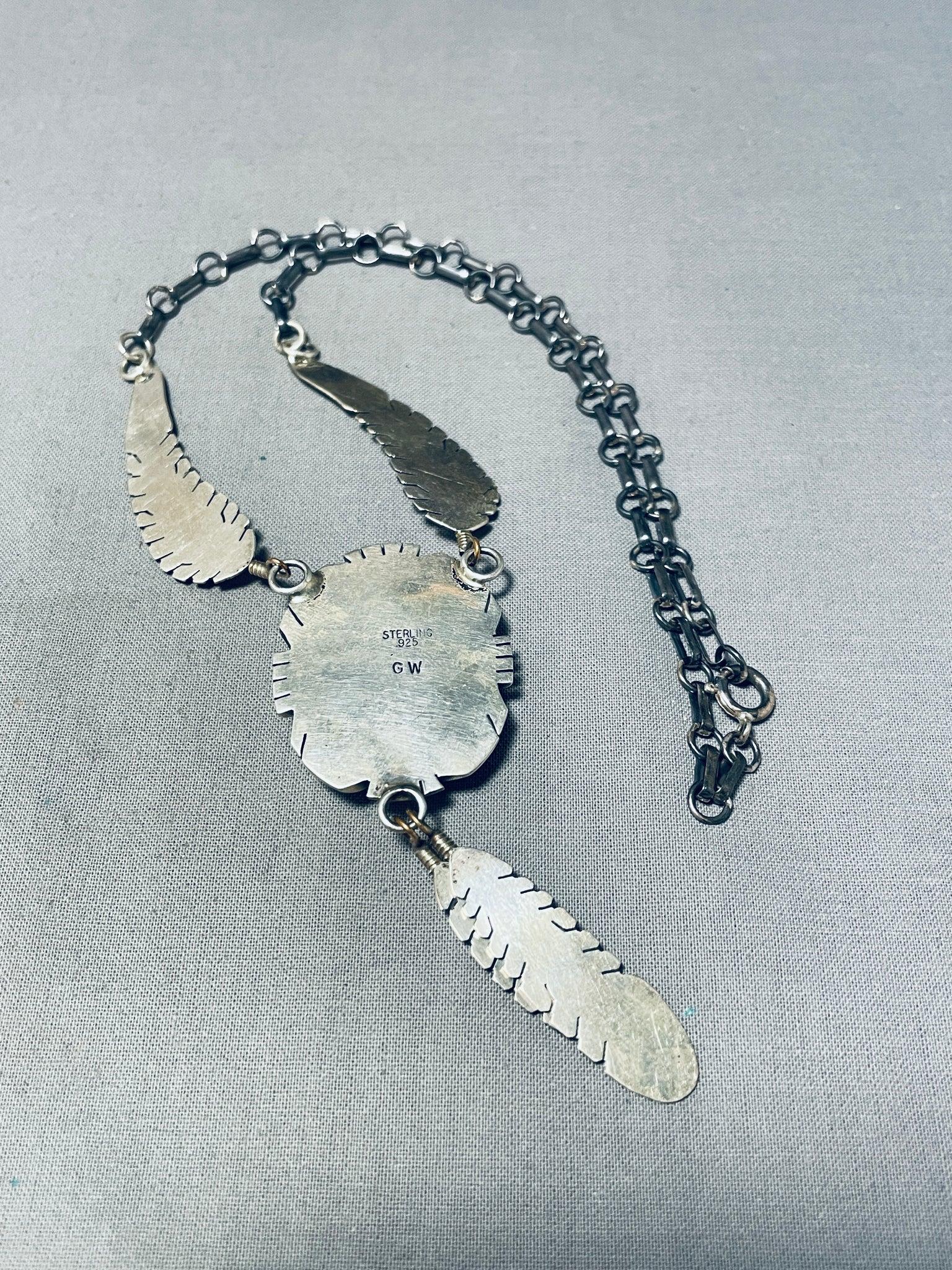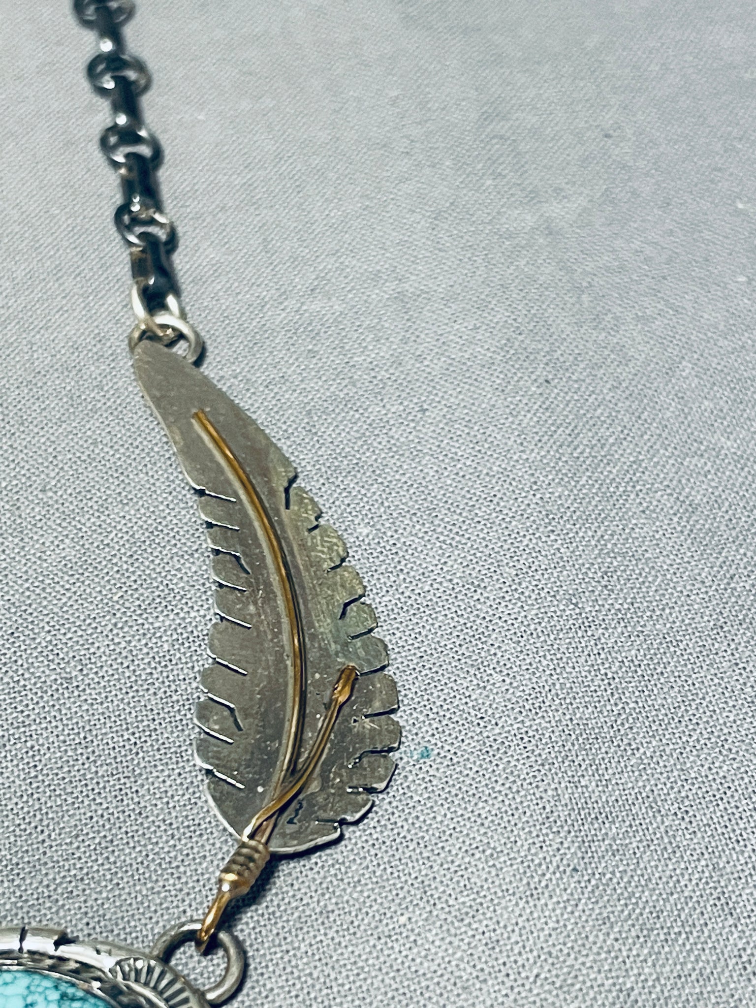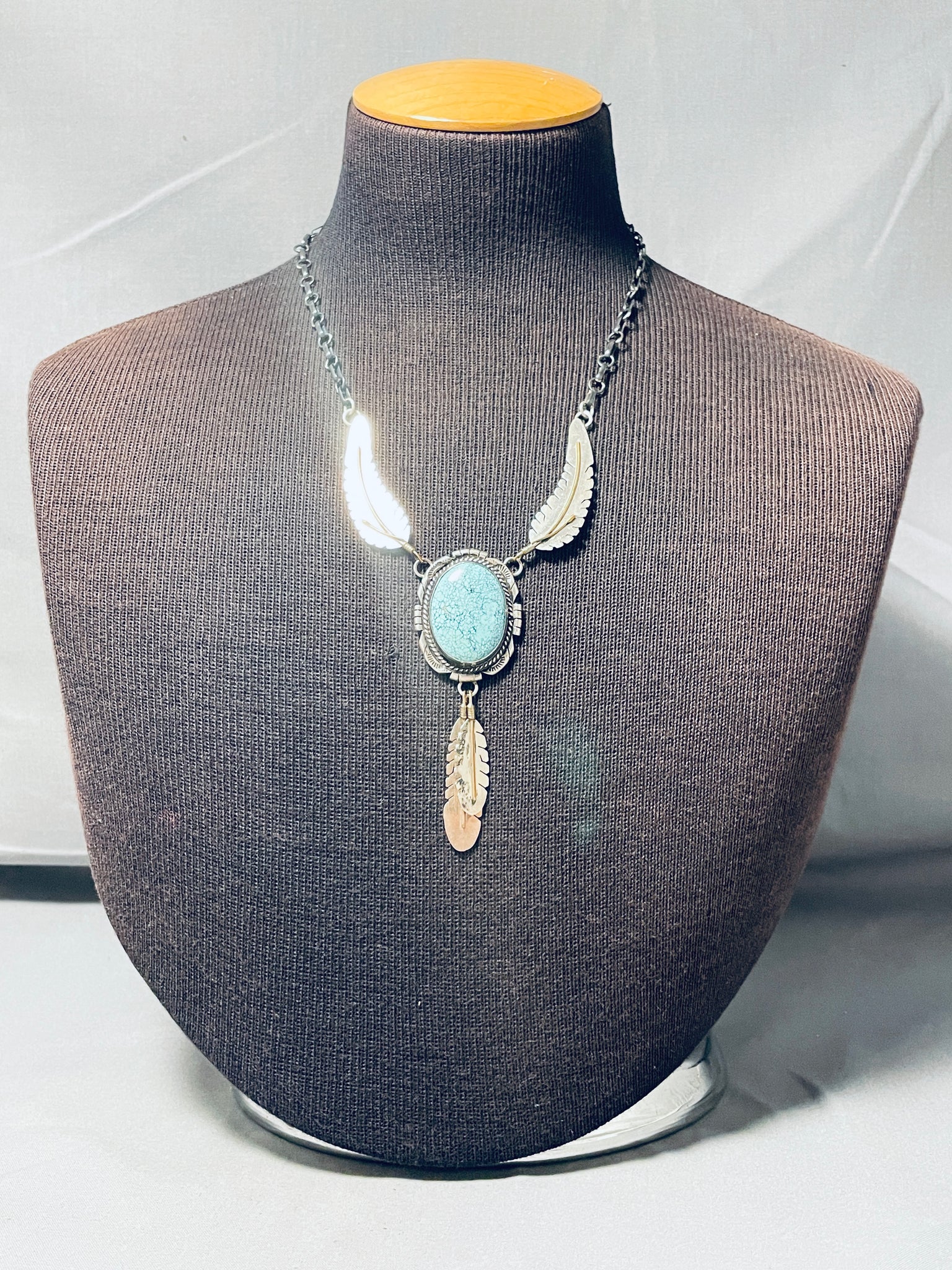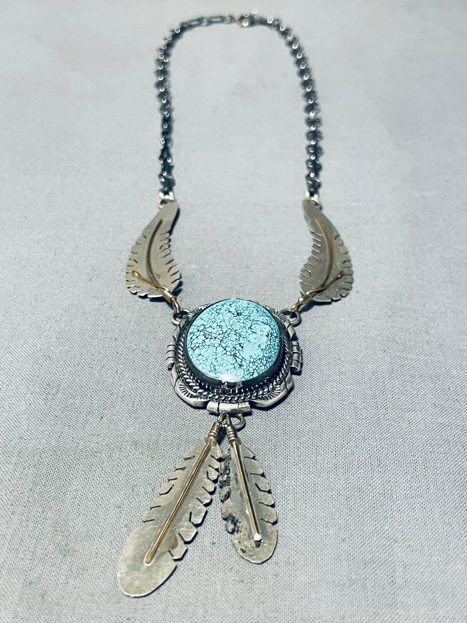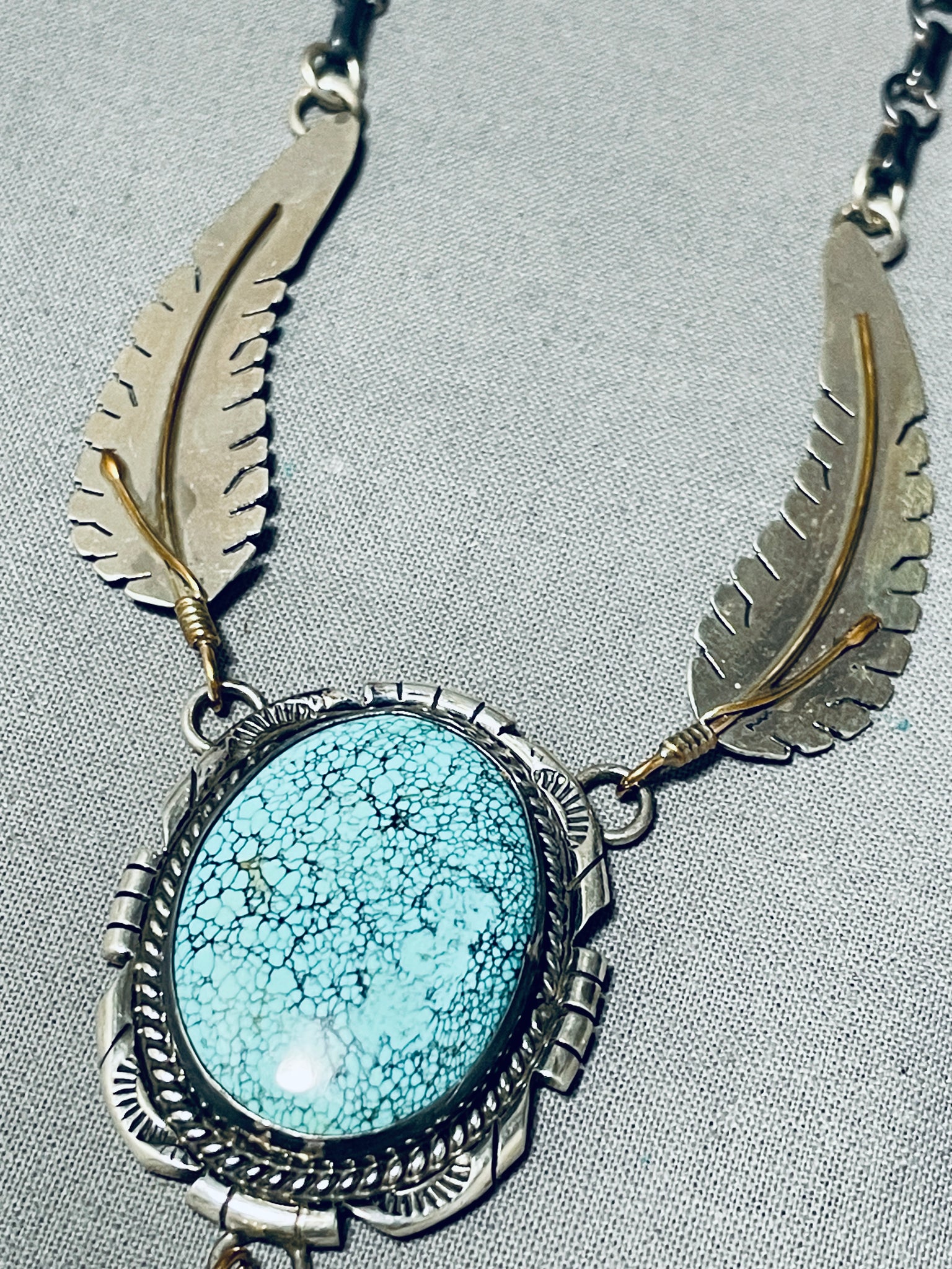 Important Blue Moon Turquoise Vintage Native American Navajo Sterling Silver Necklace